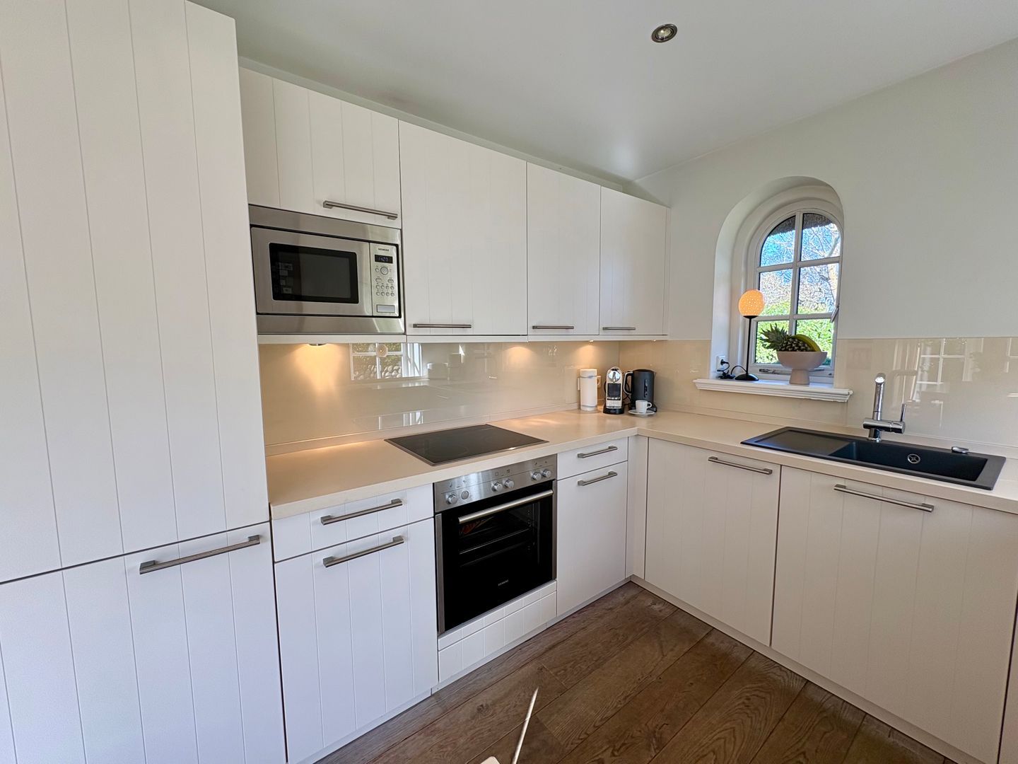 Im Obergeschoss erwartet Sie eine kleine Galerie mit Arbeitsplatz – ideal zum Lesen oder Arbeiten – sowie ein verwunschenes, leicht verwinkeltes Doppelschlafzimmer mit großzügigem Einbauschrank und Wannenbad. Ein weiteres Schlafzimmer mit kleinem Doppelbett (160cm breit) und eigenem Duschbad rundet diese Etage ab.