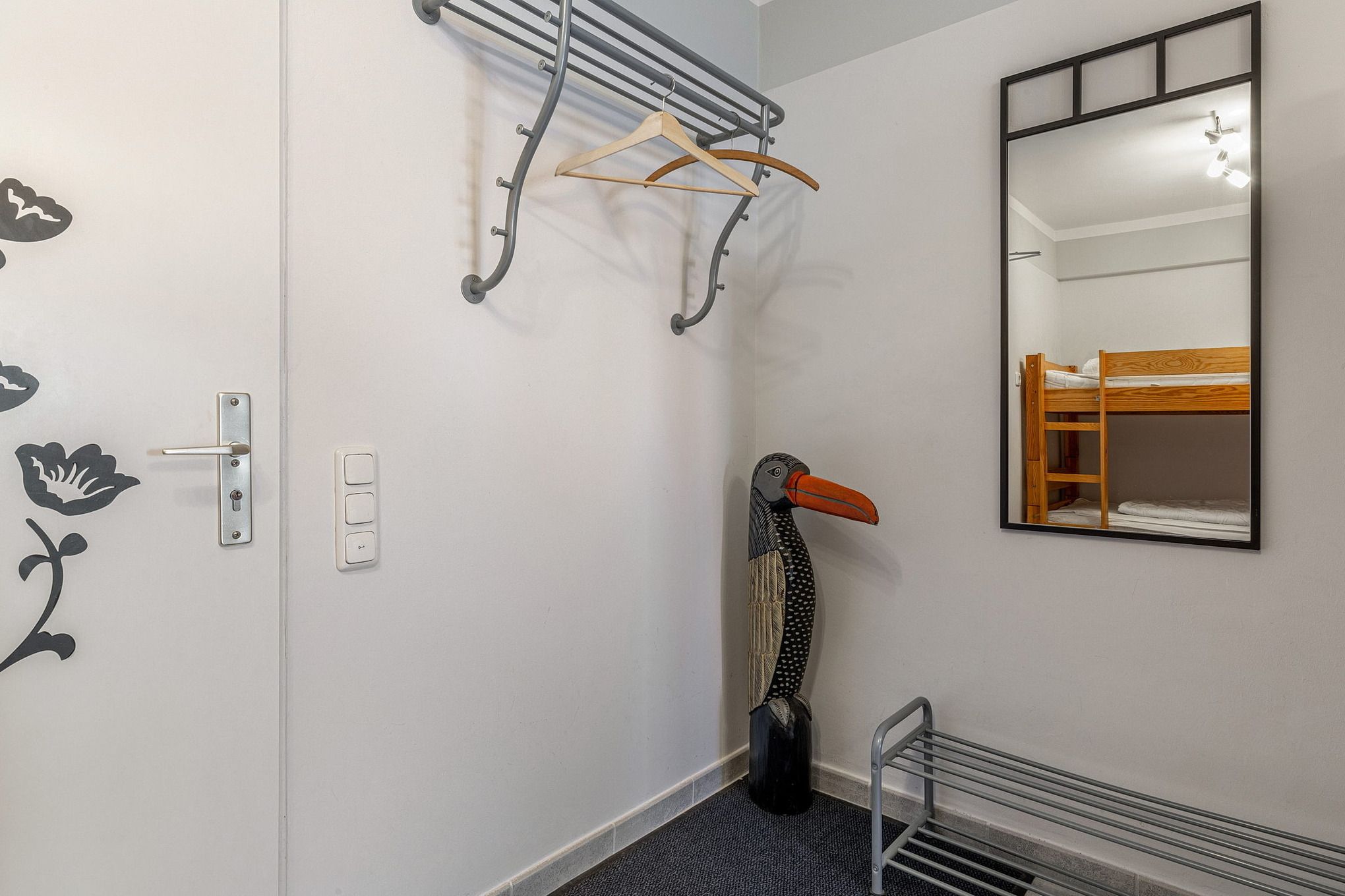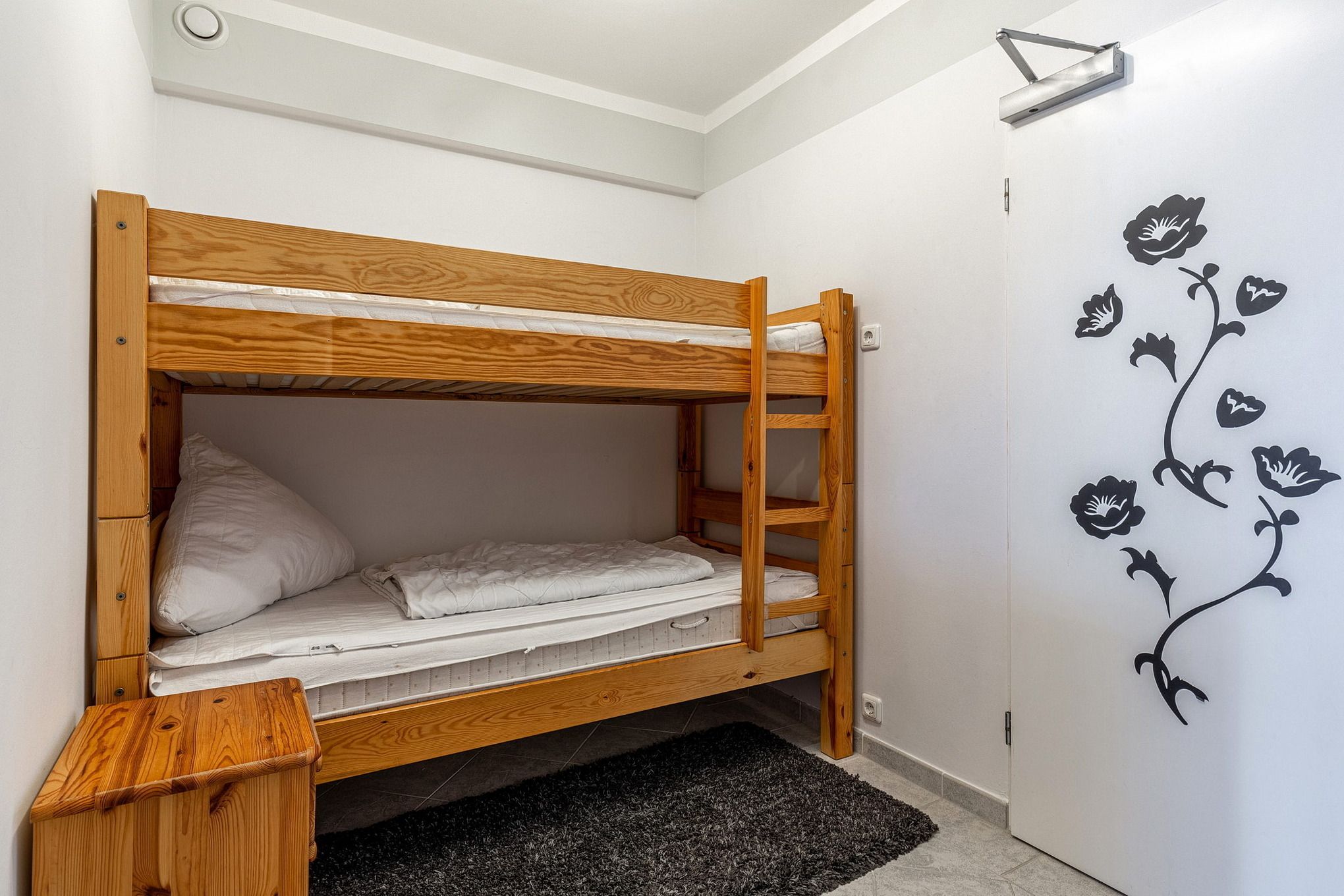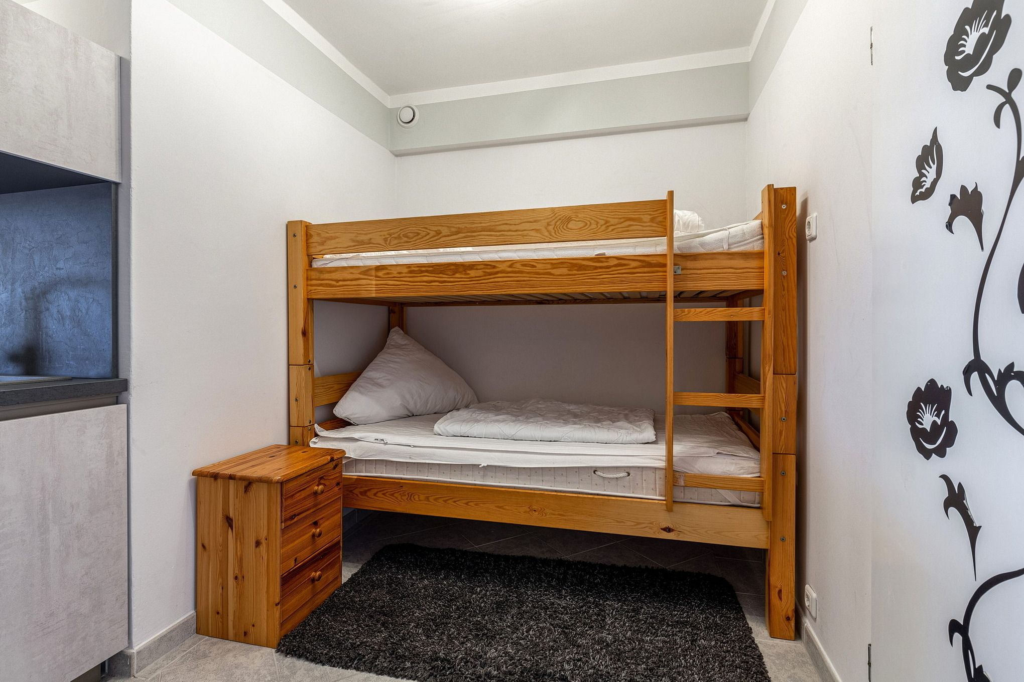Im Eingangsbereich befindet sich ein Etagenbett (90x185cm) und eine kleine Kommode. Der Bereich ist gefliest.