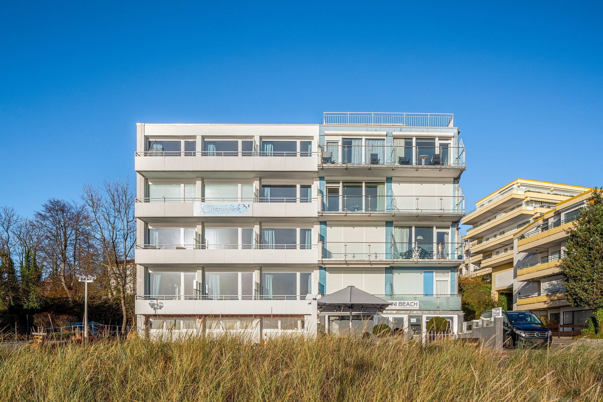 Das Apartmenthaus 'Nautilus' befindet sich am Ende einer Sackgasse in direkter Strandlage vom Südstrand in der Nähe vom Yachthafen. Im Untergeschoss befindet sich ein Bistro. Das Haus wurde innen geschmackvoll renoviert und bietet neben einem kleinen Fitnessraum auch eine Sauna. Durch die direkte Lage zum breiten Strand ist das Haus für Familien mit Kindern besonders geeignet.