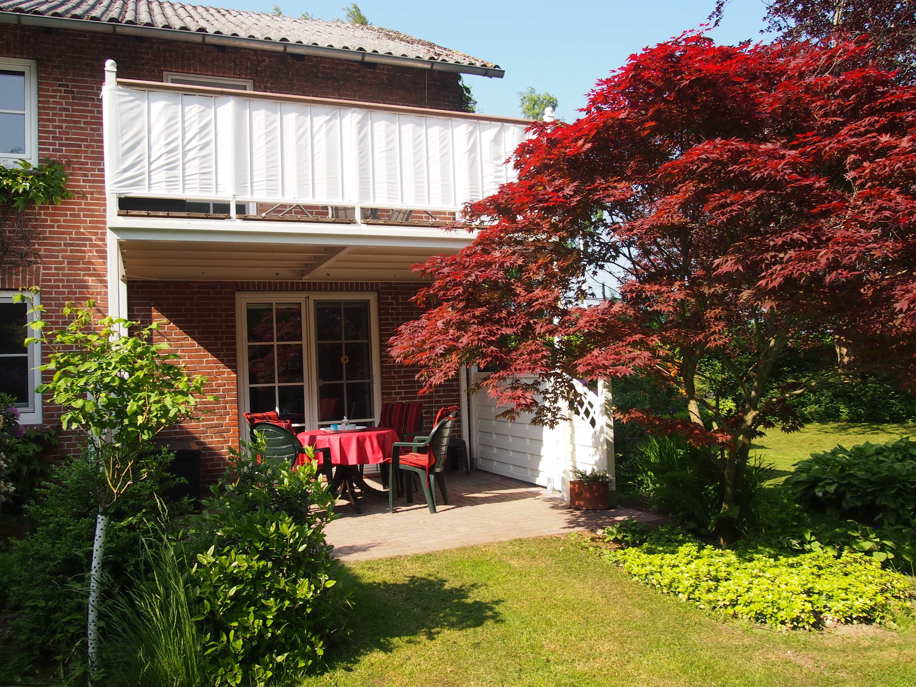 Für besonderen Flair sorgt die zur Ferienwohnung gehörende, blickgeschützte Terrasse mit Gartenmöbeln und Sonnenliegen.
