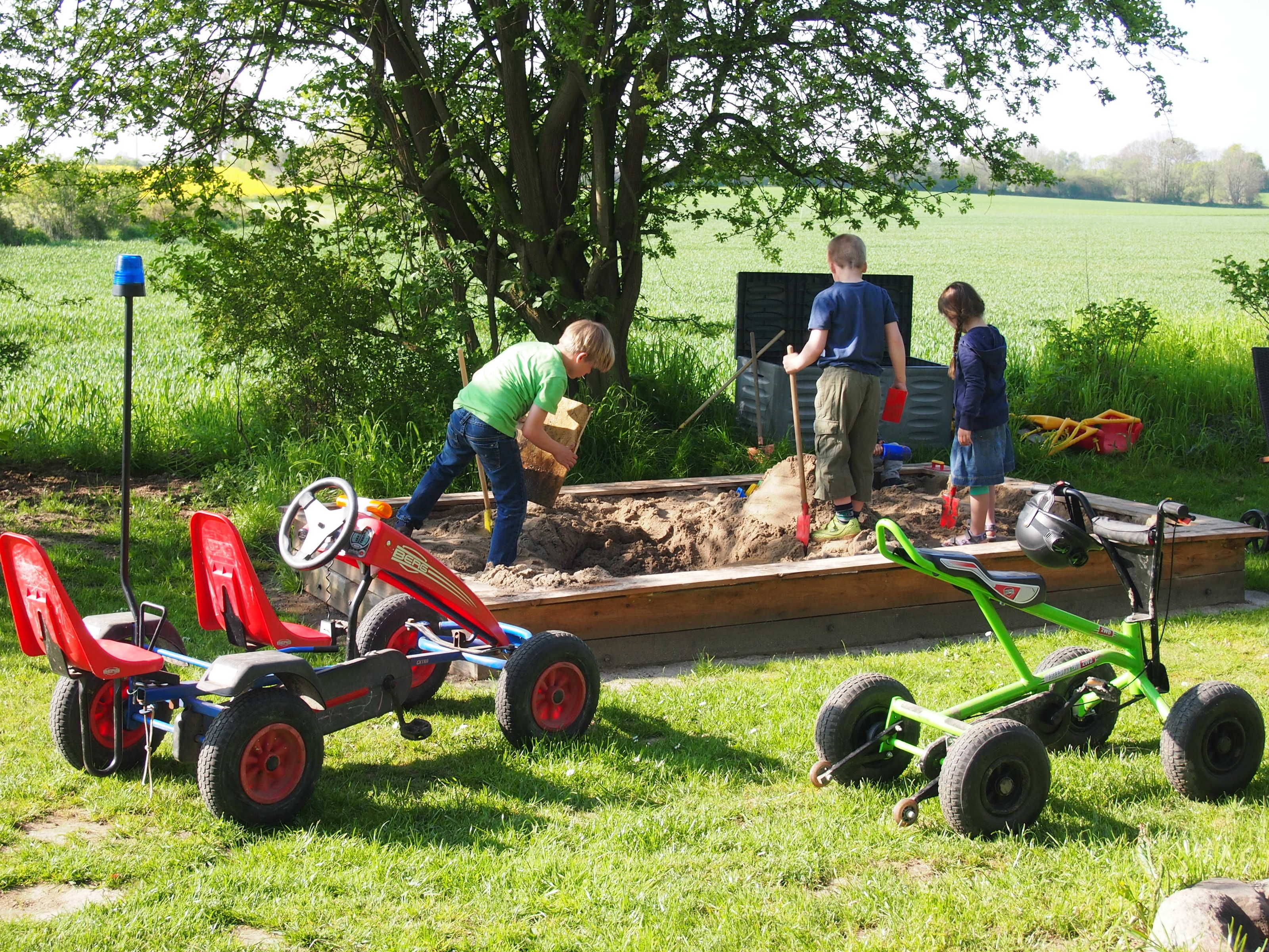 Großer (Bauern) Garten mit Gartenmöbeln, Lagerfeuerplatz, separater Grill, verschiedene Spielmöglichkeiten, Tischtennis, Sandkiste, Schaukel, Gocarts, Garten-Trampolin (3,80 m) etc. Gartenhaus mit Tischtennis, Tischkicker und Spielküche. in dem Gartenhaus befinden sich auch eine Waschmaschine und ein Trockner für unsere Gäste. Max. 1 Hund (stubenrein) pro FW, (pro Tag € 10,00) und weitere Infos auf Anfrage.