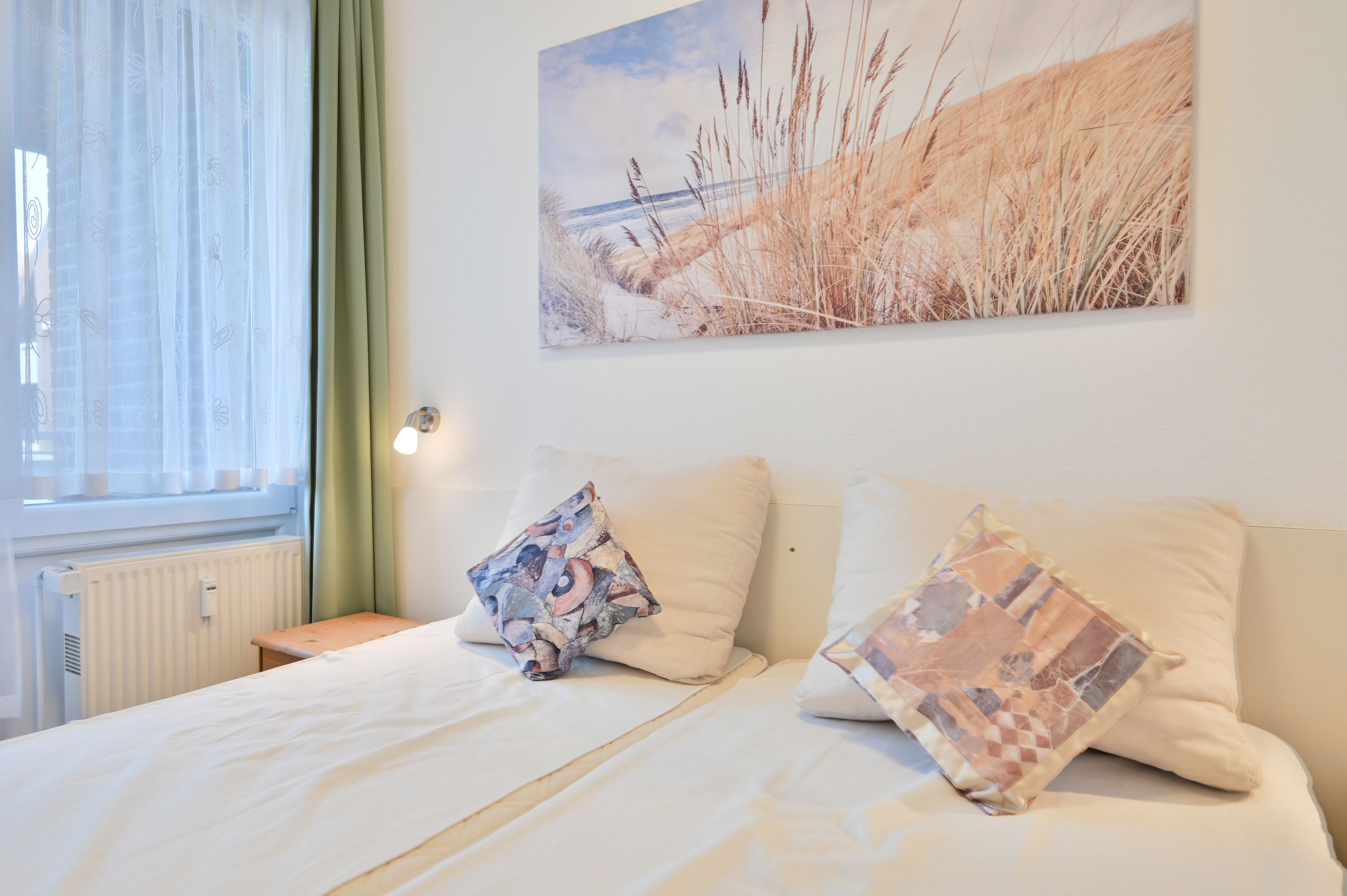 Im Wohnraum finden Sie zudem einen gemütlichen Essplatz sowie bequeme Sitzmöbel, die zum Lesen, Ausruhen oder Verweilen einladen. Die separate Küche ist funktional ausgestattet und bietet alles, was Sie für die unkomplizierte Selbstversorgung im Urlaub benötigen.