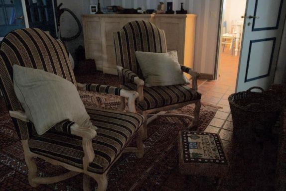 Großes Reetdachhaus auf 4.500m² großem Grundstück Baujahr des Hauses: 1764 Platz und Betten für bis zu 10 Personen (9 Erwachsene + 1 Kind bis zu einer Größe von max. 1,40m) Lichtdurchfluteter Kinderbereich im Dachgeschoss - Zugang über steile und enge Wendeltreppe. Drei modernisierte Badezimmer mit zwei fast bodenebenen Duschen und moderner Badausstattung Vollumfängliche Renovierung in 2017 mit neuem Reetdach Traumküche mit Gaggenau Induktionsfeld und Miele Backofen, Kaffeemaschine und Geschirrspülmaschine, der perfekte Raum, um gemeinsam zu kochen. Offener Kamin im Wohnraum. Hochwertige Ausstattung und Möblierung (Marktex Möbel, Schramm Doppelbett) Sauna für bis zu sechs Personen angeschlossen an das große Badezimmer mit direktem Zugang nach draußen. Abgeschiedene Lage in der Wesermarsch (5 km zum Jadebusen mit renaturierten Salzwiesen, 8 km zum Vareler Hafen, 15 km ins Nordseebad Dangast, 41 km nach Jever, 68 km nach Neuharlingersiel: Fähre nach Spiekeroog und Wangerooge. Fahrräder vorhanden und Nutzung im Mietpreis inbegriffen. Kurzbeschreibung Nichtraucherhaus, 1 Küche, 1 Wohnzimmer, Wohnzimmerausstattung :Wohnbereich mit Sitzgruppe in Leder blau, großer LCD-Fernseher mit SAT-Empfang und DVD-Player, Stereo-Anlage mit Anschluss an Internet (Internetradio, Airplay, etc.) Esstisch für max. 8 Personen (weitere Stühle vorhanden), Kamin samt schöner Kaminsessel Schlafzimmer 1: Ein Schramm-Doppelbett (Boxspring, Überlänge 2,20m !), hier ist kein Kleiderschrank vorhanden. Dieses Schlafzimmer verfügt über ein en suite Badezimmer (blau-weiße Wandfliesen) Abdunkelung über Rollo, wird nicht vollständig dunkel Schlafzimmer 2: Wandschrank vorhanden Schlafzimmer 3: Wandschrank vorhandenAbdunkelung über Rollo, wird nicht vollständig dunkel Schlafzimmer 4: Hier handelt es sich um den hinteren Teil des Dachgeschosses, vom vorderen durch einen Vorhang abtrennbar, akustisch nicht vom vorderen getrennt. Das Doppelbett misst 200cm mal 180cm. Das Kinderbett ist in einer Nische und ist nur 160cm mal 70cm groß. Geeignet für ein Kind bis zu einer Größe von max. 1,40m, Babywagen, Größe des Schlafzimmers Grundfläche eher 16m², aber Schrägen, da Dachgeschoss ACHTUNG: Zugang ins Dachgeschoss über eine steile und schmale Wendeltreppe, Benutzung auf eigene Gefahr, große Dachgaube mit Fensterbank zum Lesen und Träumen Grundfläche des vorderen Dachbodens: 50m², wegen der Schrägen Angabe von nur 20m² vom hinteren Teil des Dachbodens durch einen Vorhang abtrennbar, akustisch nicht vom hinteren Teil getrennt ACHTUNG: Zugang ins Dachgeschoss über eine steile und schmale Wendeltreppe, Benutzung auf eigene Gefahr. Wunderschöner lichtdurchfluteter Kinderbereich große Dachgaube mit Fensterbank zum Lesen und Träumen Badezimmer 1: Badezimmer mit 4m² Sauna (nicht in Badezimmergröße eingerechnet) Sehr große fast bodenebene Regendusche mit Thermostat und Ganzglasabtrennung. Eichenwaschtischkonsole mit Foster Waschtisch. Große Badewanne Tageslicht mit eigener Tür nach draußenrenoviert in 2017. Badezimmer 2: Sehr große fast bodenebene Regendusche mit Thermostat und Leinenvorhang, kein Tageslicht, leiser Lüfter, Handtuchheizköper, renoviert in 2017. Badezimmer 3: En Suite Badezimmer zu Schlafzimmer 1, große Dusche mit GlasduschabtrennungTageslicht Küche: große Kochinsel mit Gutmann Dunstabzugshaube, Gaggenau 90cm 5 Platten Induktionskochfeld mit passendem Kochgeschirr (Jamie Oliver), Miele Kombigerät mit Backofen und Mikrowelle Miele Kaffeemaschine Miele Geschirrspülmaschine Kühlschrank mit Gefrierteil Espressomaschine Expressi (Kapselsystem von ALDI) Wasserkocher und Set für handgefilterten Kaffeesehr gute Bäckerei in 8km Entfernung (Jaderberg) Umgebung Leihmöglichkeiten : Fahrradverleih Sportmöglichkeiten in der Umgebung : Golfplatz, Kanu, Radtouren, Segeln, Sportcenter, Surfen, Wasserski Umgebung Ausflugsmöglichkeiten : Fahrräder im Haus vorhanden, kostenlose Nutzung (2- Herren, 2- Damen und 2- Kinderfahrräder) Ortsbeschreibung : Das Haus liegt im Jader Außendeich, umgeben von Weiden und in direkter Nachbarschaft zu einem Landmaschinenbetrieb. Die nächsten Orte sind Varel und Jaderberg. Etwas weiter entfernt: Dangast, Wilhelmshaven. Oldenburg, Jever, Bremen. Sonstige Sport- und Freizeitmöglichkeiten:Kletterpark Wassersportzentrum in Hooksiel mit Stand-up Paddeling. Surfen, Kitesurfen. etc.Paddeln auf der Jade (3km entfernt) Freizeitpark Jaderpark Garten und Außenanlagen Freizeiteinrichtungen am Objekt : Sauna, Tischtennis Gartenausstattung : Gartenmöbel vorhanden, Grill Serviceleistungen 1Sonstiges : Nutzung von 2 Herren-Fahrrädern, 2 Damen-Fahrrädern und 2 Kinder-Fahrrädern vor Ort kostenlos im Preis enthalten. Basisinformationen - Erlaubte Haustiere: 2 - erlaubte Hundegröße: groß (über 60 cm) - befindet sich in: nichts zutreffend - Art d. Gebäudes: Einfamilienhaus - Etage, auf der sich das Objekt befindet: EG - Gesamtanzahl d. Stockwerke im Gebäude über EG: 1 - Grundstücksfläche: 4500 m² - Baujahr: 1764 - letzte umfassende Renovierung: 2017 - freistehend - keine Einsicht von der Straße - Nichtraucherunterkunft - Schlafzimmeranzahl: 4 - Badezimmeranzahl: 3 Top Merkmale - WLAN - Heizung: überall - Fußbodenheizung: teilweise - Terrasse - Garten: zur alleinigen Nutzung - Private PKW-Stellplätze insgesamt für diese Unterkunft: 4 - ㄴ davon Garagenstellplätze: keinen - ㄴ davon Carport-Stellplätze: 2 - ㄴ davon private Außen­stellplätze: 2 Schlafen Schlafzimmer 1 - Doppelbett (größer als 1,80 m Breite) Schlafzimmer 3 - Doppelbett (1,80m Breite) - 3x Einzelbett Schlafzimmer 5 - Doppelbett (von 1,51 m bis 1,79 m Breite) Schlafzimmer 7 - Einzelbett Badezimmer Badezimmer 1 - Dusche - Badewanne - Waschbecken - Toilette - Tageslicht Badezimmer 3 - Dusche - Waschbecken - Toilette Badezimmer 5 - Dusche - Waschbecken - Toilette - Föhn - Tageslicht Wellness - Sauna Kochen/Wohnen - Kaffeemaschine: Espressokanne, Kaffeemaschine - Kühl-/G