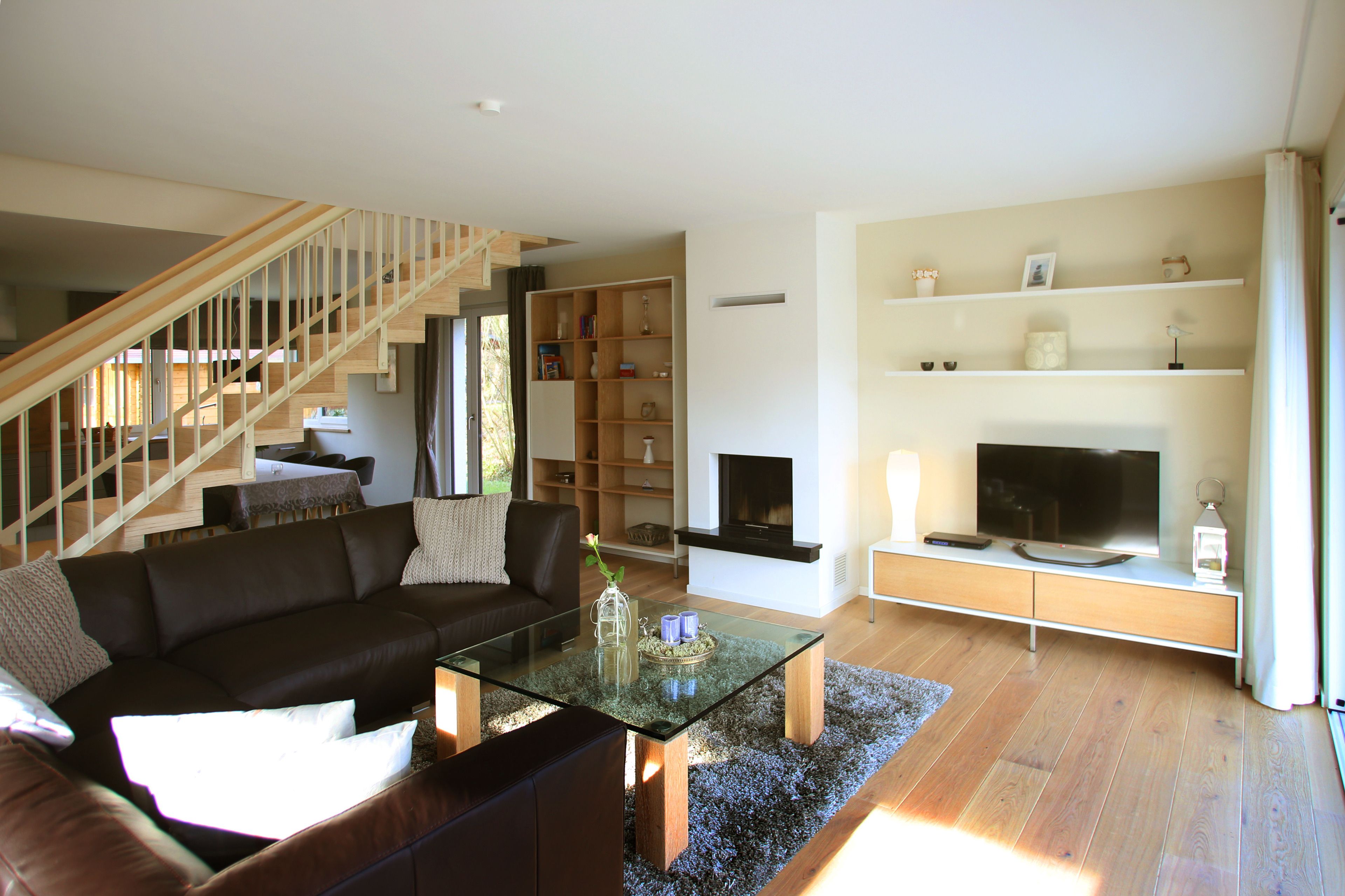 - max. 2 Personen - Wohnfläche ca.140qm - großzügiger offener Wohn- und Küchenbereich mit Freitreppe - Erdgeschoss mit Bad, Essbereich sowie Wohnbereich mit Kamin - Obergeschoss mit 3 Schlafzimmern und Bad - Balkon in der 1.Etage - großzügige Terrasse zum Garten mit Saunahaus - Dachterrasse - 3 Schlafzimmer 2 Boxspring- Doppelbetten • 1 Bett mit Boxspringmatratze - Sauna - Duschbad im UG - Bad mit Wanne und Dusche im OG - Terrasse - Carport - Garten mit Gartenmöbel