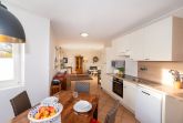 Mit einer Fläche von 60 m² erstreckt sich diese Erdgeschosswohnung über drei Zimmer, die vom großzügigen Flur aus zugänglich sind. Sie finden hier ein Schlafzimmer mit einem Doppelbett (2x 90x200 cm) sowie ein Kinderzimmer, das mit einem Einzelbett (90x200 cm) und einem Etagenbett (2x 90x200 cm) ausgestattet ist. Die geschmackvolle Einrichtung sorgt in der gesamten Wohnung für ein harmonisches Ambiente und ein rundum wohltuendes Gefühl. Ein besonderes Highlight ist die offene und geräumige Wohnküche, die ideal ist, um Zeit mit der Familie zu verbringen. Auf der dazugehörigen, möblierten Terrasse mit Markise und Grill können Sie die warmen Tage genießen und entspannt ausklingen lassen. Das Badezimmer bietet mit einer bodentiefen Dusche, einem beheizbaren Handtuchhalter und Fußbodenheizung alles, was Sie sich wünschen, um den Alltag hinter sich zu lassen.