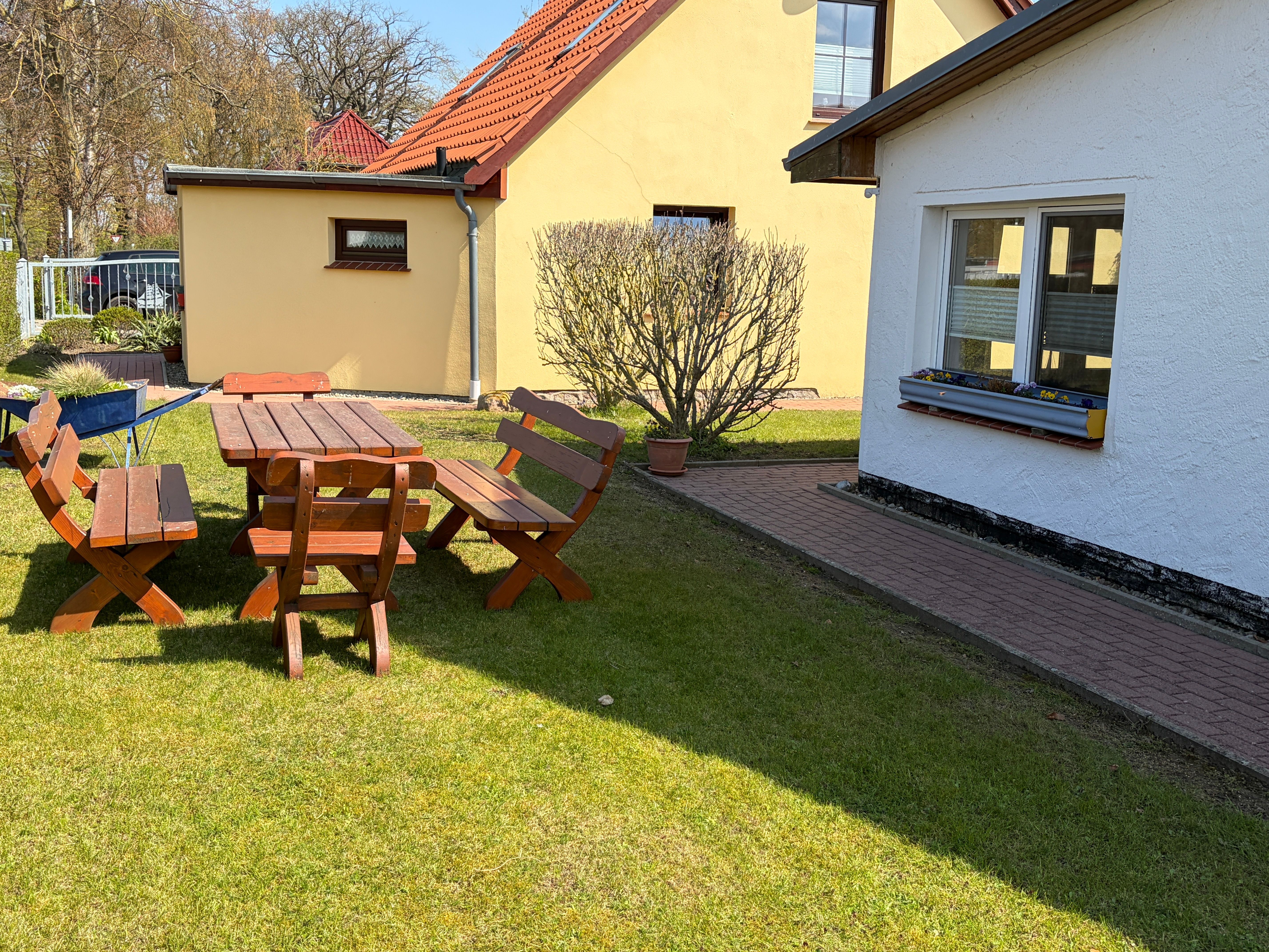 Kinderreisebett und Hochstuhl vorhanden. PKW Stellplatz direkt am Haus. Benutzung von Waschmaschine auf Anfrage. Kleiner Spielplatz und große Spielwiese für Fußball und Federball. Kostenlose Nutzung einiger Fahrräder .