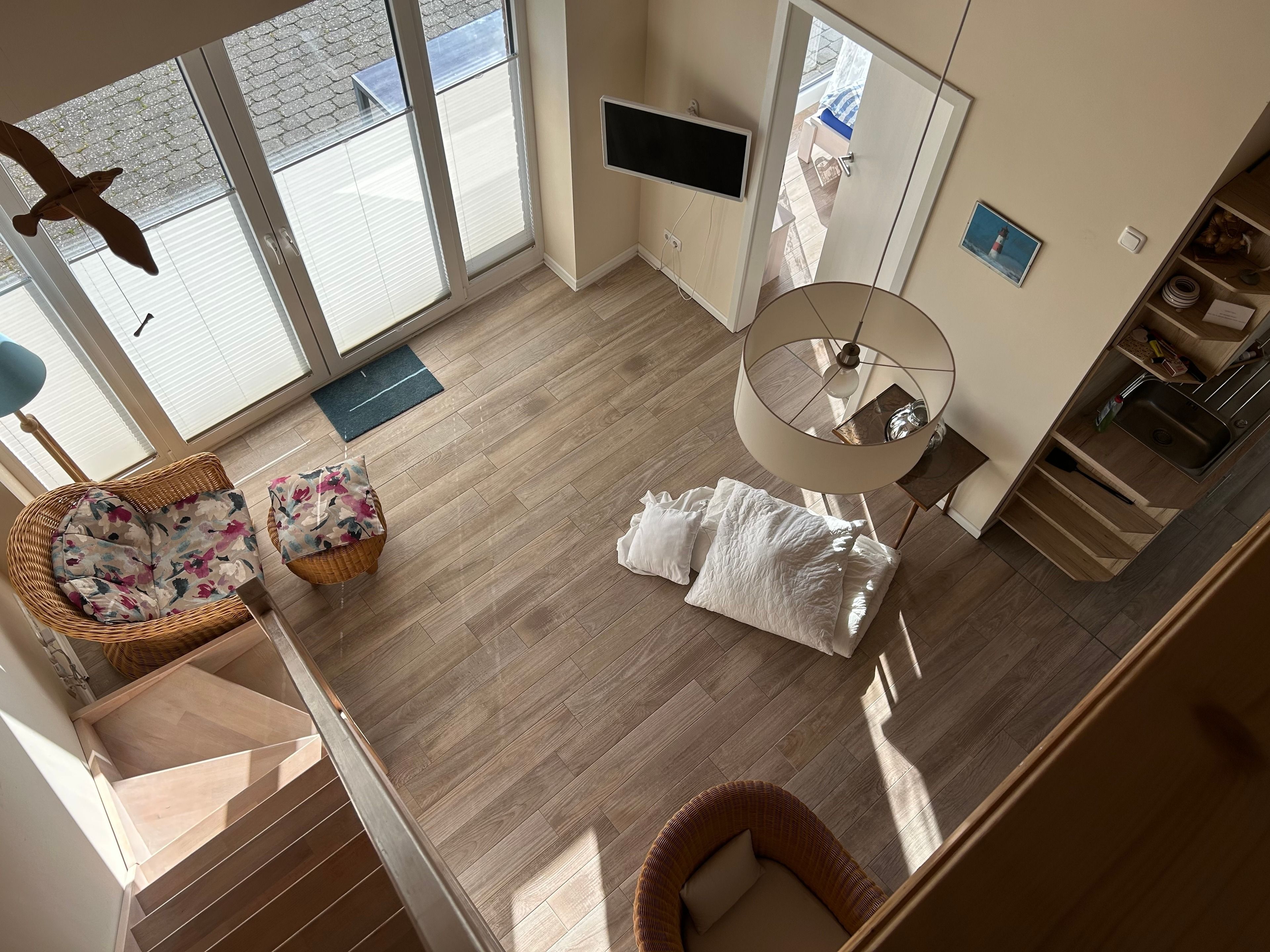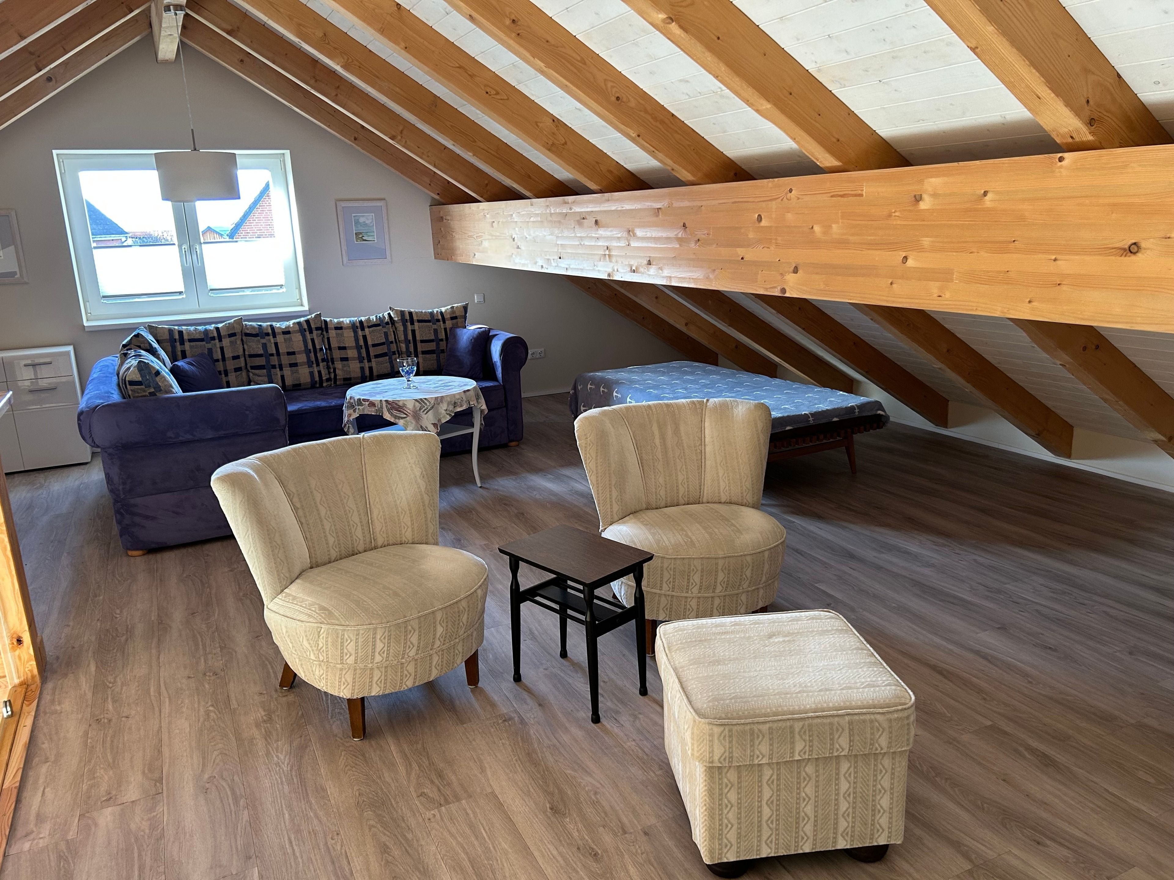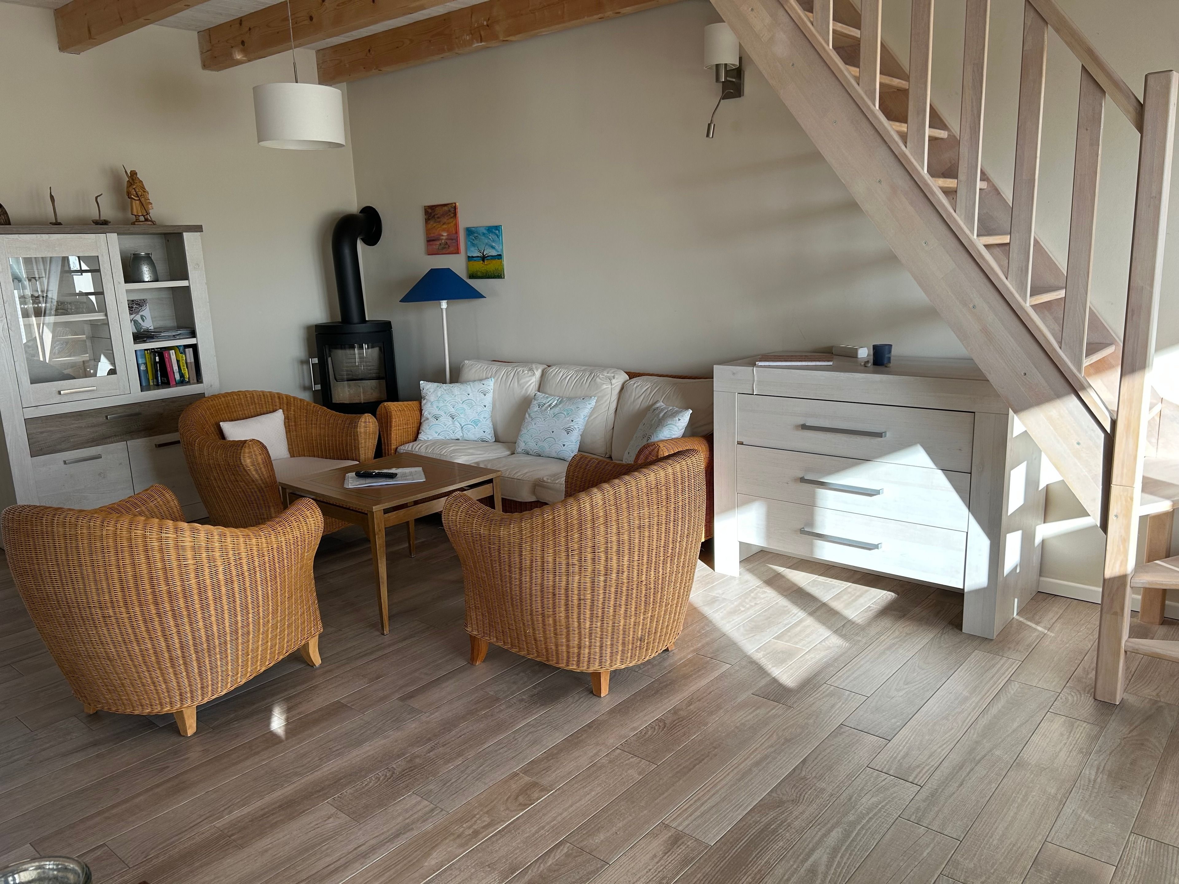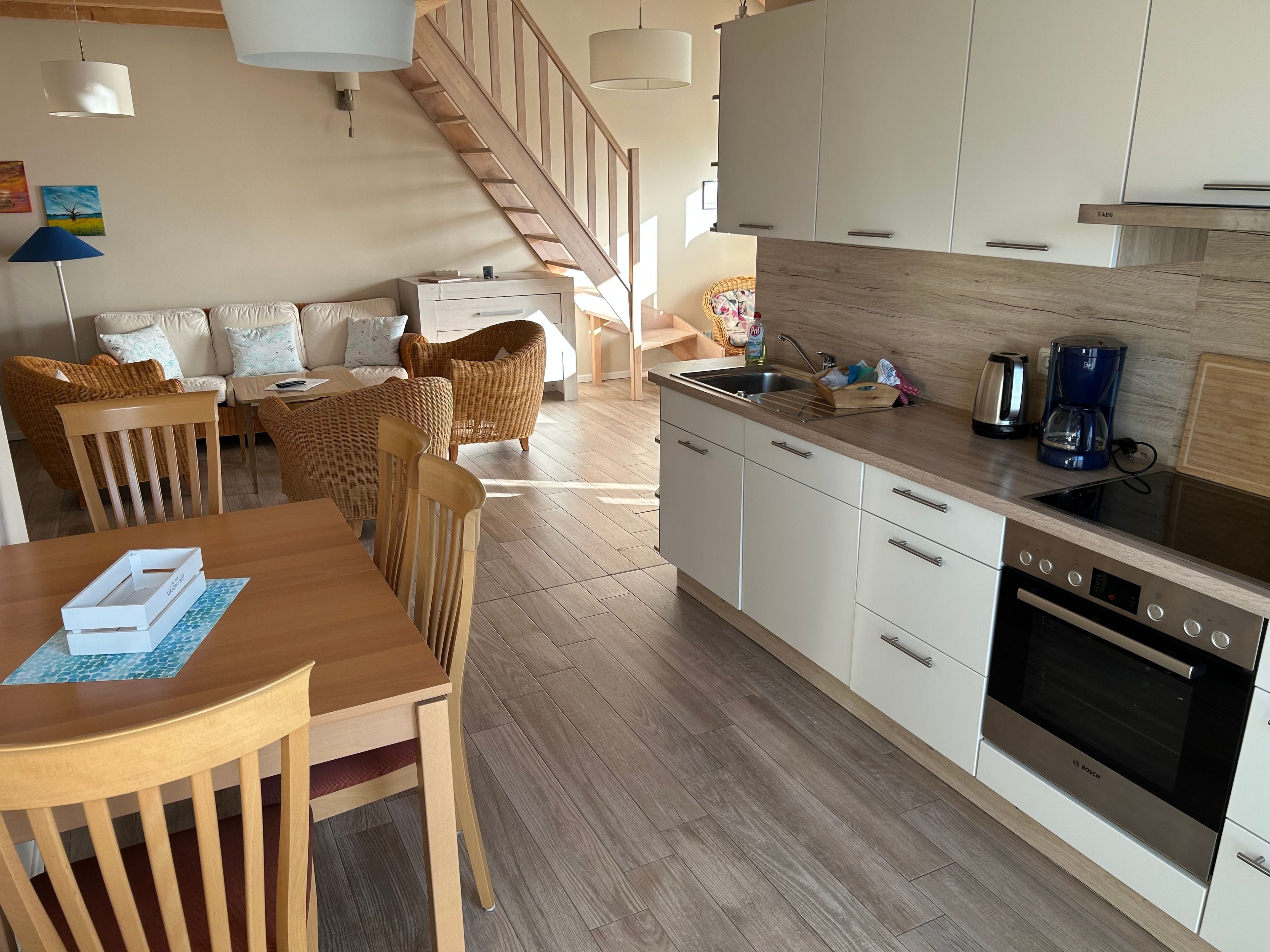 Die Ferienhaushälfte kennzeichnet sich durch die Ausrichtung nach Westen. Am Abend flutet das Sonnenlicht die Räume. Über