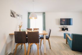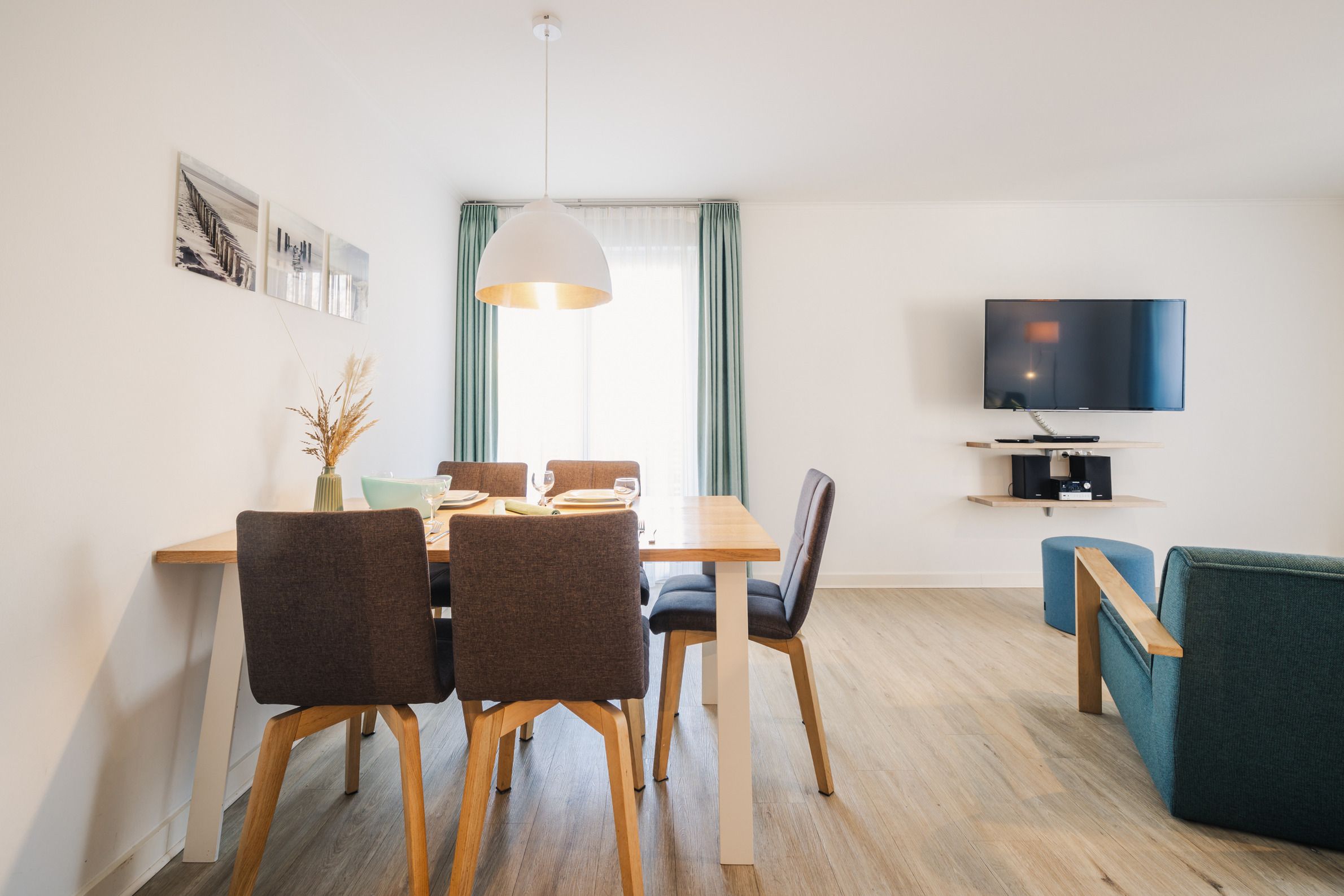 Diese moderne 3-Zimmer-Wohnung im Erdgeschoss bietet auf ca. 60 m² Wohnfläche reichlich Platz für Familien, Paare oder Freunde. Mit Schlafmöglichkeiten für bis zu sechs Personen, einer hochwertigen maritimen Ausstattung und einer angenehmen Raumaufteilung ist dieses Appartement die ideale Basis für erholsame Urlaubstage im Ostseebad Prerow.