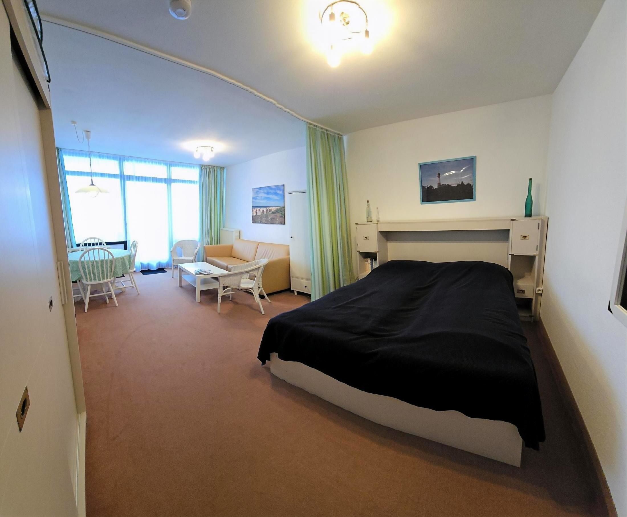 Schöne, gemütlich eingerichtete Wohnung für zwei Personen im EG eines Mehrfamilienhauses mit eigenem EG Balkon / Terrasse. Mit nur wenigen Schritten in wenigen Minuten fühlen Sie den Strand unter den Füßen! Die Wohnung hat einen Wohn-, Schlafraum mit Essecke und dem Balkon. Ferner ein Duschbad und eine Pantryküche im Eingangsbereich (kann aber mittels einer Tür abgetrennt werden). Natürlich haben Sie einen eigenen Parkplatz!