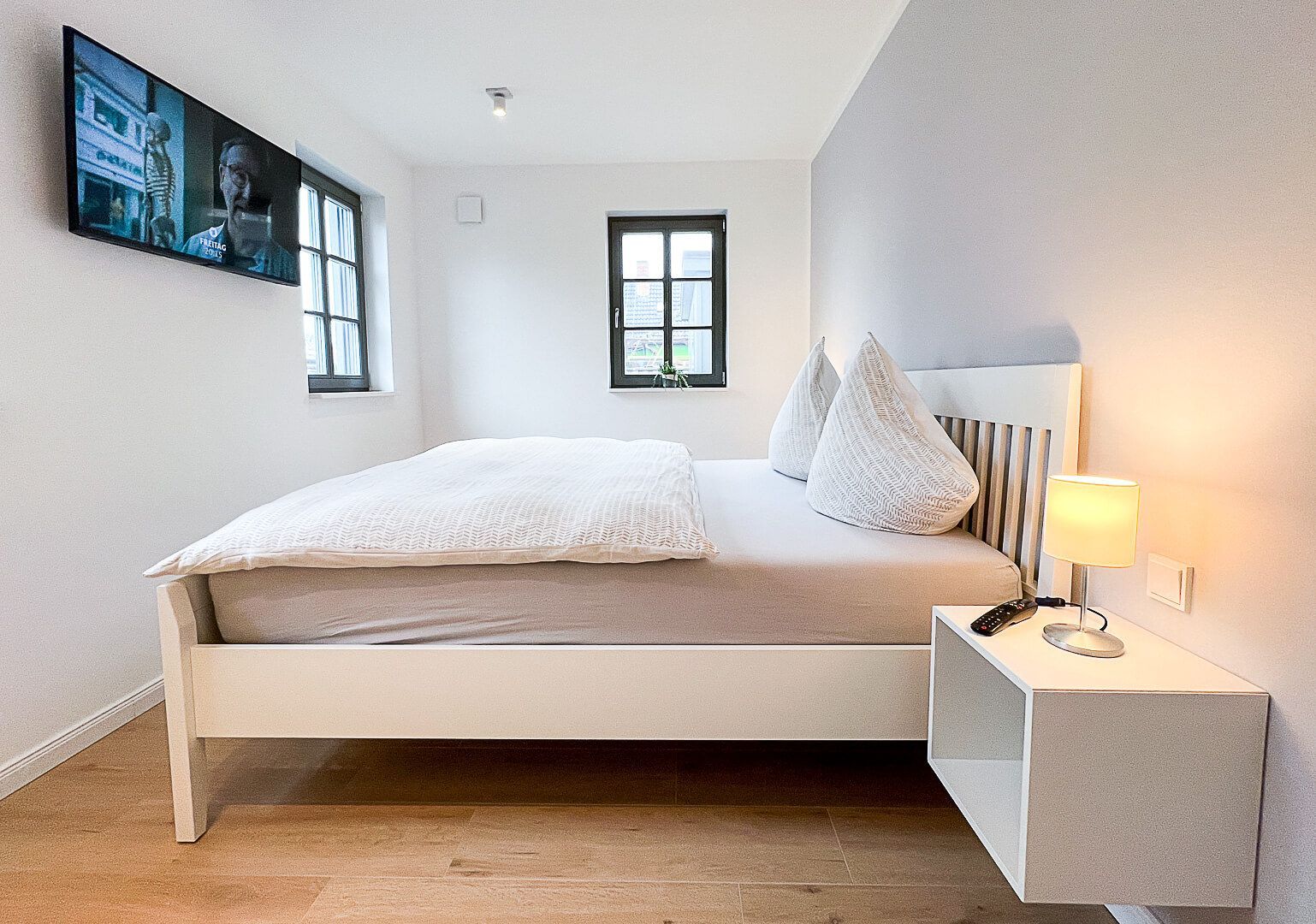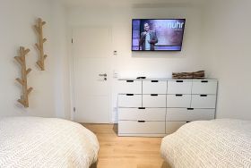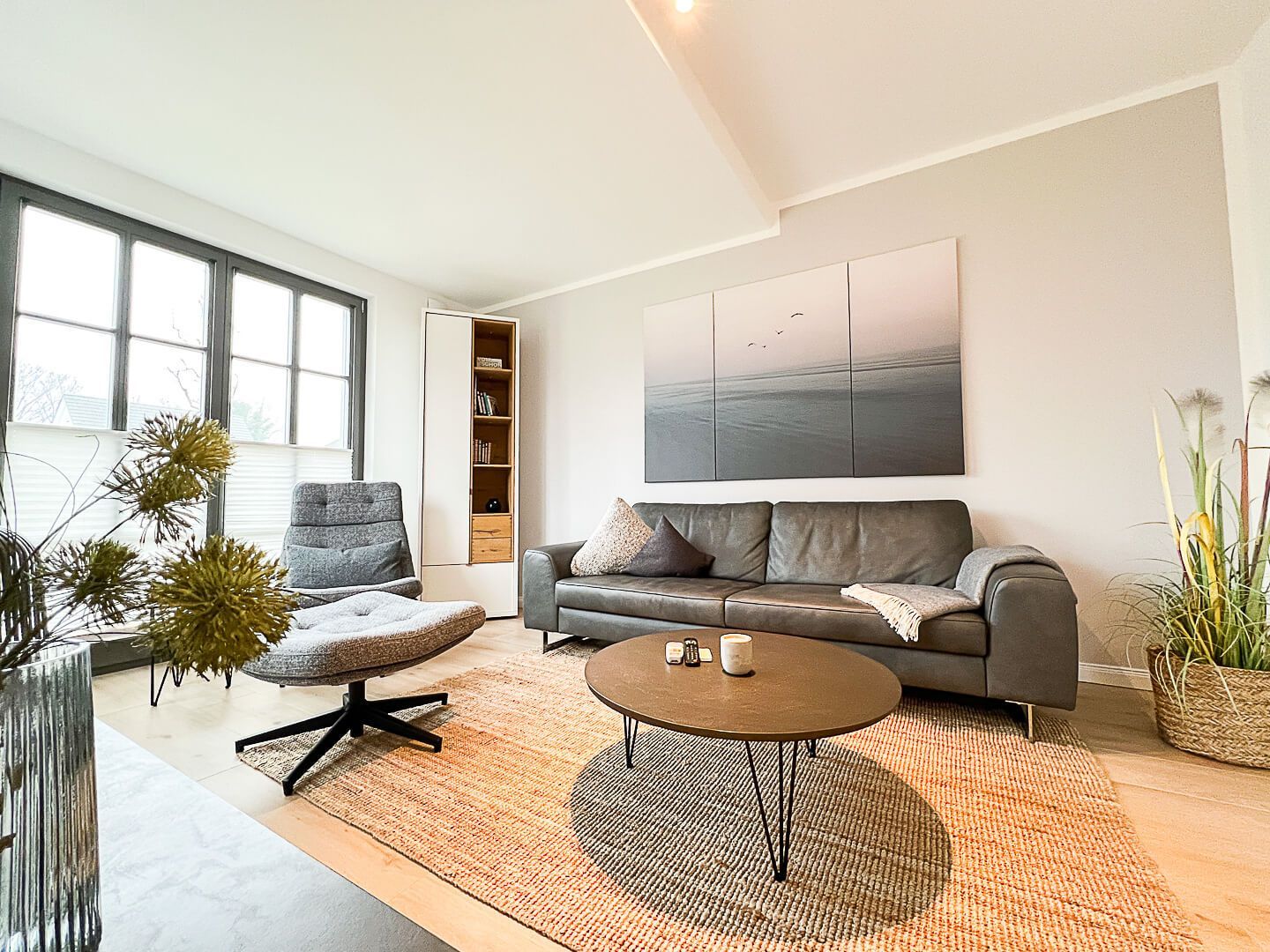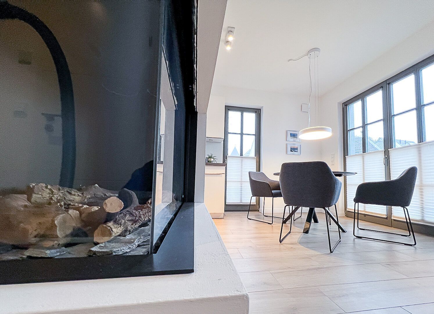 Die 62 m² große Ferienwohnung Surfside bietet ein modernes Wohnerlebnis im Erdgeschoss für bis zu 4 Personen. Das Herzstück ist der lichtdurchflutete Wohn- und Essbereich mit einem hochwertigen Gaskamin, der auf Knopfdruck für gemütliche Stunden sorgt. Die offene Küche ist voll ausgestattet und verfügt über eine Nespresso-Maschine für den perfekten Urlaubsstart. Die Wohnung bietet zwei separate Schlafzimmer: eines mit einem komfortablen Doppelbett und eines mit zwei Einzelbetten. Ein besonderes Highlight ist die mediale Ausstattung mit Smart-TVs in allen drei Zimmern. Das Badezimmer überzeugt mit einer bodengleichen Wellnessdusche und Fußbodenheizung. Eine eigene Waschmaschine und kostenfreies WLAN stehen Ihnen ebenfalls zur Verfügung.