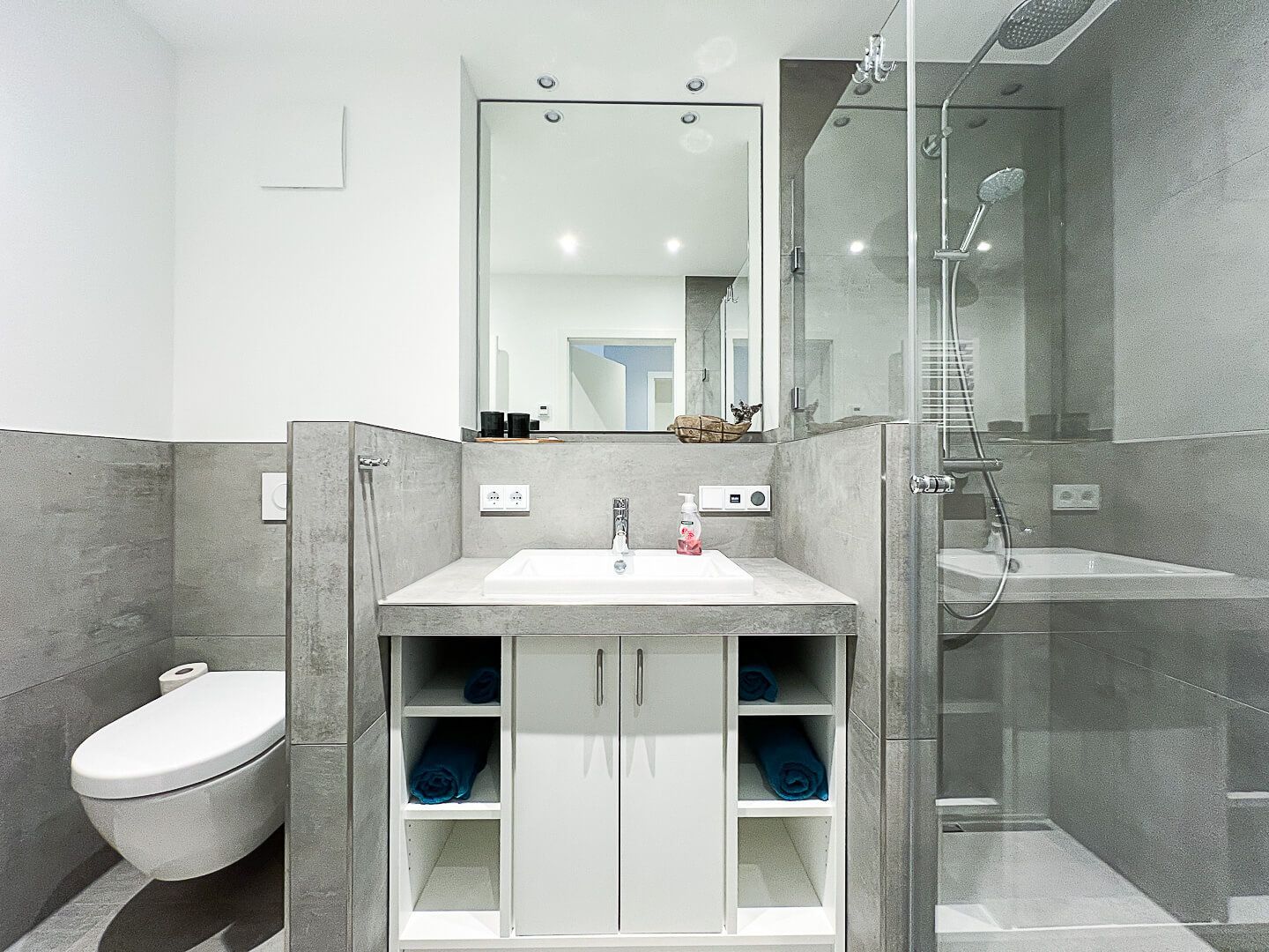 Die Surfside befindet sich in einem modernen, gepflegten Mehrfamilienhaus. Da die Wohnung im Erdgeschoss liegt, ist sie komplett schwellenfrei zugänglich. Zur Wohneinheit gehört ein eigener, abgegrenzter Gartenanteil mit einer möblierten Terrasse ein idealer Rückzugsort für das Frühstück im Freien oder ein entspanntes Sonnenbad. Alle Fenster sind mit hochwertigem Insektenschutz ausgestattet. Ein fester PKW-Stellplatz befindet sich direkt am Haus, sodass die Anreise und das Ausladen des Gepäcks besonders komfortabel sind.