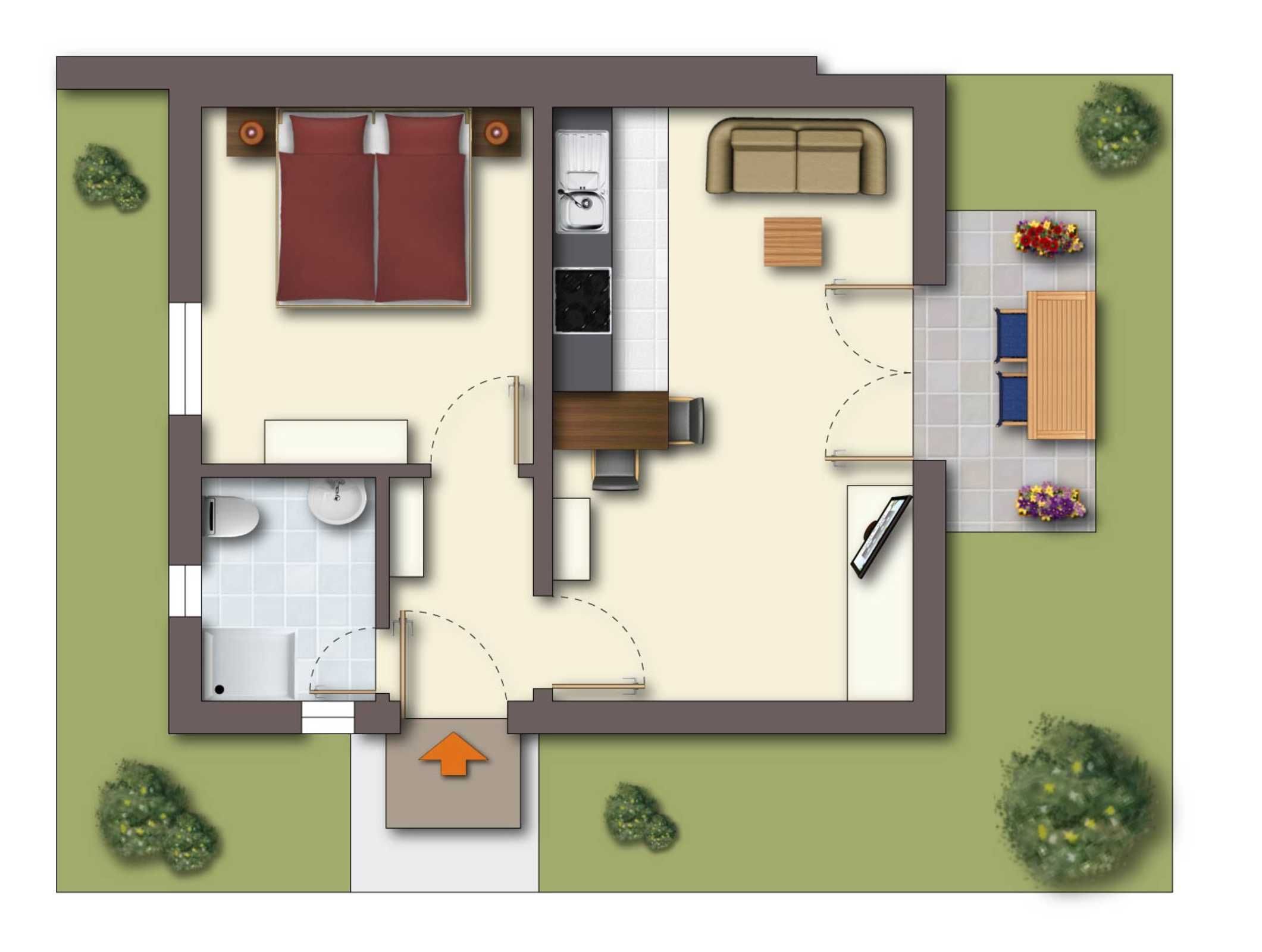 Das 1-Raum-Appartement ist funktionell, gemütlich und mit Liebe zum Detail eingerichtet.