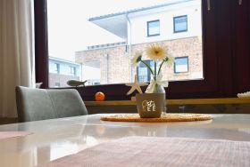 Nur etwa 50 Meter Luftlinie vom Meer entfernt erwartet Sie unsere charmante Ferienwohnung in einem gepflegten Vier-Parteien-Haus in unmittelbarer Deichlage. Hier genießen Sie die frische Osrseeseeluft und - bei geöffnetem Fenster oder auf der Terrasse - das beruhigende Meeresrauschen im Hintergrund.