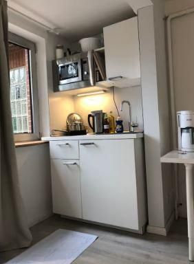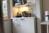 Die Wohnung hat ein kleines Duschbad, eine Kitchenette im Eingangsbereich mit 2 flammigem Ceranfeld, Mikrowelle und kleinem Kühlschrank. Selbstverständlich gibt es W-Lan.
