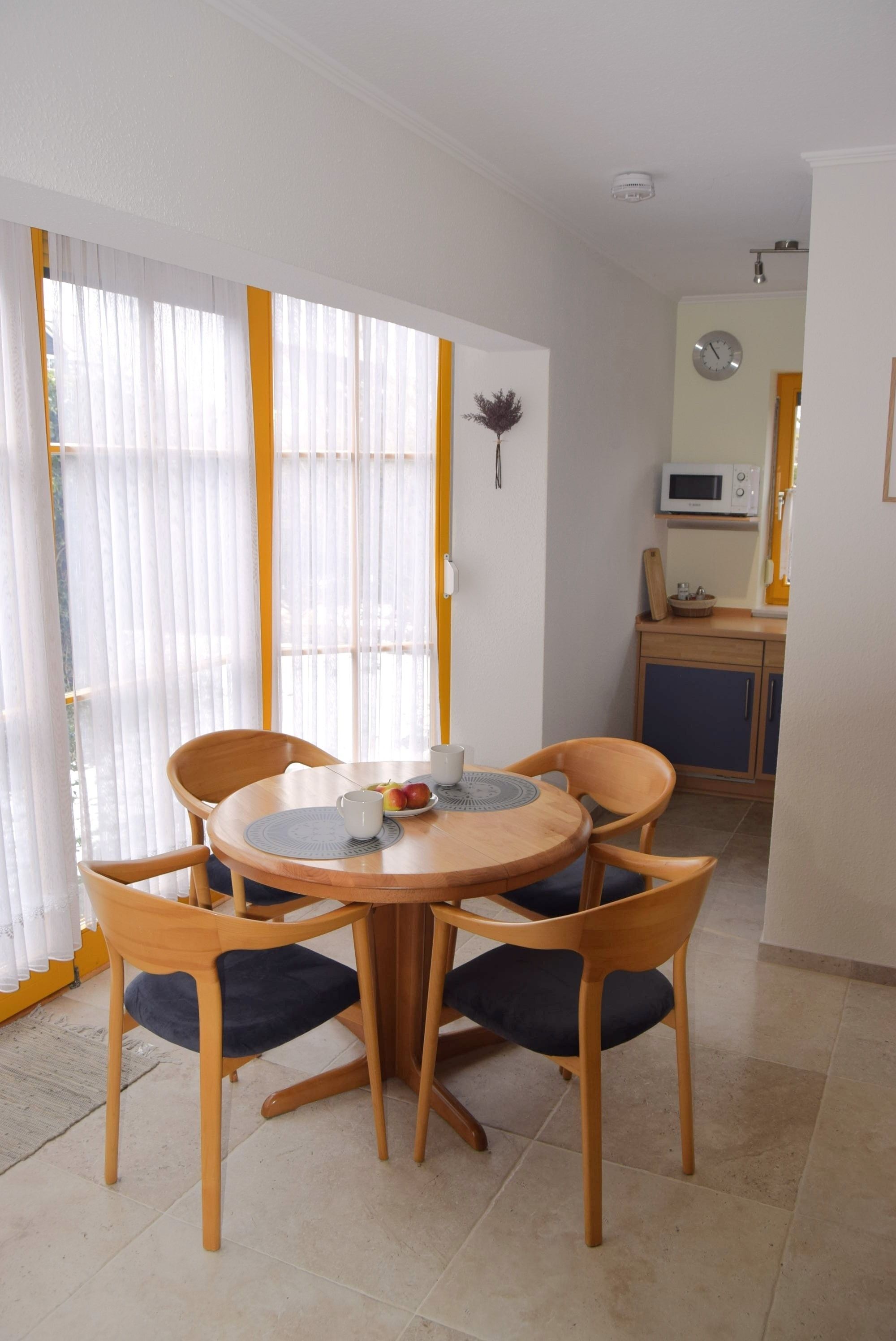 Die kleine, aber feine Küche verfügt über einen Backofen, Geschirrspüler, Mikrowelle, Toaster Wasserkocher und selbstverständlich eine Kaffeemaschine.