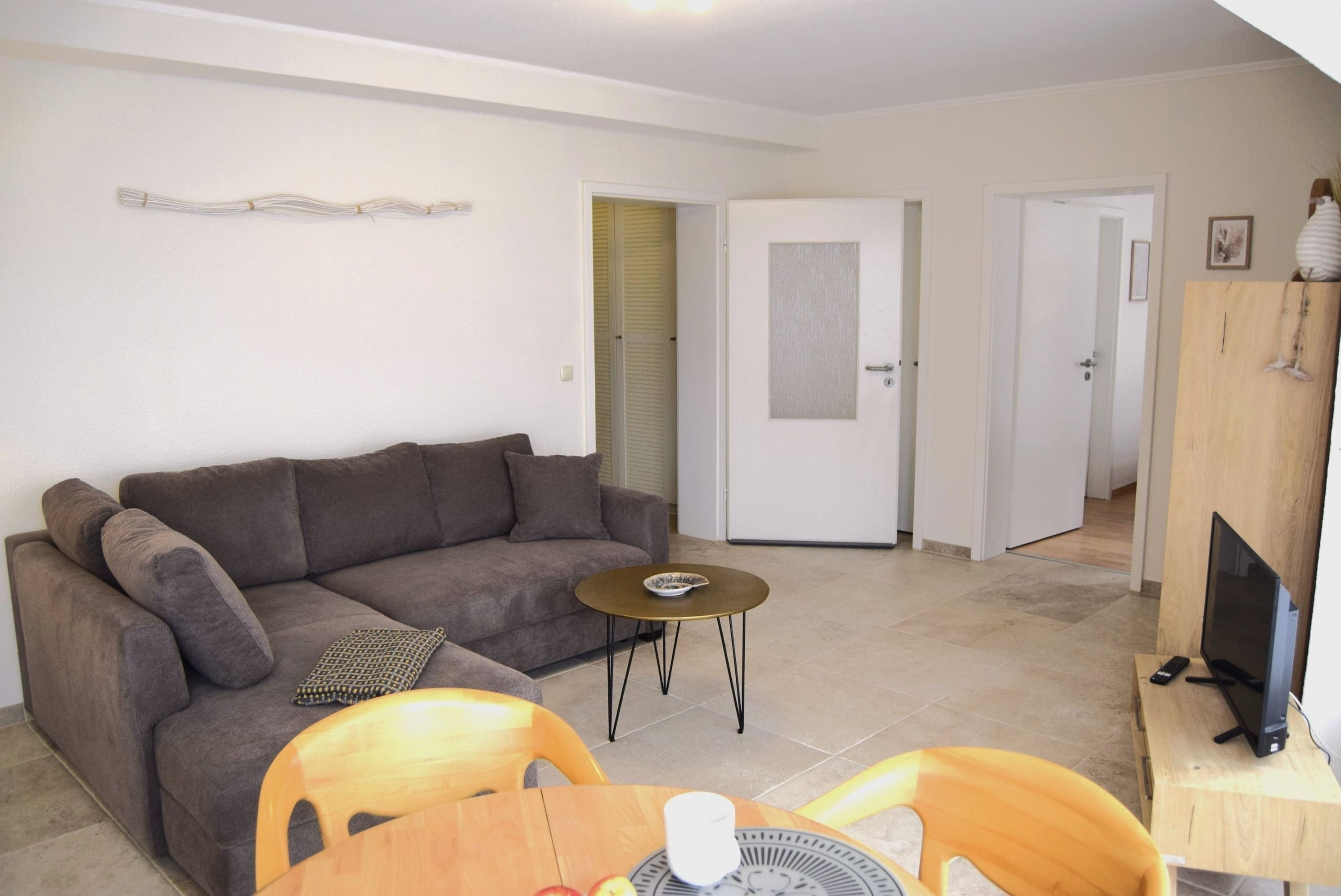Auf 44 m² haben wir für Sie Alles auf Urlaub eingestellt. Ein gemütliches Wohnzimmer bietet allen Komfort für entspannte Urlaubstage.