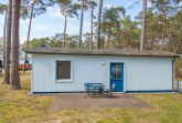 Das einzeln stehende Ferienhäuschen mit Terrasse und Blick zum Wald verfügt über ein Wohnzimmer mit Miniküche, ein separates Schlafzimmer, Flur und Bad.