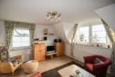 Eine Treppe führt vom Wohnbereich im 1. OG. als auch in das Schlafzimmer mit Doppelbett im Dachgeschoss