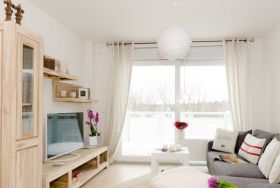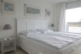 Das sehr liebevoll eingerichtete Nichtraucherappartement „Sonnendeck“ verfügt über ein großes helles Wohnzimmer mit offenem Ess-und Küchenbereich, sowie einem Schlafzimmer. Das Schlafzimmer ist ausgestattet mit einem Doppelbett (eine große Matratze 180x200) nebst hochwertigen Lattenrosten u. Matratzen, sowie einem Schwebetürenschrank mit ausreichend Stauraum.