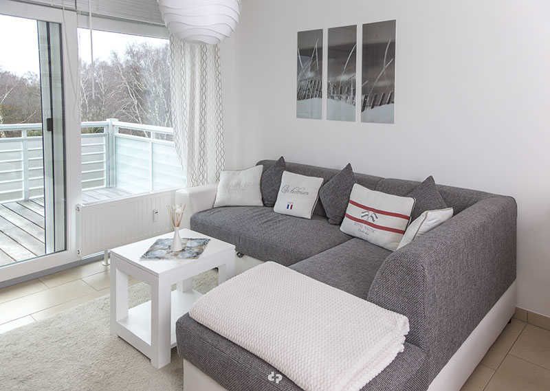 Auf der modernen, ausziehbaren Couch im Wohnbereich können Sie wunderbar relaxen und die Couch lässt sich mit wenigen Handgriffen in ein Gästebett (Liegefläche für 2 Personen130x200) verwandeln. Mit LED-Flachbildfernseher und CD-Player können Sie es sich am Abend richtig gemütlich machen.