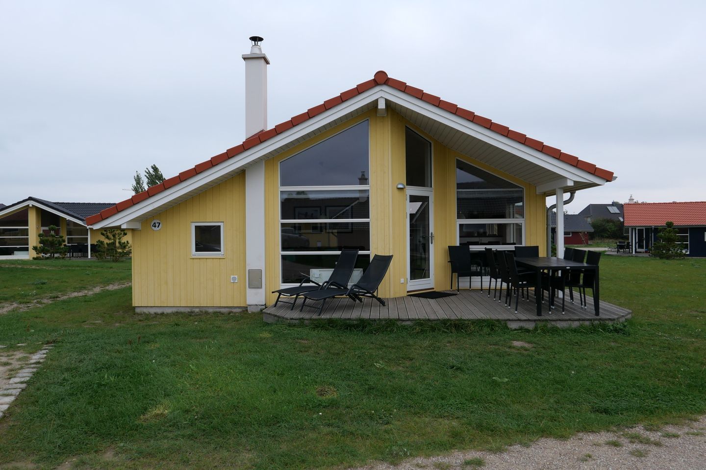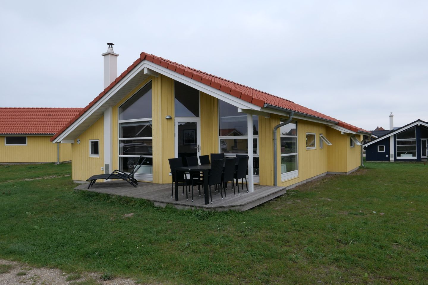 Bitte beachten Sie: Manche Häuser verfügen über ein Geländer um die Terrasse herum, andere nicht. Bei den Außen- und Innenbildern handelt es sich um Modellbilder unterschiedlicher Ferienhäuser.