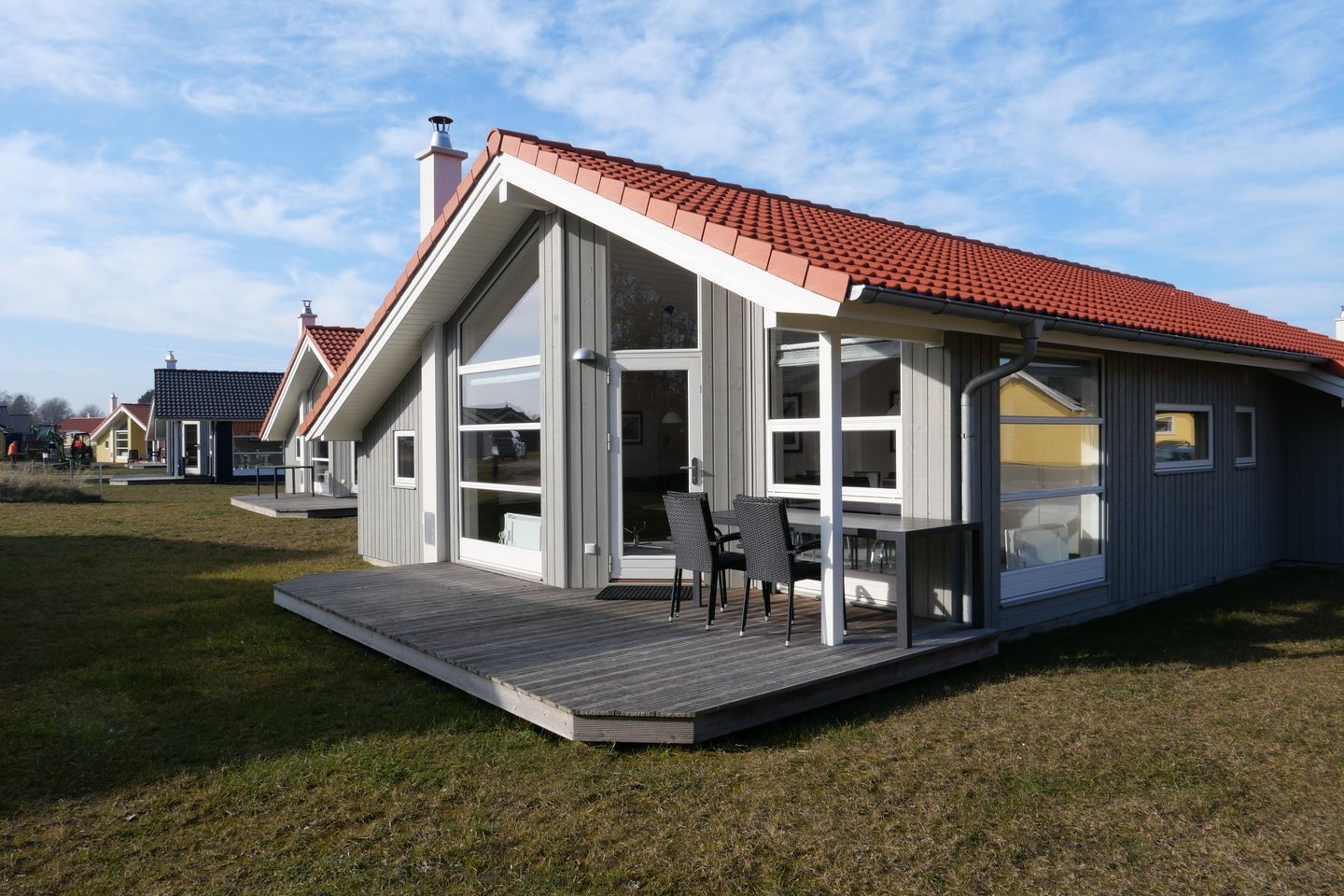 Bitte beachten Sie: Manche Häuser verfügen über ein Geländer um die Terrasse herum, andere nicht. Bei den Außen- und Innenbildern handelt es sich um Modellbilder unterschiedlicher Ferienhäuser.
