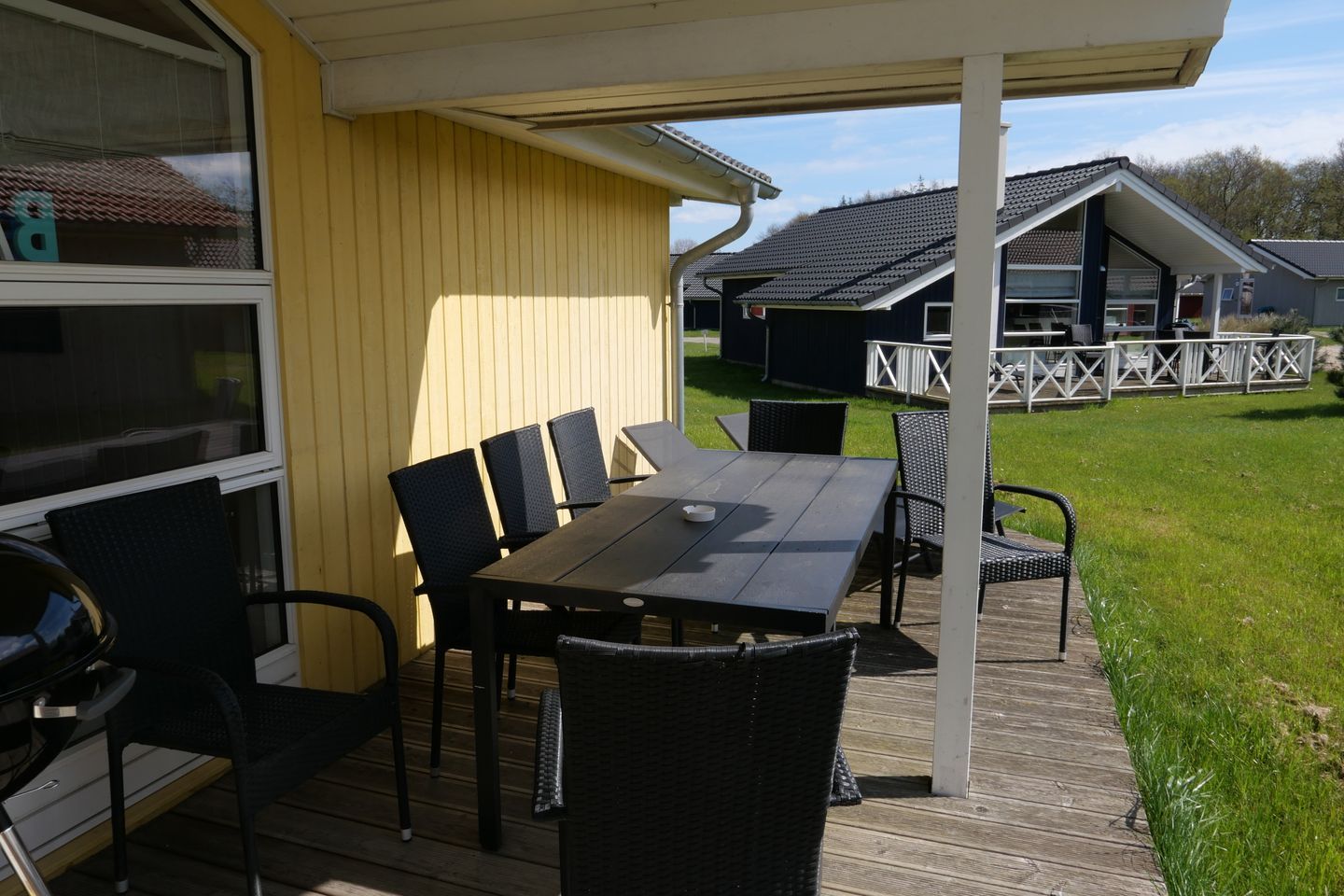 Bitte beachten Sie: Manche Häuser verfügen über ein Geländer um die Terrasse herum, andere nicht. Bei den Außen- und Innenbildern handelt es sich um Modellbilder unterschiedlicher Ferienhäuser.