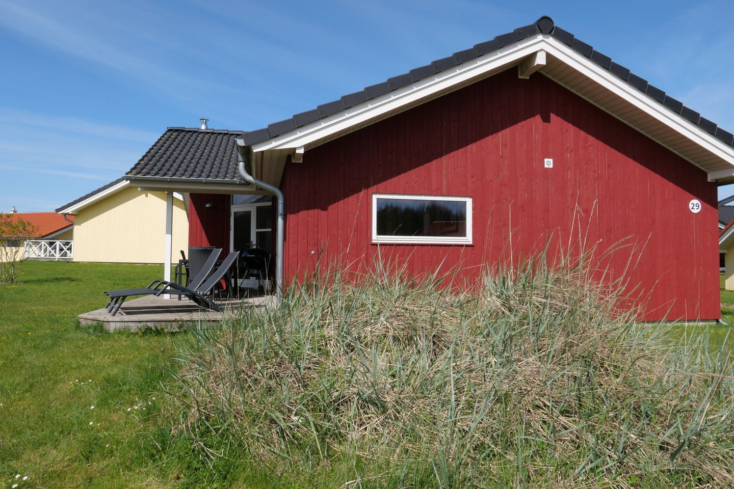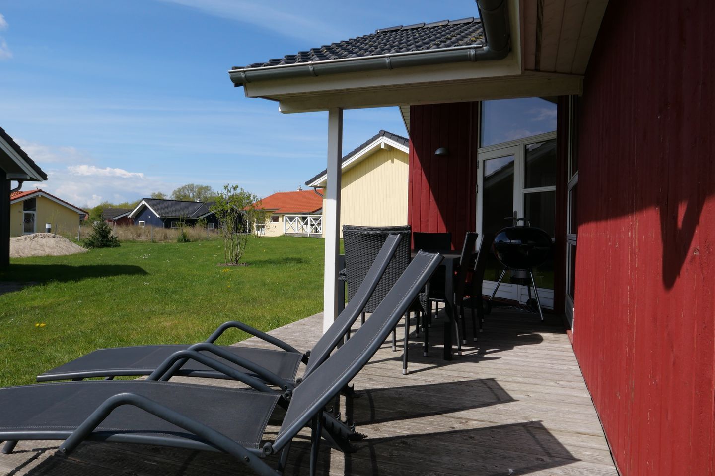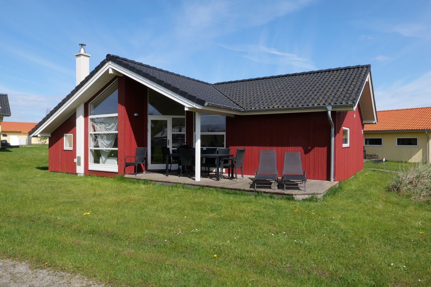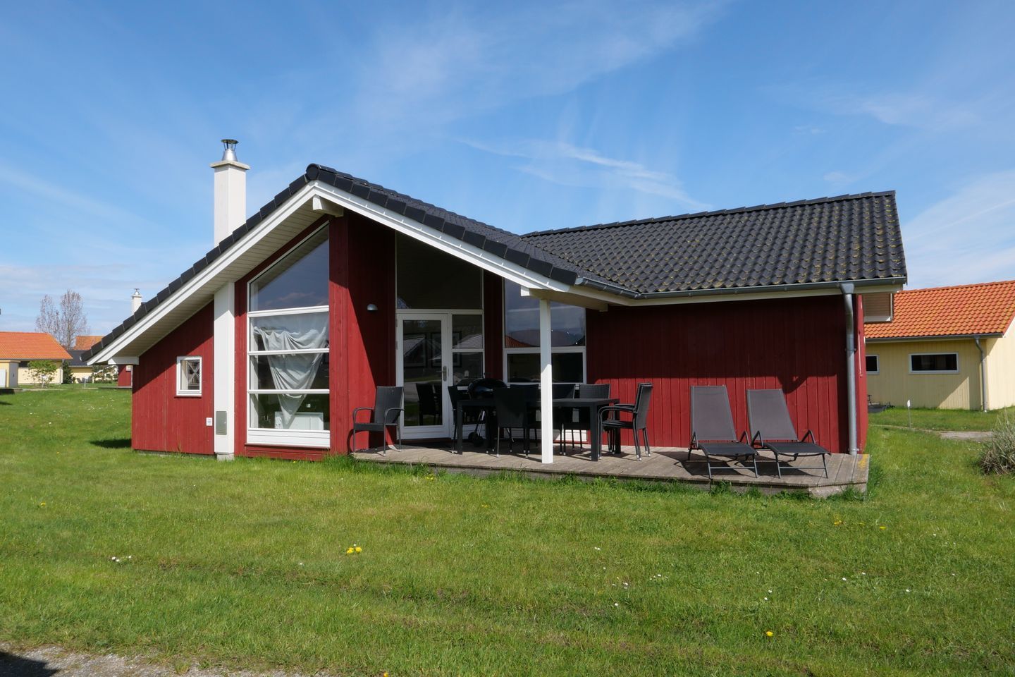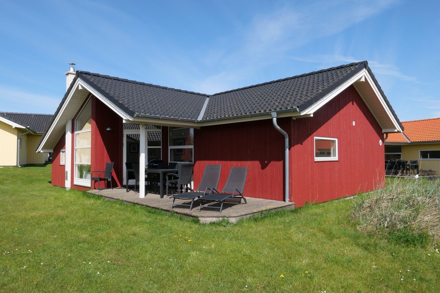 Bitte beachten Sie: Manche Häuser verfügen über ein Geländer um die Terrasse herum, andere nicht. Bei den Außen- und Innenbildern handelt es sich um Modellbilder unterschiedlicher Ferienhäuser.