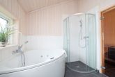 Die 3 Schlafzimmer liegen räumlich etwas versetzt. Ein großes Schlafzimmer mit Doppelbett liegt gleich neben dem großen Badezimmer mit Whirlpool, Sauna und Dusche. Die zwei weiteren Schlafzimmer sind mit Doppelbett bzw. zwei Einzelbetten ausgestattet und liegen auf der anderen Seite des Hauses nahe dem kleinen Bad mit Dusche. Im Alkoven befinden sich zwei zusätzliche Schlafplätze mit Doppelbett, immer sehr beliebt bei den jüngeren Familienmitgliedern. Ein Kinderbett und ein Kinderhochstuhl befinden sich im Haus.