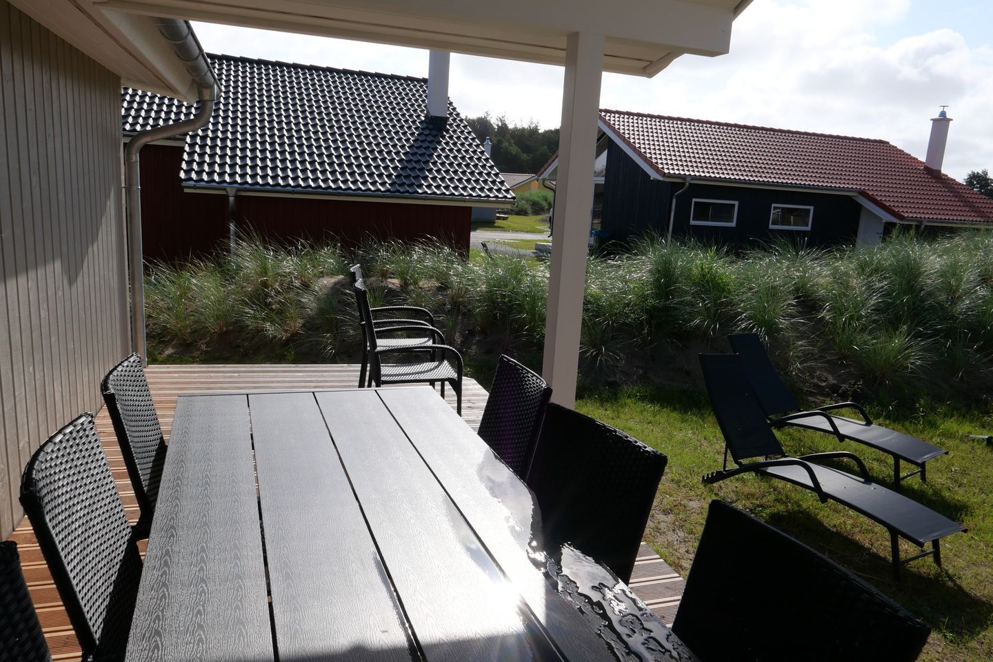 Bitte beachten Sie: Manche Häuser verfügen über ein Geländer um die Terrasse herum, andere nicht. Bei den Außen- und Innenbildern handelt es sich um Modellbilder unterschiedlicher Ferienhäuser.