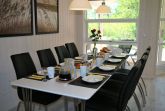 Der offene und zentrale Wohn- und Küchenbereich bildet den gemütlichen Treffpunkt für alle und sorgt für ein großzügiges Wohngefühl. Eine große und gemütliche Sofaecke lädt zum Chillen ein und am etwas separat stehenden Esstisch lassen sich die gemeinsamen Mahlzeiten und kulinarischen Highlights genießen.
