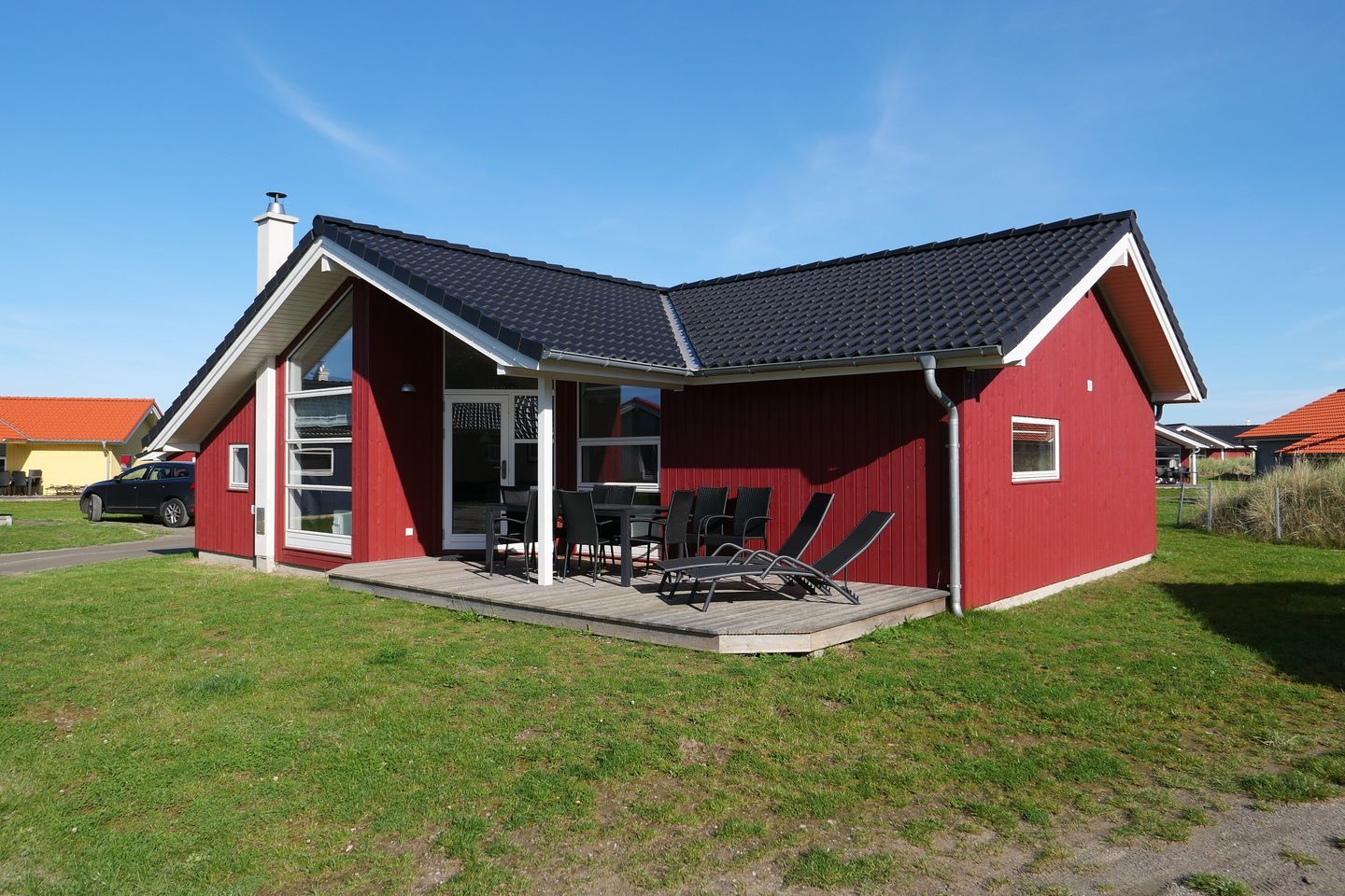 Direkt an jedem Ferienhaus steht pro Haus ein kostenloser PKW-Stellplatz zur Verfügung. Für alle Gäste, die mit 2 oder mehr PKW anreisen, befindet sich unmittelbar am Eingang des Resorts ein weiterer großer Parkplatz, der für unsere Gäste kostenlos ist.