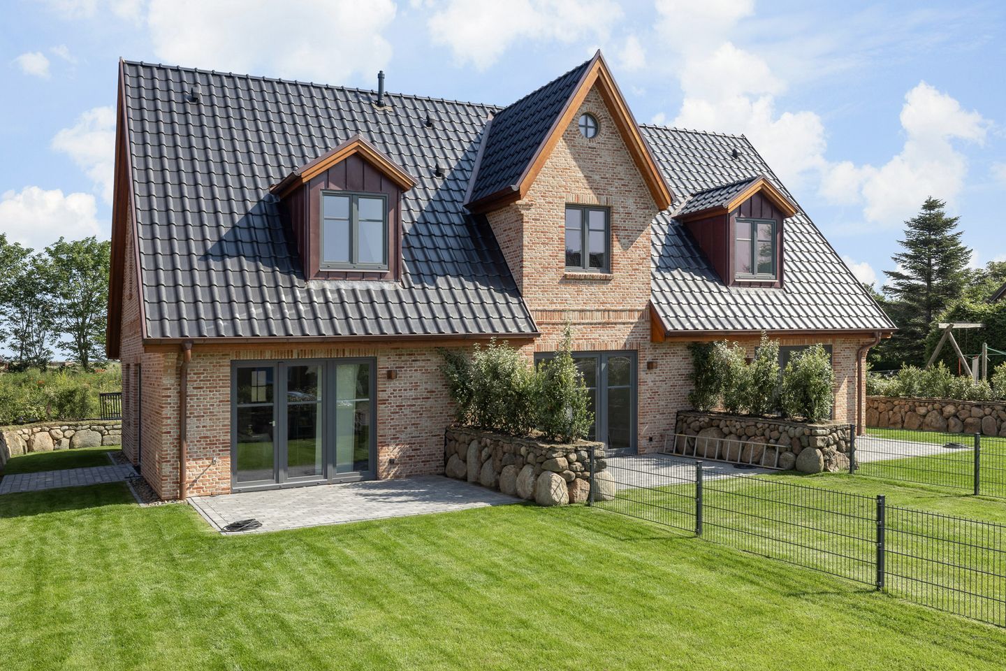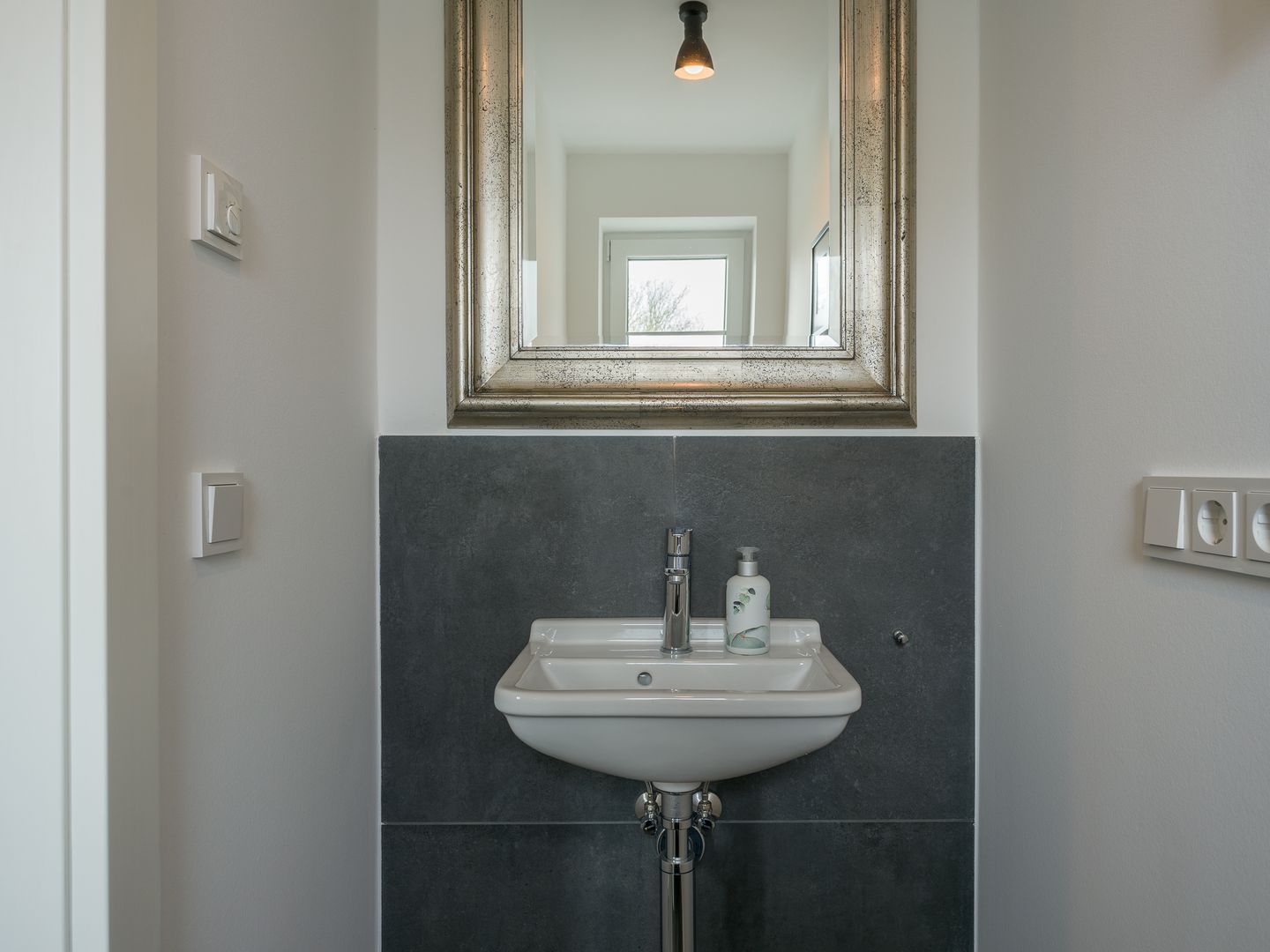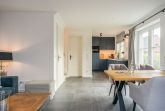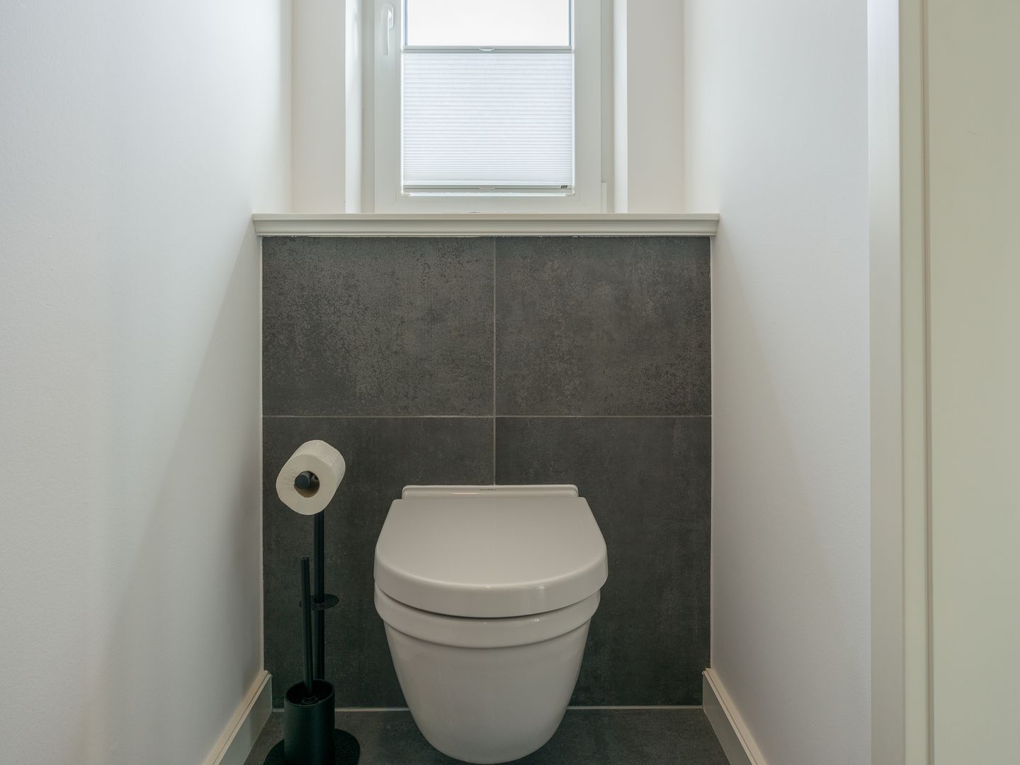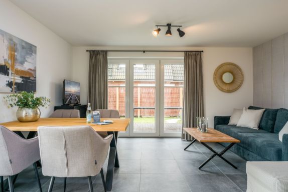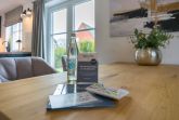 Herzstück des Hauses ist der großzügig geschnittene Wohn-/Essbereich mit seinem Wohnkonzept, das für nordischen Charme und moderne Natürlichkeit steht: ein hochwertiger Boden aus Naturstein, helle Naturtöne als Basis, eine Prise Holz und weiche Textilien, wie zum Beispiel das gemütliche Sofa aus weichem Cord. Der Esstisch lädt dazu ein, sich hier beim Urlaubsfrühstück so richtig Zeit zu lassen. Für die Vorbereitungen dazu ist die hochwertige und gut ausgestattete Küche bestens geeignet. Ein weiteres Highlight sind die beiden großen Fensterfronten, die nicht nur für jede Menge Tageslicht sorgen, sondern auch auf die Süd-/Westterrassen. führen - ein Kaffee oder ein Glas Wein hier als Anfang oder Ausklang eines schönen Urlaubstages. Im Erdgeschoss befindet sich außerdem noch ein kleines aber feines Gäste-WC.