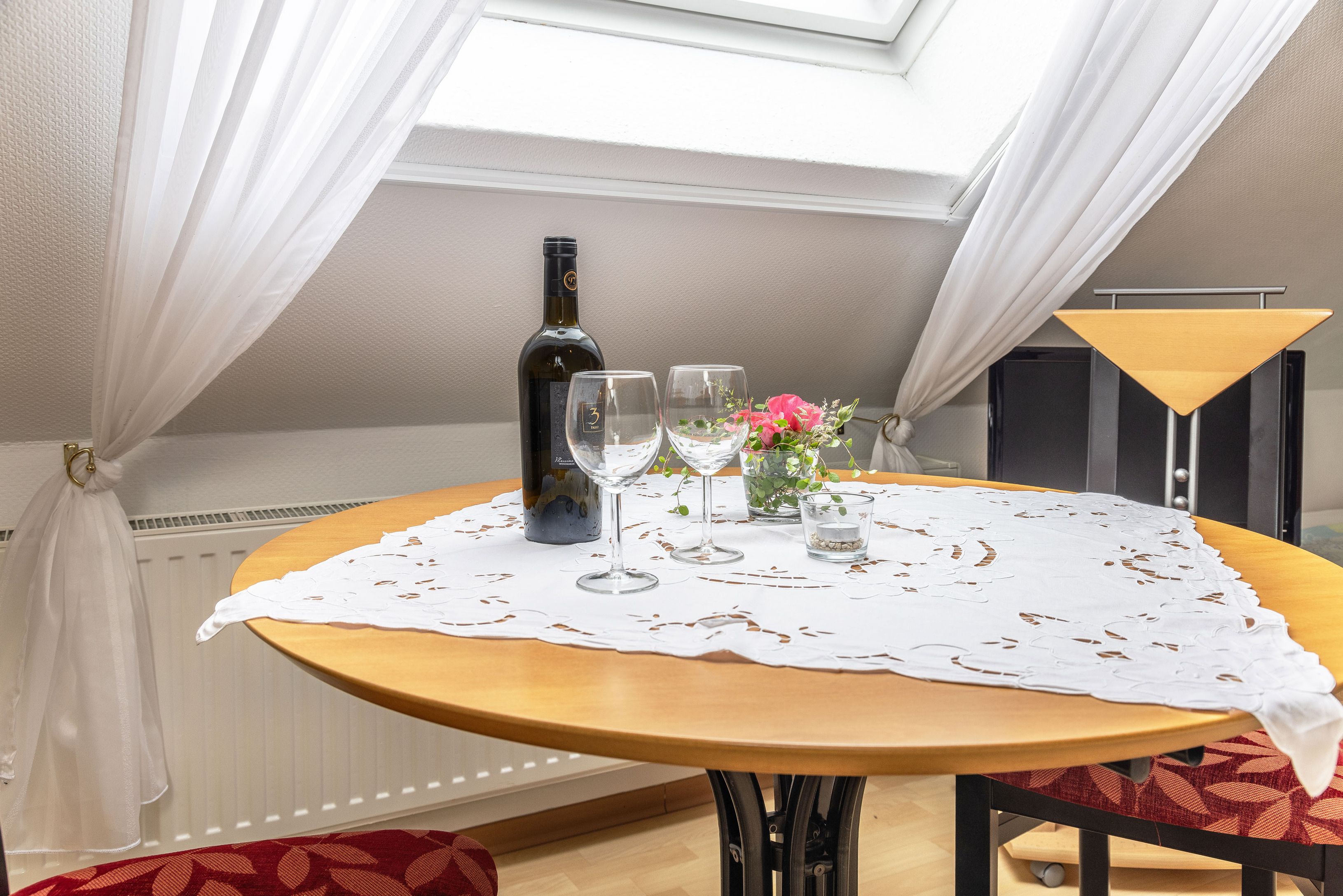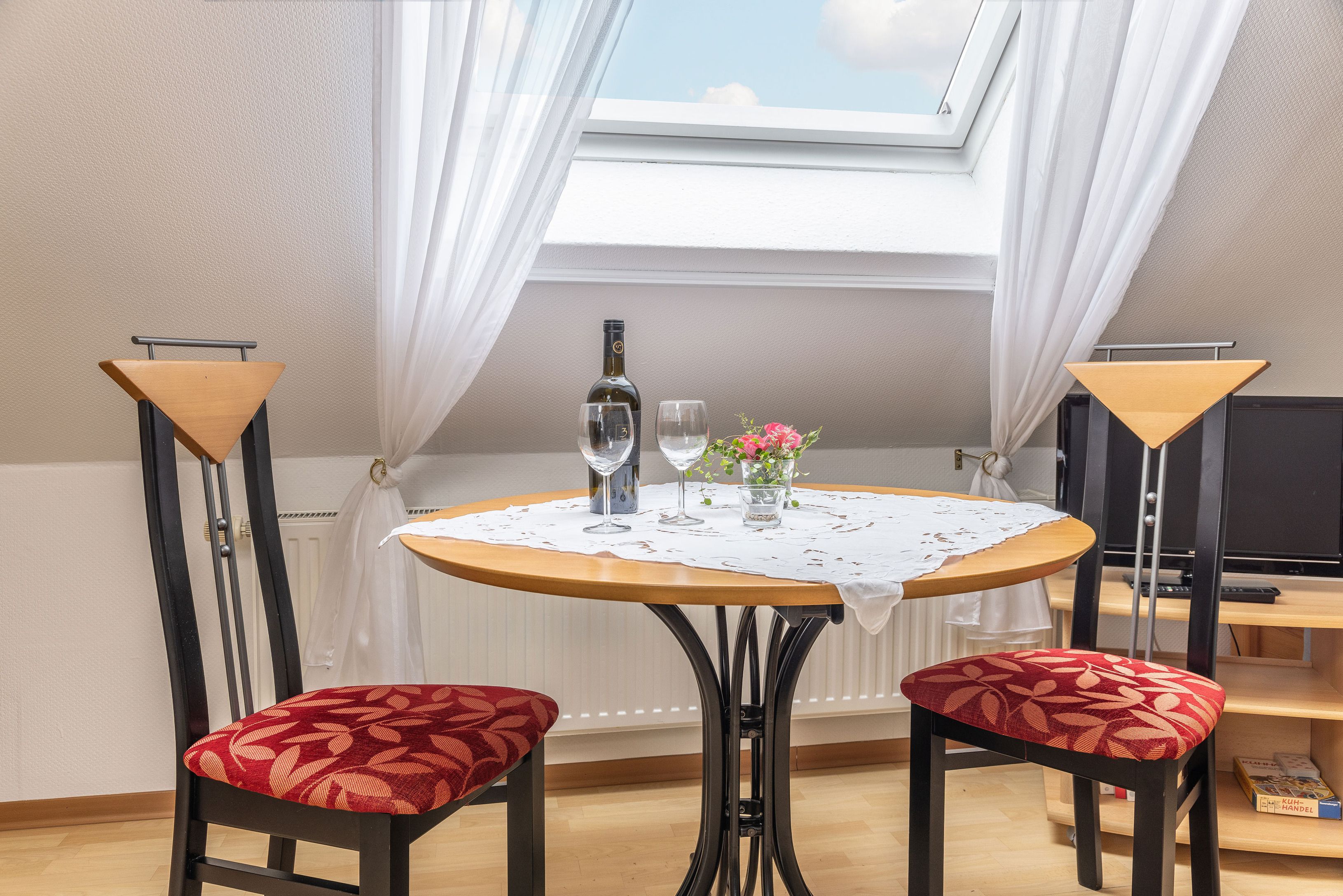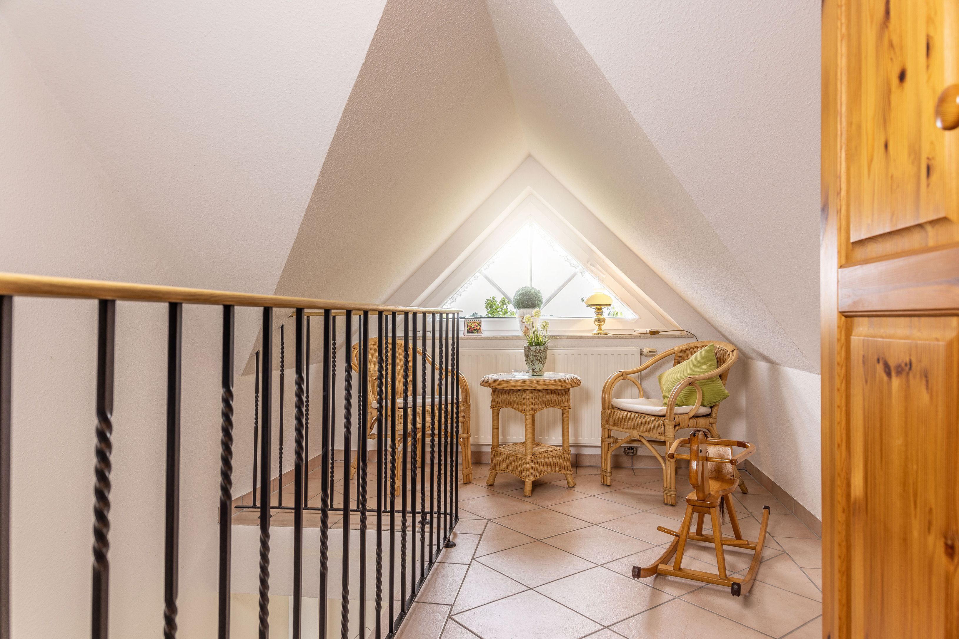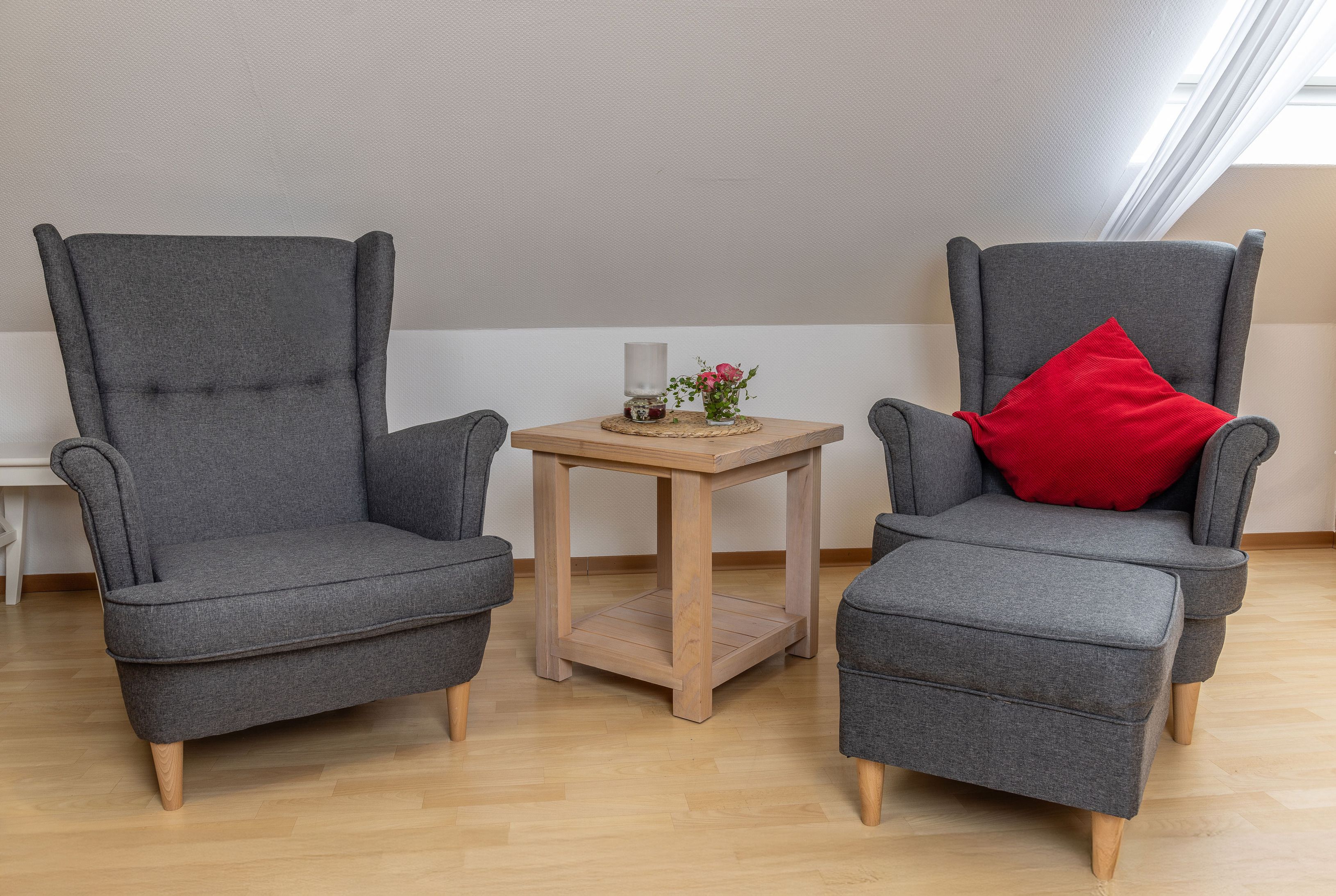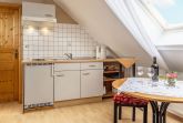 Die Utkiek bietet auf ca. 35 m² eine einladende Unterkunft für bis zu 2 Personen – ideal für Pärchen oder Oma und Opa die mit der Familie mitreisen möchten. Die Wohnung kann komplett eigenständig genutzt werden oder als Zusatzzimmer zu unseren Wohnungen Hoffblick oder Wietkiek. Die Wohnung im 2.Obergeschoss ist hell und freundlich gestaltet und verfügt über eine gut ausgestattete Küche, gemütliche Wohn- und Schlafbereiche sowie moderne Technik wie Sat-TV und DVD-Player. Von hier aus genießen Sie einen herrlichen Blick über den Hof und die umliegenden Wiesen – perfekt zum Abschalten und Erholen.