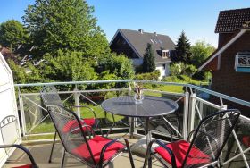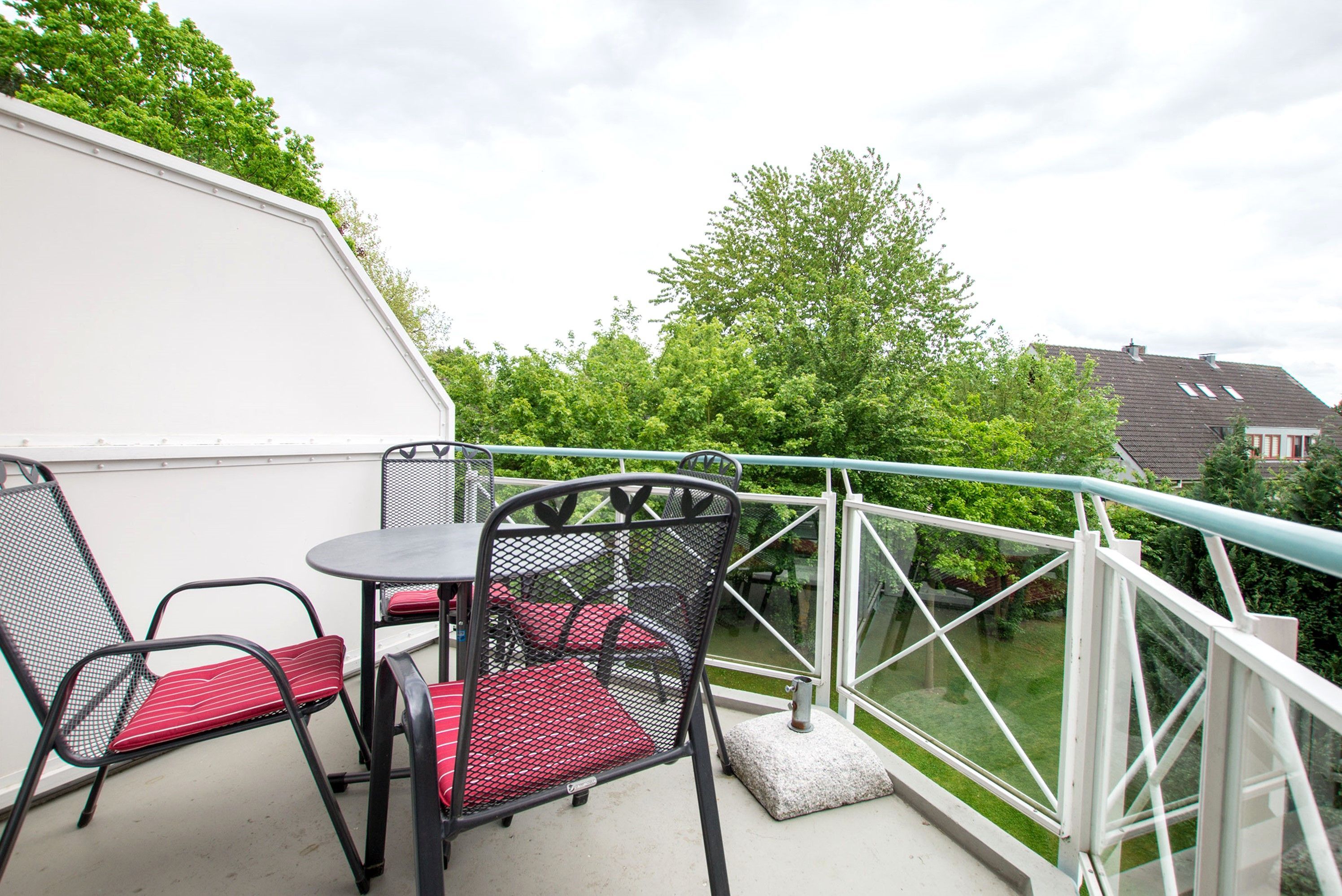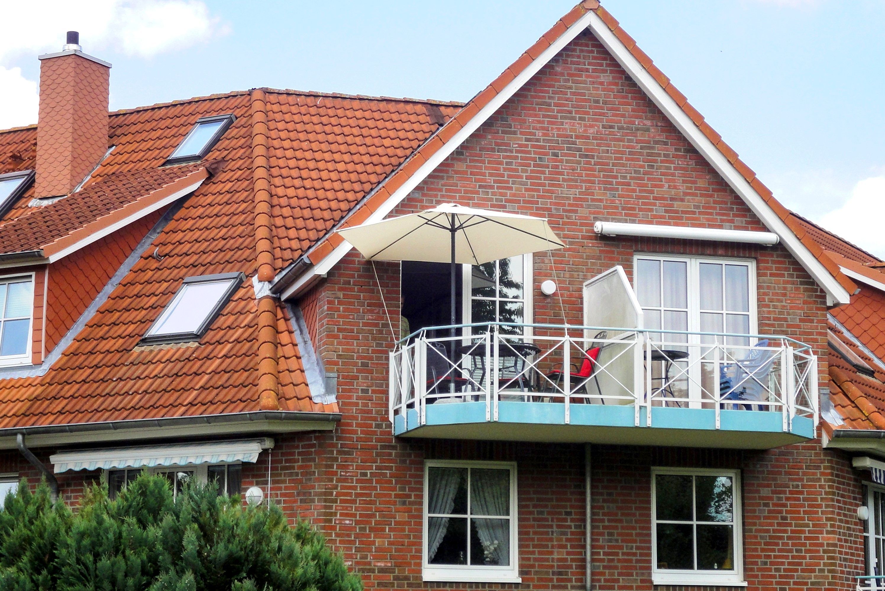 Balkon : Tisch und Stühle, Sonnenschirm, Südlage