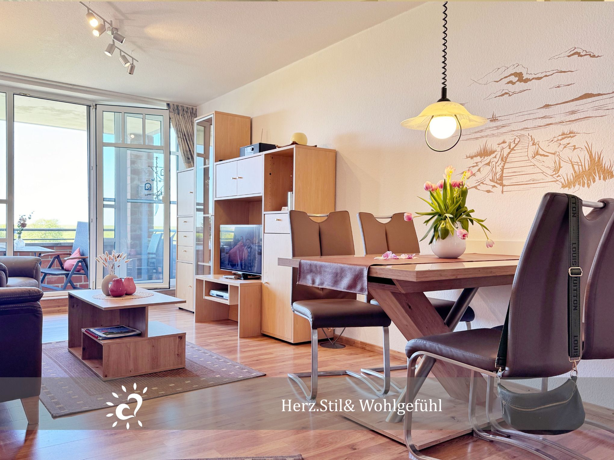 Mit zwei liebevoll eingerichteten Schlafzimmern und einem gemütlichen Wohn- und Essbereich bietet dir diese Ferienwohnung alles für eine entspannte Auszeit. Ob beim Kochen in der voll ausgestatteten Küche, beim Schmökern in einem Buch oder beim Filmabend.