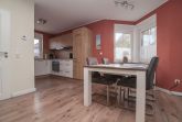Der Essplatz ist mit 4 Stühlen ausgestattet und das großzügige Ecksofa bietet genügend Platz für gemütliche Stunden.