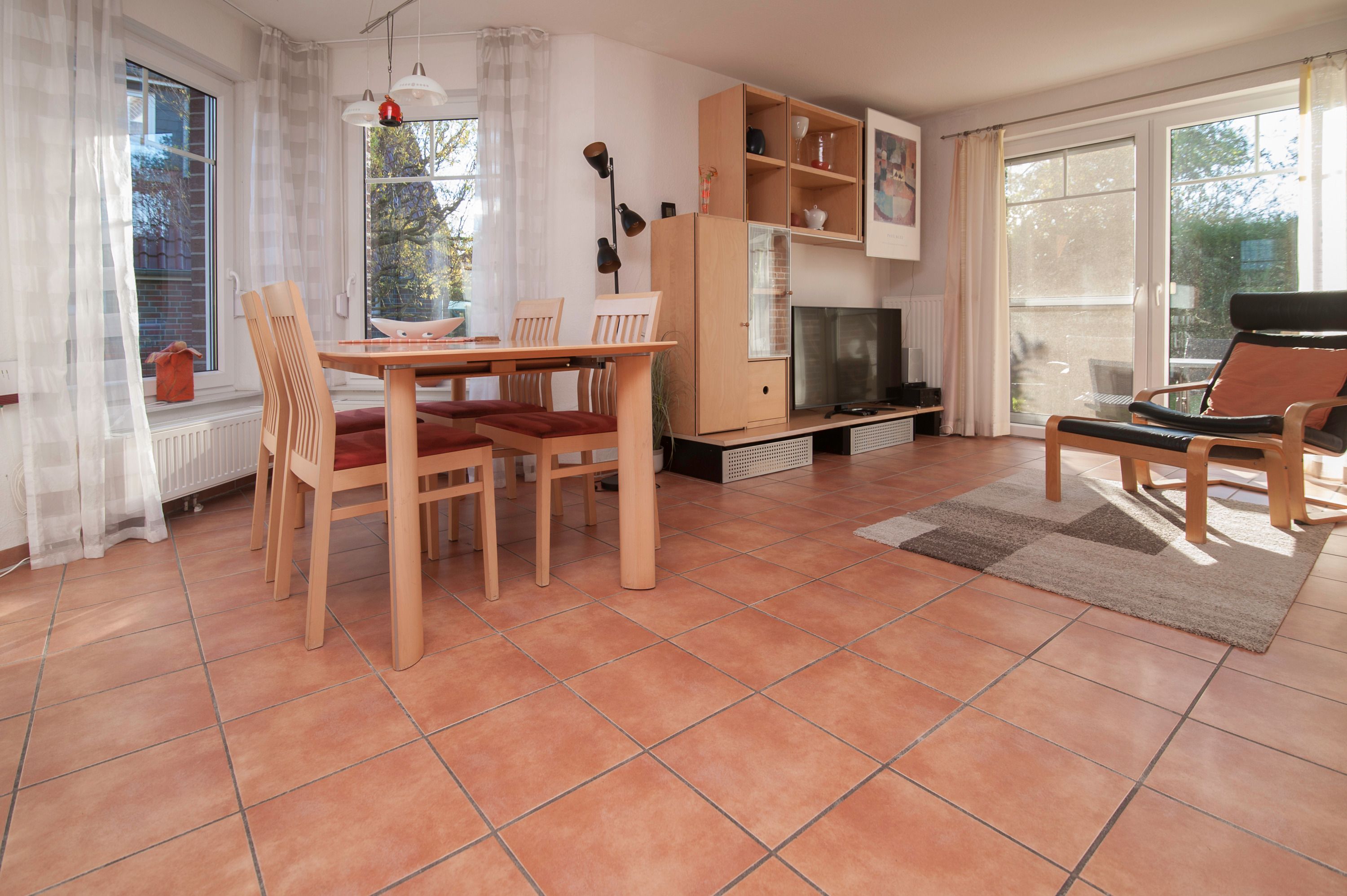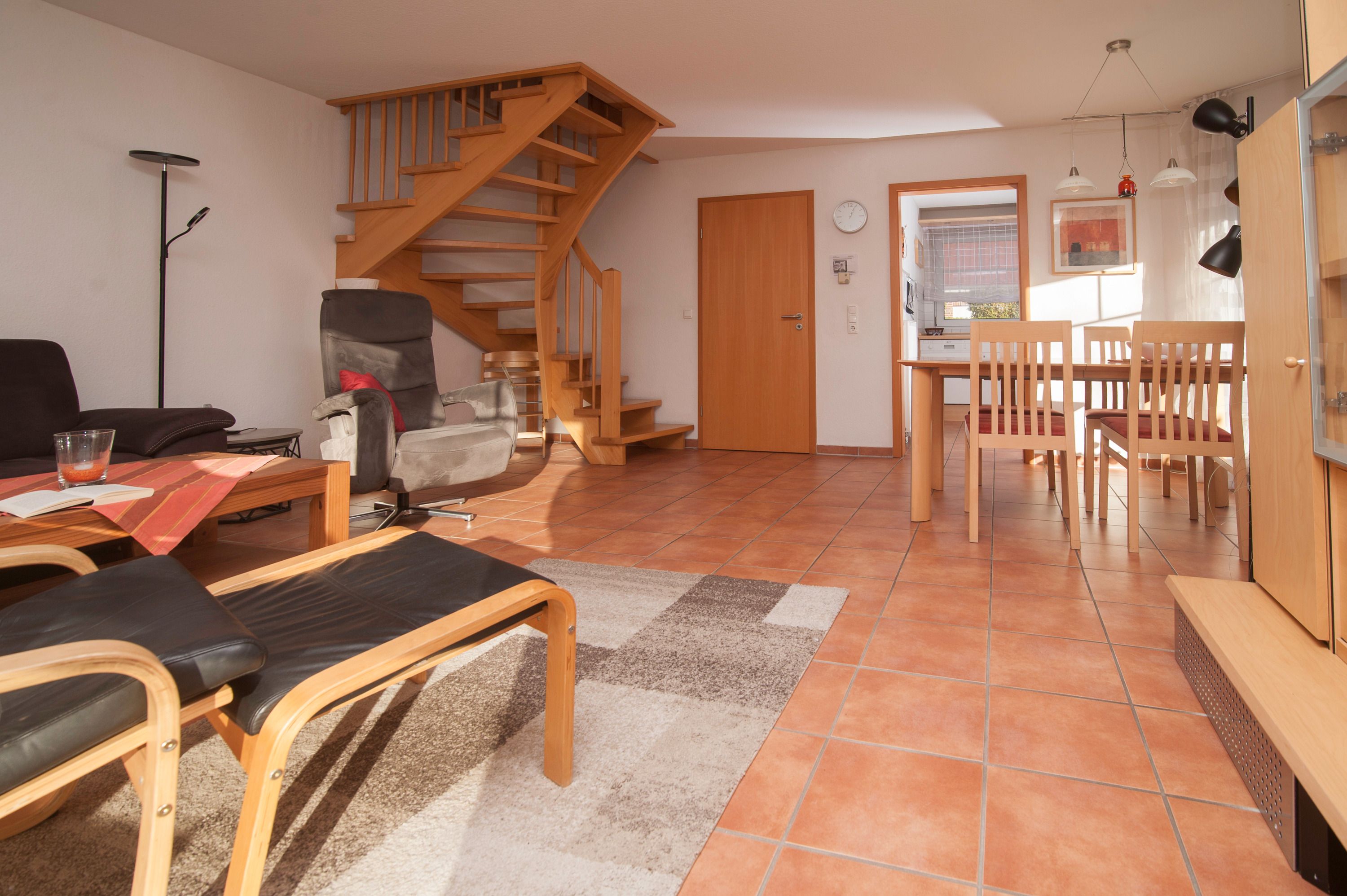 Im Haus befinden sich: schöner Wohnraum mit einem 50LG UHD-TV, Sitzgruppe, Stereoanlage, Essplatz für 4 Personen. Ein WLAN-Gastzugang (Glasfaseranschluß) ist vorhanden