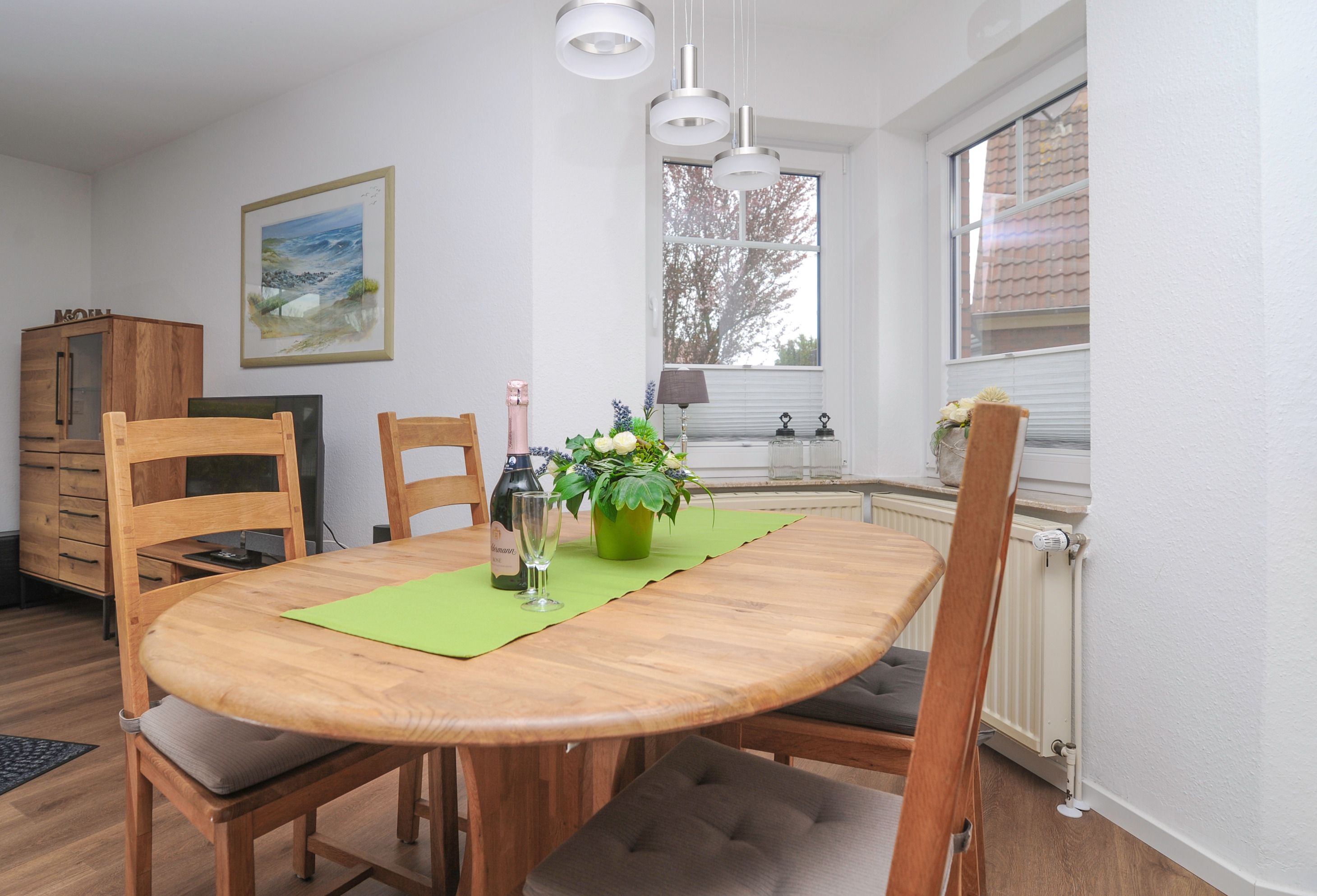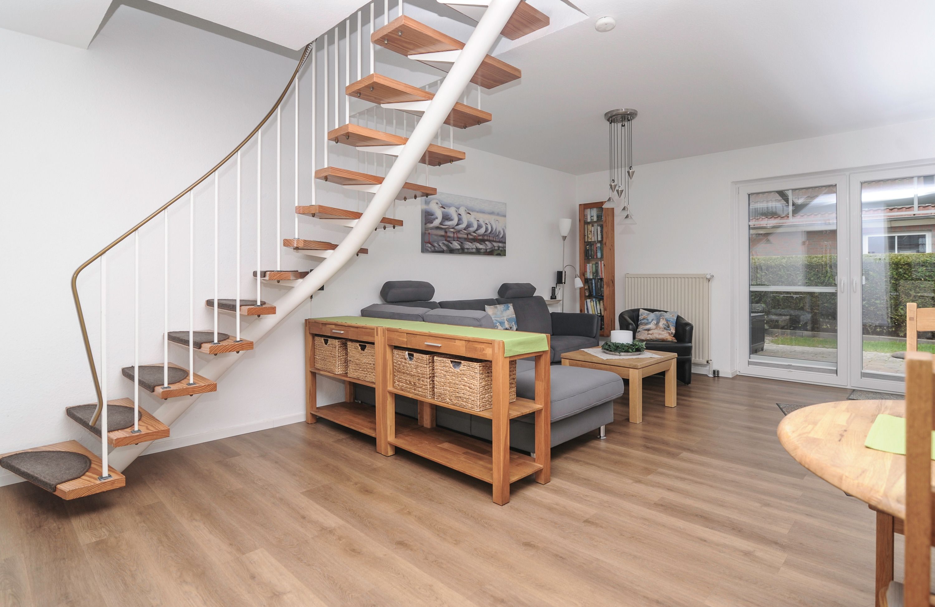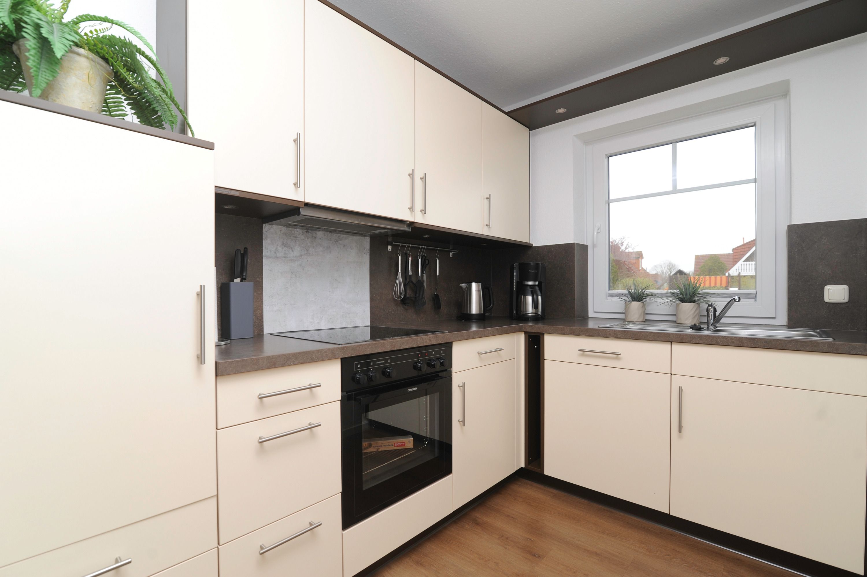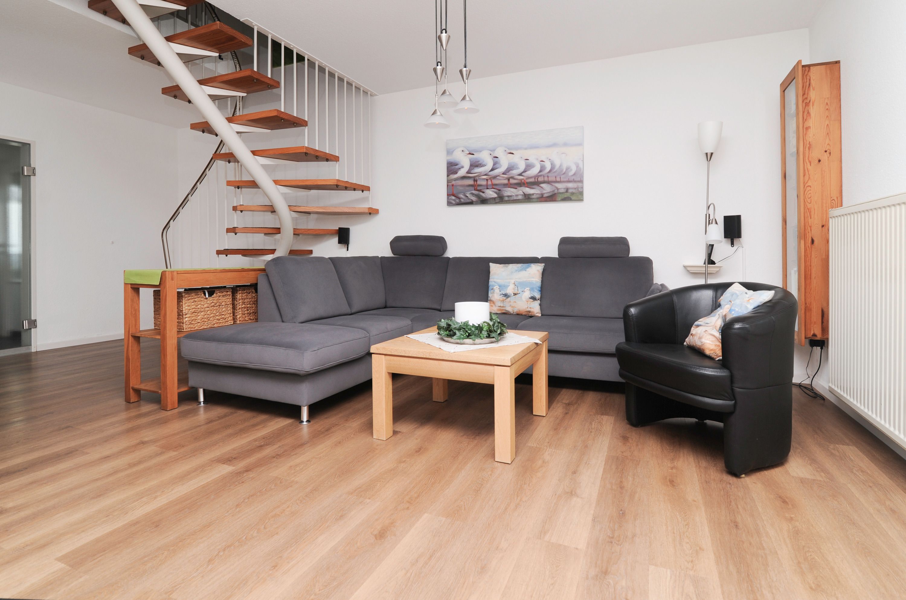 Das Haus bietet auf 2 Etagen einen angenehmen Komfort für die ganze Familie. Der geschmackvoll eingerichtete Wohnraum mit 42Metz FullHD LCD TV (Mediathek), bequemem Ecksofa, Stereoanlage, Essplatz für 4 Personen sowie ein DAB+ Radio, kostenlosem Glasfaser WLAN-Gastzugang und Telefon stehen für Sie bereit. Die offene Einbauküche ist komplett ausgestattet: Herd mit Cerankochfeld, Dunstabzugshaube, Geschirrspüler, Kühlschrank mit Gefrierfach, Filterkaffeemaschine, Toaster und vielem mehr bietet Ihnen alle Annehmlichkeiten für einen erholsamen Urlaub.