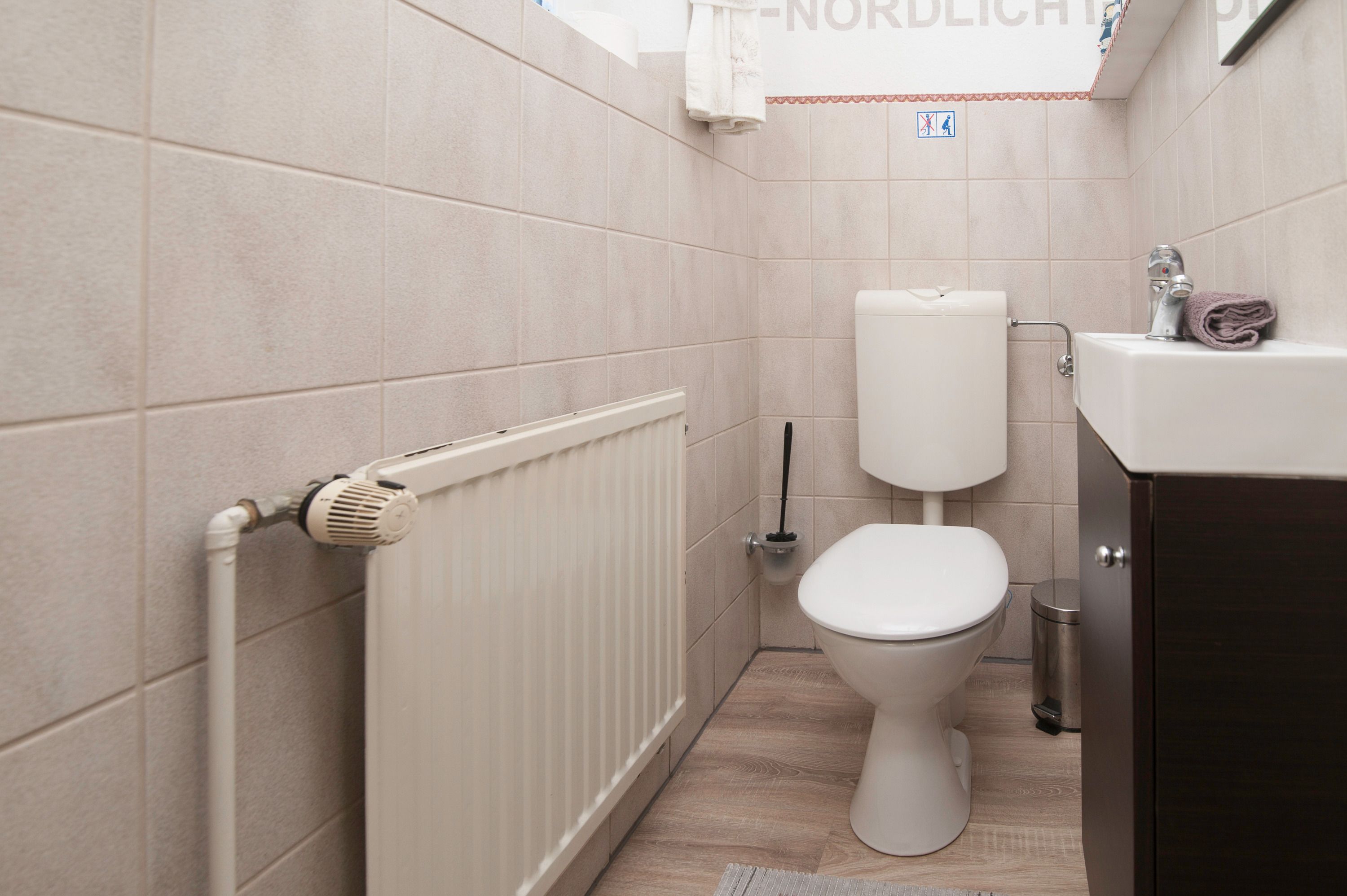 Ein zusätzliches WC befindet sich im Erdgeschoss sowie ein Abstellraum mit Waschmaschine (5 kg), Wäscheständer, Bügelbrett + Bügeleisen.