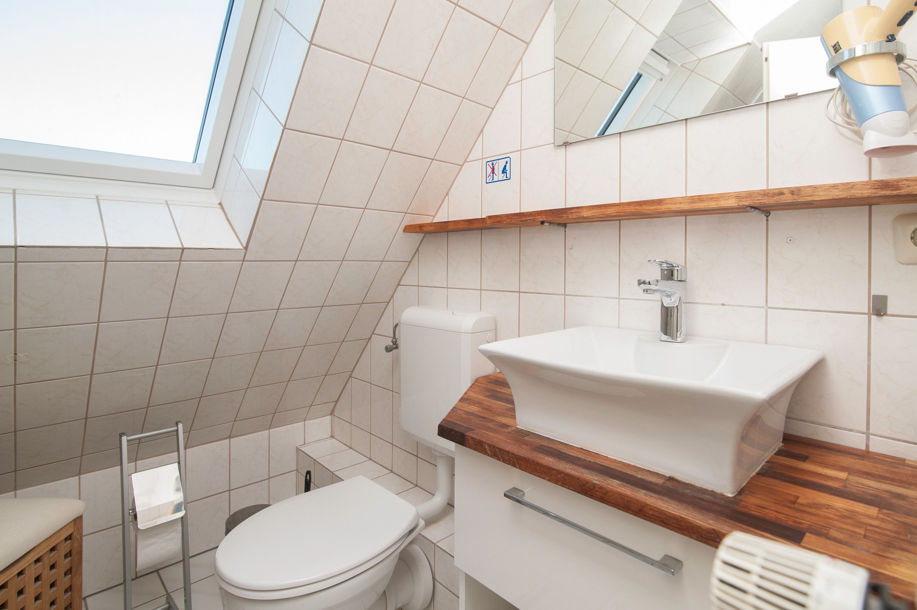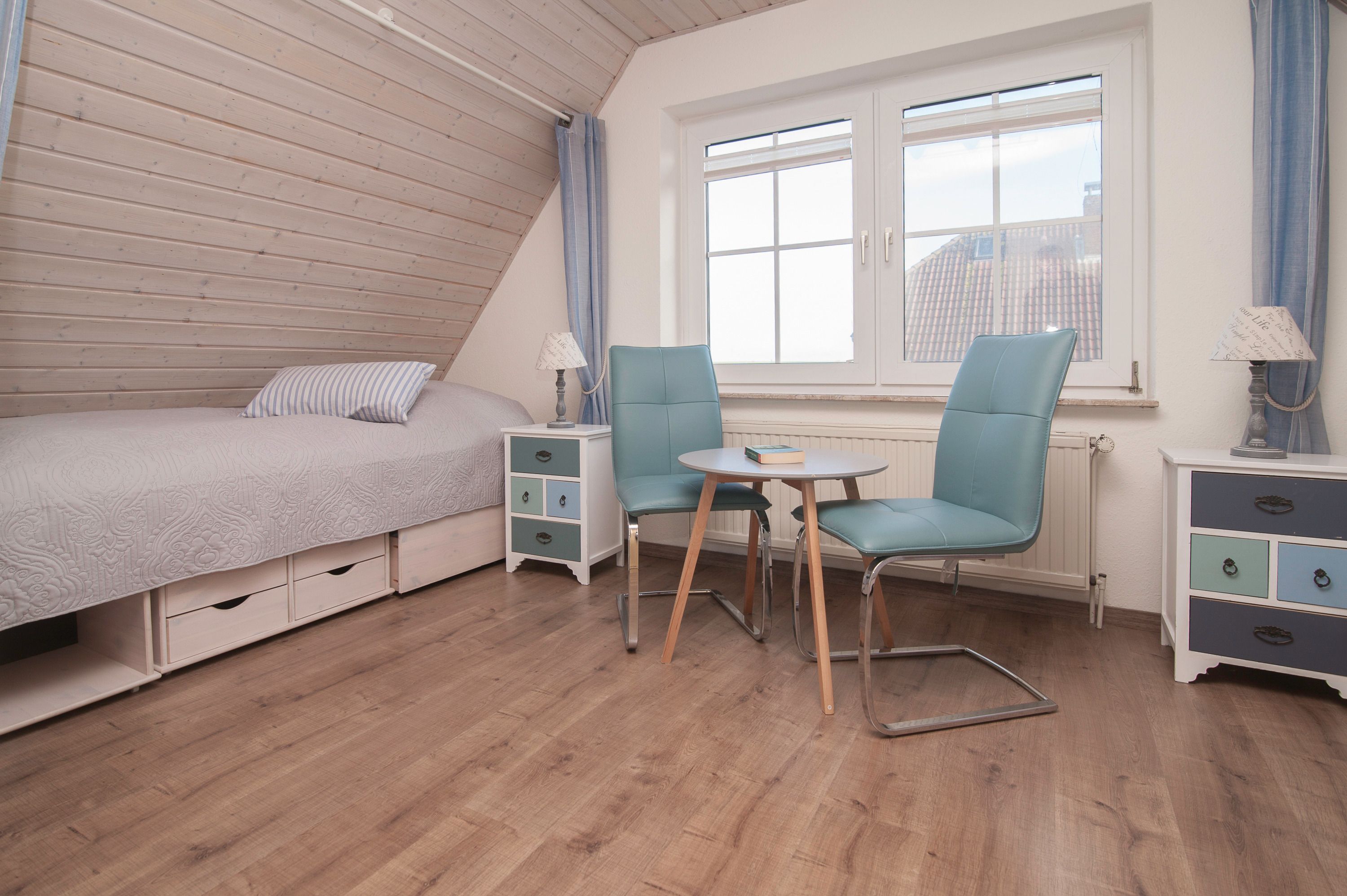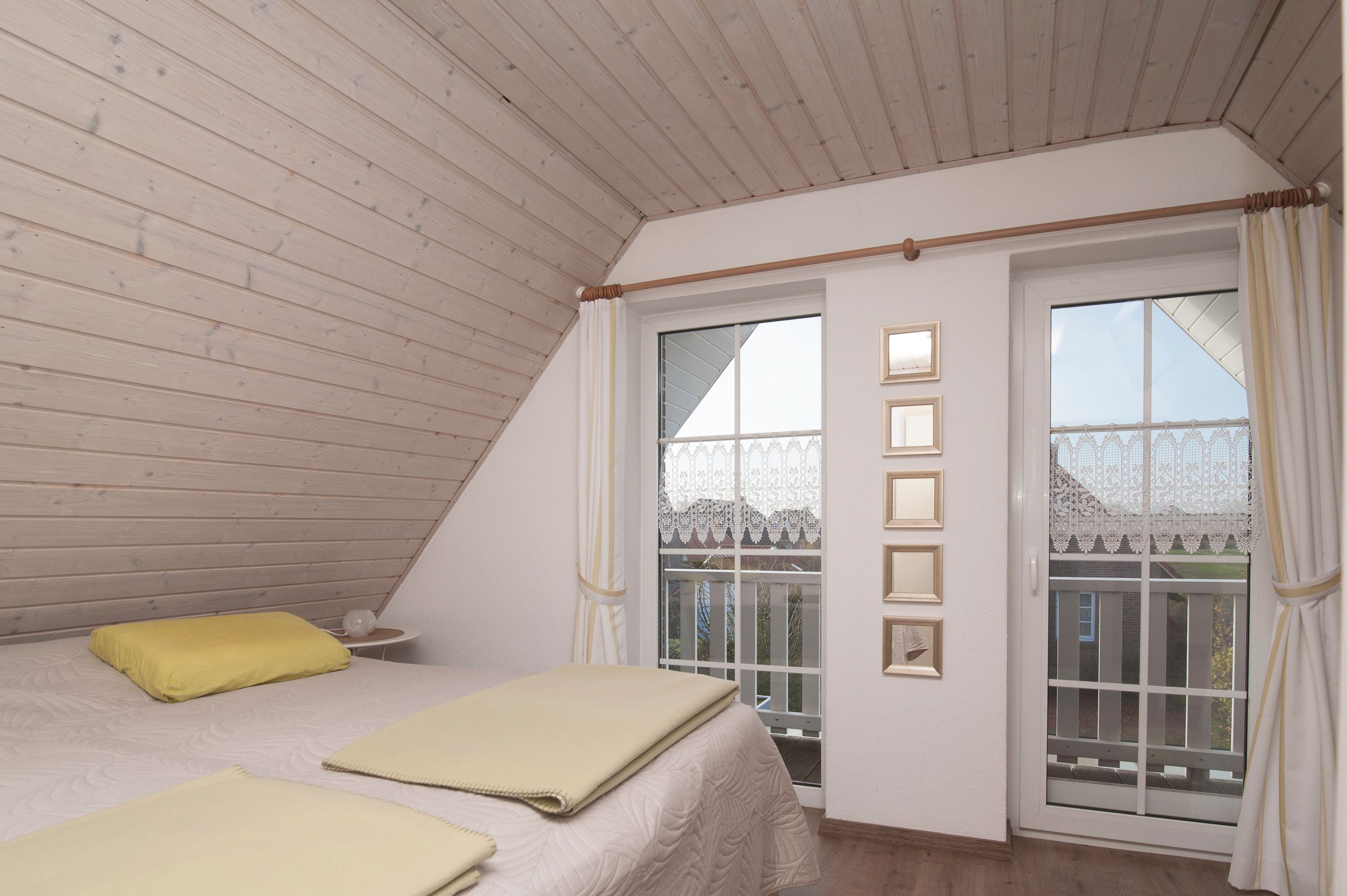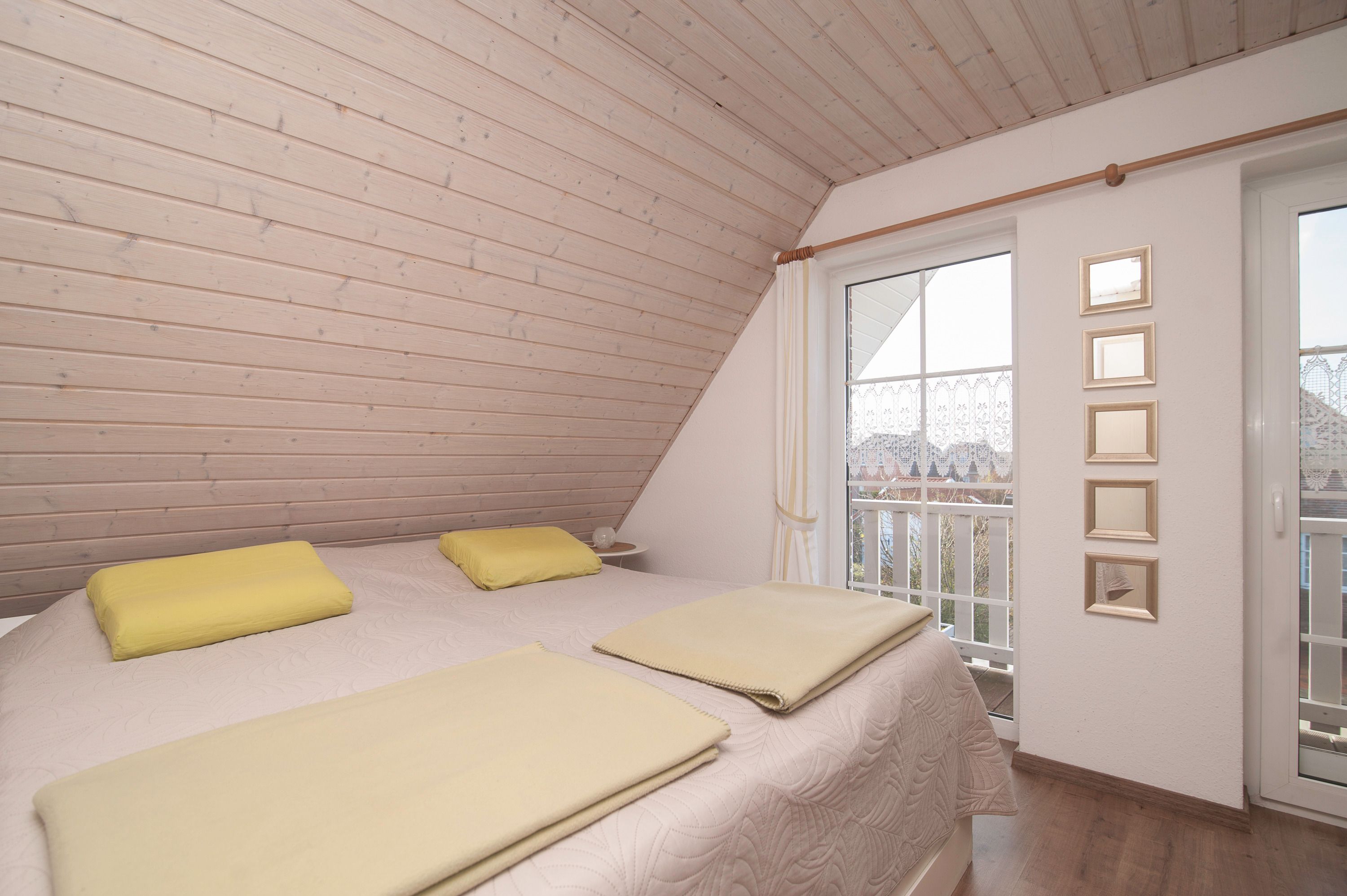 Im Obergeschoss erwarten Sie zwei liebevoll eingerichtete Schlafzimmer. Ein Schlafzimmer mit Doppelbett (Bodyguard Matratzen 90 x 200 cm mit Topper) und 32JTC LED HD-TV und ein weiteres Schlafzimmer mit zwei Einzelbetten (90 x 200 cm). Das Badezimmer mit Dusche, Waschbecken und WC ist ebenfalls Obergeschoss.