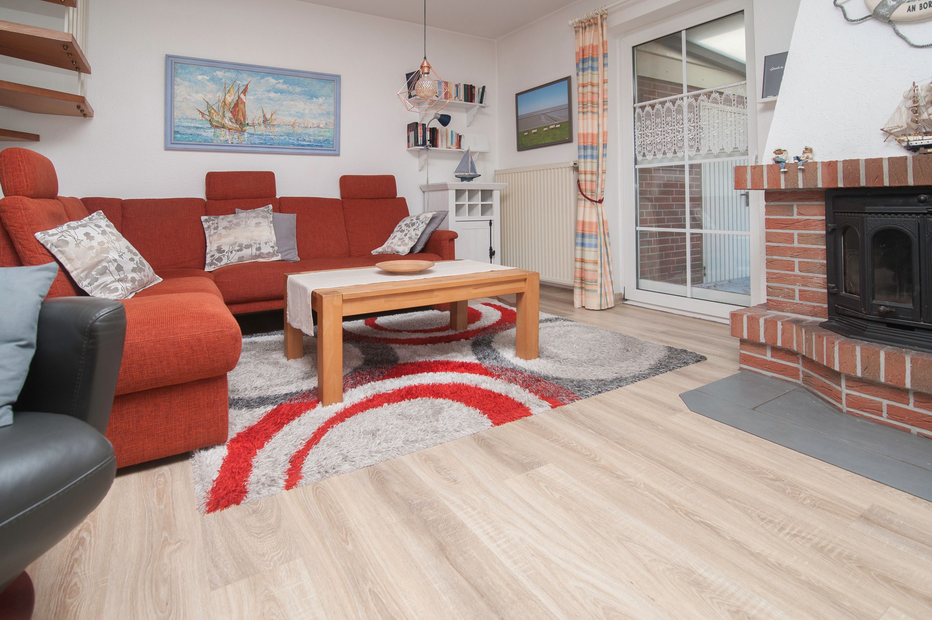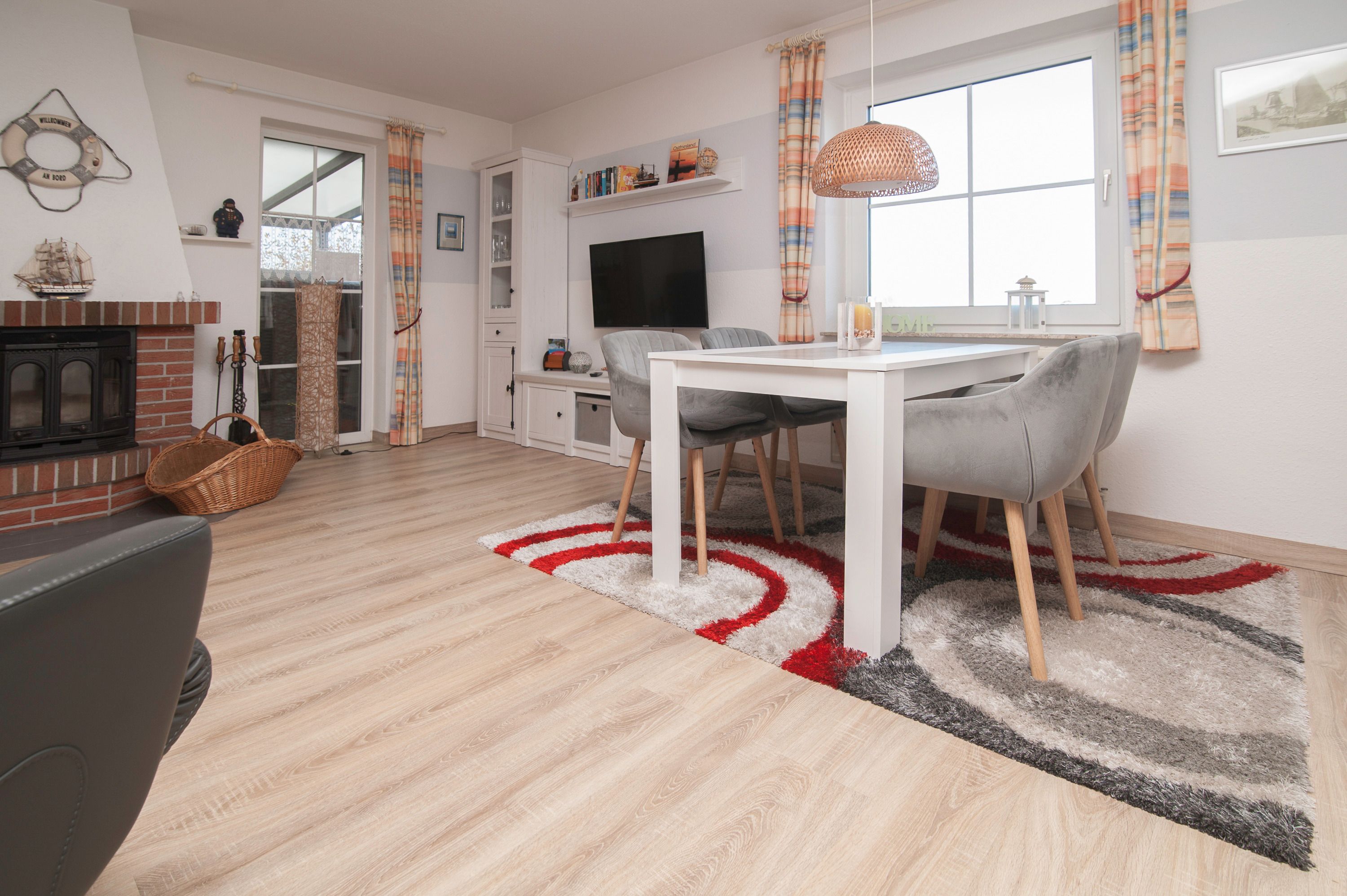 Doppelhaushälfte (75 qm) am Ende einer Sackgasse. Dank ihrer Lage bietet sie einen unverbauten Blick über die Felder zum Deich. mit unverbautem Blick über die Felder zum Deich ist für 2 bis 4 Personen komfortabel eingerichtet.
