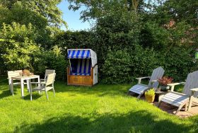 Die Wohnung befindet sich in ruhiger Ortsrandlage und verfügt über einen Garten zur alleinigen Nutzung. Hier finden Sie Gartenliegen, Tische, Stühle und einen Strandkorb. Ihr PKW kann unter dem Car-Port geschützt abgestellt werden und die Fahrräder im angrenzenden Schuppen (mit Stromanschluss) untergebracht werden. Ein kostenloser WLAN-Gastzugang ist verfügbar.