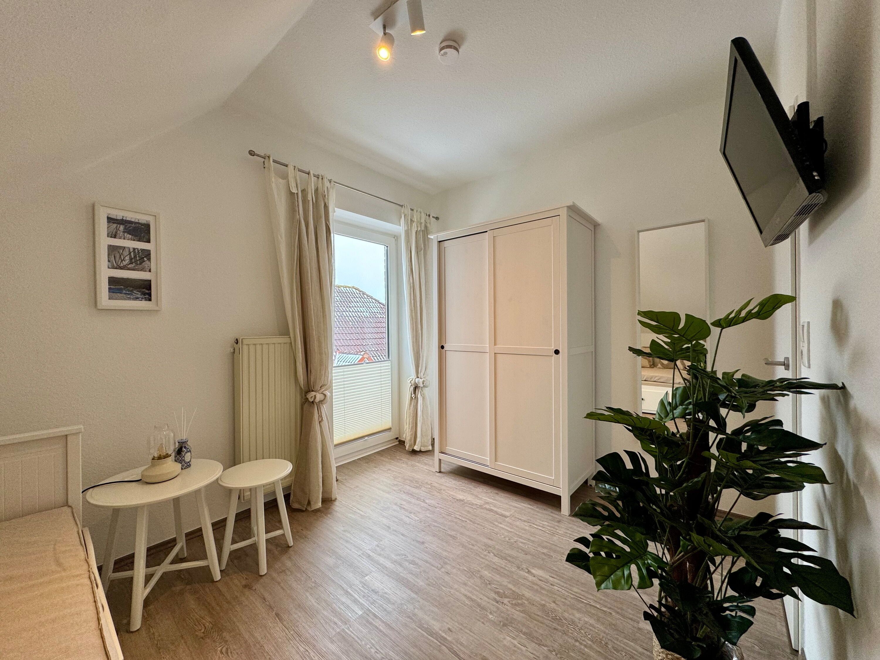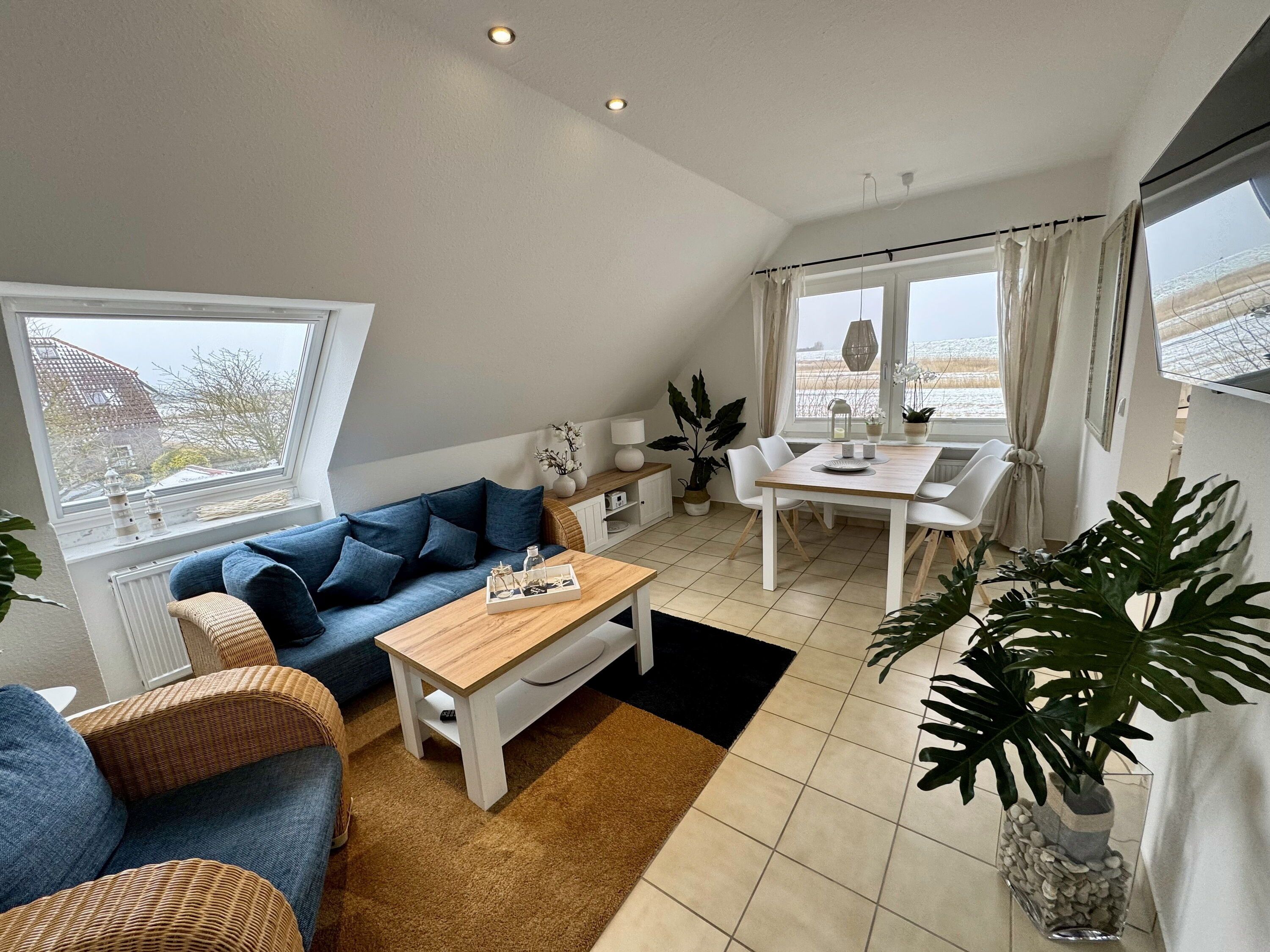 Das Highlight der Wohnung Am Deich ist der weite Blick über die Felder auf den Deich. Diese Wohnung befindet sich im Obergeschoss. Sie ist für maximal 3 Personen ausgelegt. Hier können Sie dem Stress und der Hektik des Alltags entfliehen. Die Wohnung ist mit Liebe zum Detail eingerichtet. Sie bietet Ihnen jeglichen Komfort, um Ihren Urlaub in jeder Jahreszeit angenehm zu gestalten.