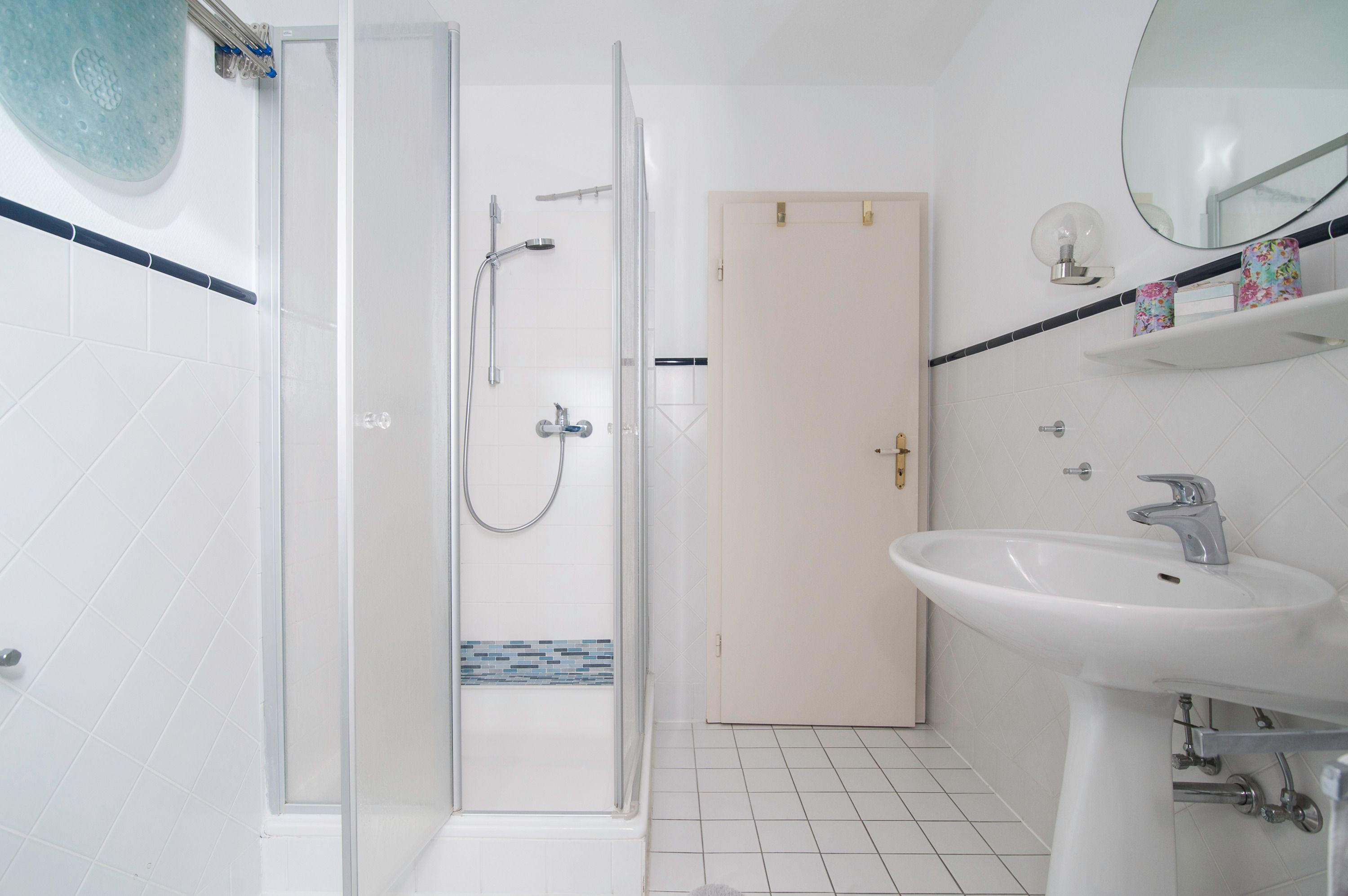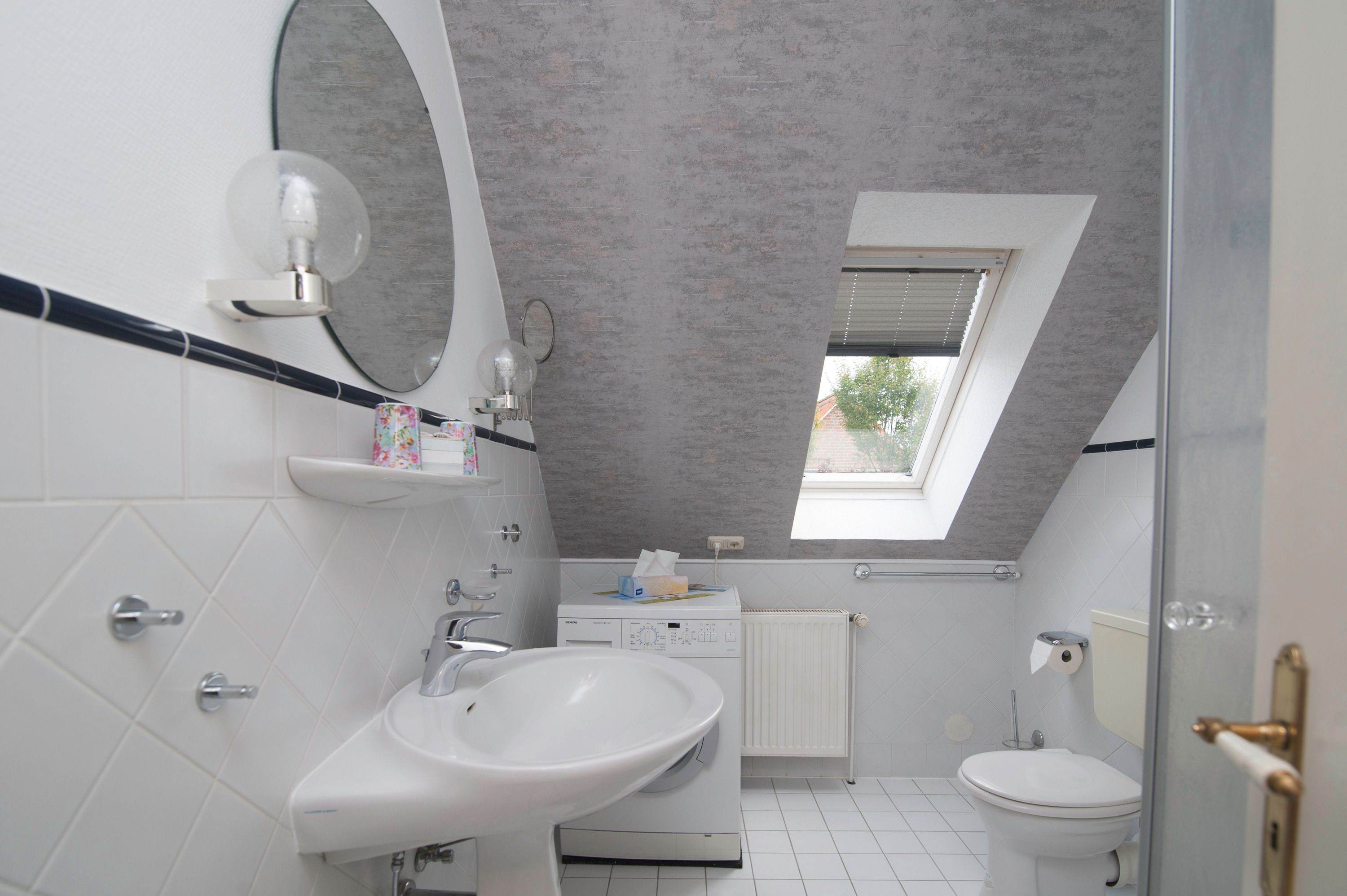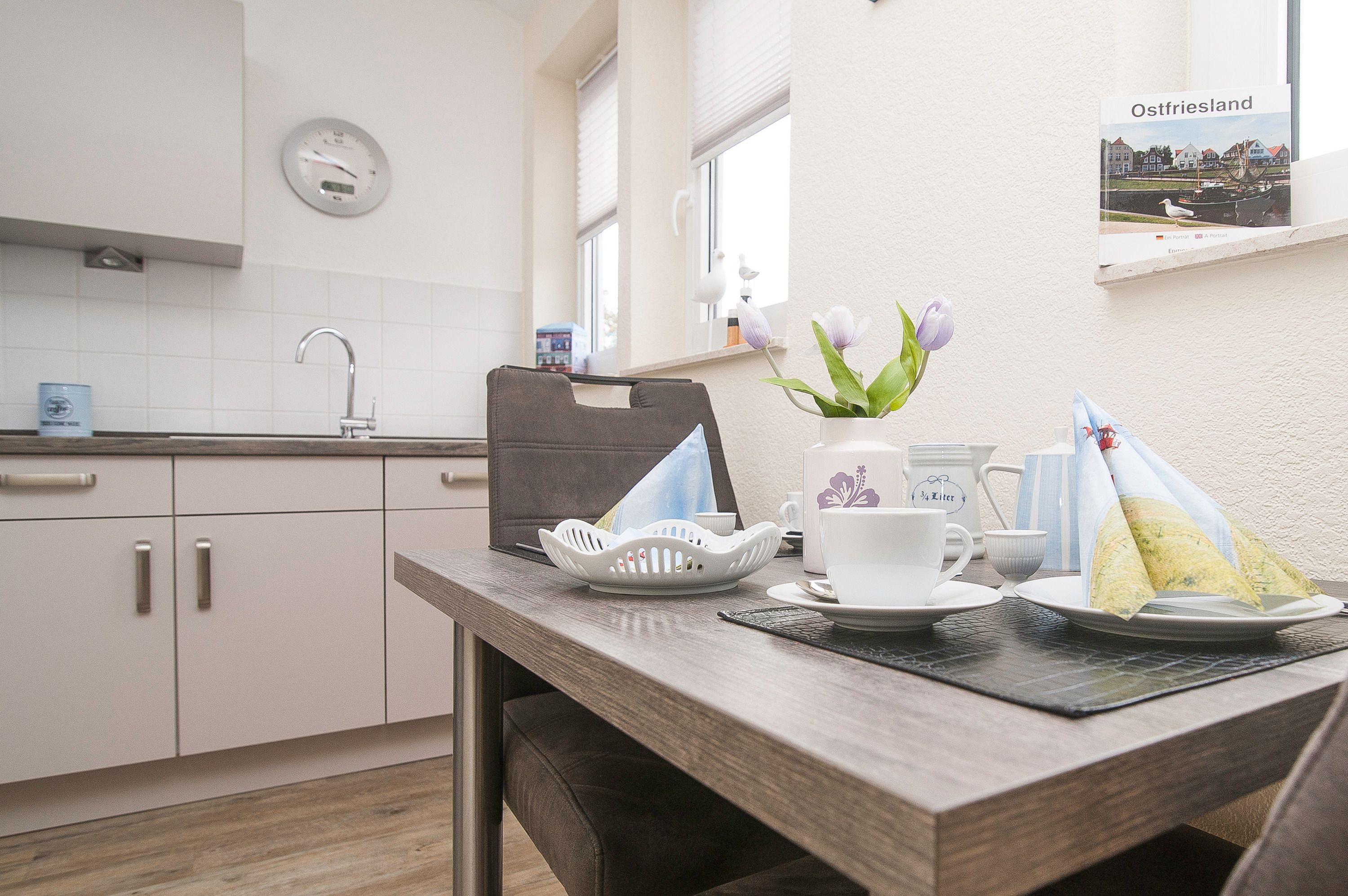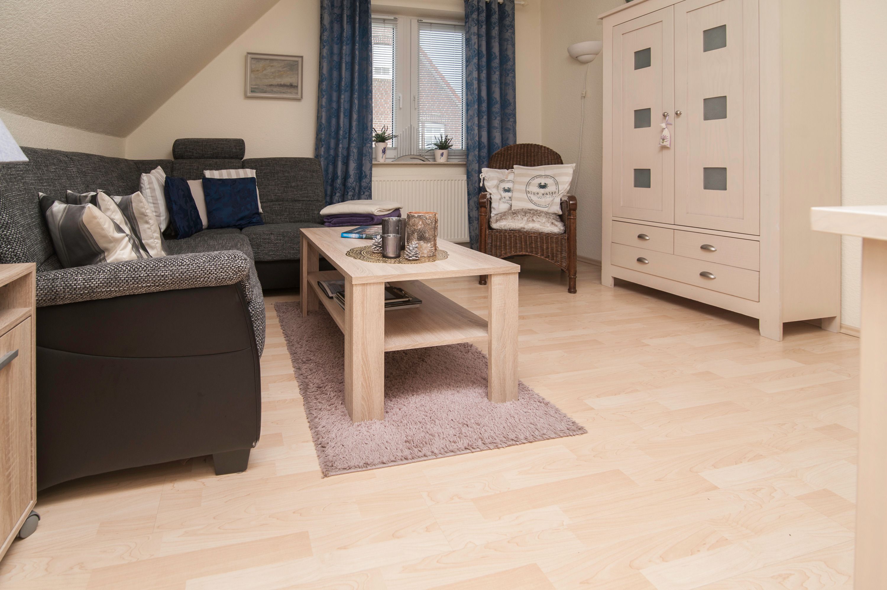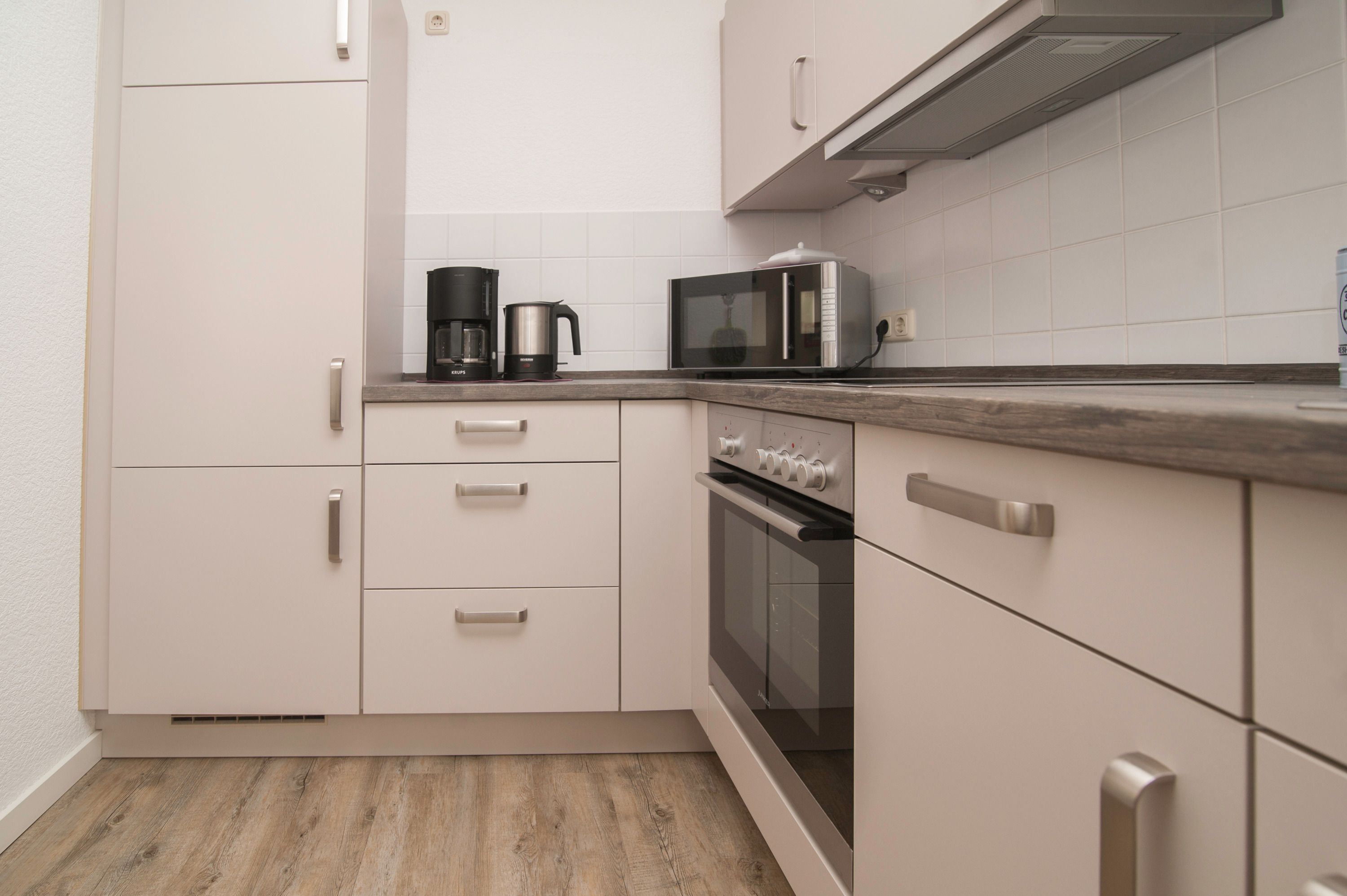 Im Wohnzimmer mit Ecksofa und 40 Grundig Full HD LCD-TV lassen sich gemütliche Fernsehabende verbringen. Eine Mini Stereoanlage mit CD-Spieler und ein DSL WLAN-Gastzugang stehen ebenfalls zur Verfügung. Ein einladender Essplatz für 2 Personen ist direkt neben der Einbauküche. Die Einbauküche ist komplett eingerichtet mit Herd und Cerankochfeld, Mikrowelle, Dunstabzugshaube, 45er Geschirrspüler, Filterkaffeemaschine, Eierkocher, Wasserkocher, Kühlschrank ohne Gefrierfach (bei Bedarf kann ein separater Gefrierschrank zur Verfügung gestellt werden). Das Schlafzimmer hat ein Doppelbett mit einer durchgehenden Matratze (1,60 x 2,00 m) und einem Kleiderschrank. Im Tageslichtbad mit Föhn, Dusche und WC befindet sich auch die Waschmaschine (5 kg). Ein kleiner Abstellraum beherbergt Bügelbrett, Bügeleisen sowie den Kondenstrockner. Insektenschutzgitter an den Fenstern sind vorhanden. Fahrräder können in der Garage untergestellt und geladen werden.