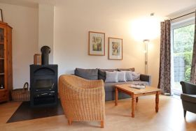 Das Reihendoppelhaus ? Urlauberdorf 56B - mit Süd Terrasse bietet auf 63qm Ferienwohnen zum Wohlfühlen. Der gemütliche Wohn- und Essbereich ist mit einem Sofa, Lehnsessel, Kaminofen, Fernseher, Radio und einem Esstisch ausgestattet ? ideal für entspannte Stunden mit der Familie. Zwei separate Schlafzimmer sowie ein weiterer Schlafbereich und ein Duschbad, Gäste-WC sorgen für Komfort und Privatsphäre. Die integrierte Küchenzeile ist gut ausgestattet mit Herd, Backofen, Geschirrspüler, Kühlschrank, Kaffeemaschine, Wasserkocher, Toaster u.v.m. Erholung finden Sie auf der saisonal möblierten Süd Terrasse. Im Erdgeschoss befinden sich ein Schlafzimmer mit Etagenbett, Kleiderschrank, Sitzgelegenheit sowie ein Tageslicht Duschbad mit WC und kostenfreier Waschmaschinen Nutzung. Über eine Treppe gelangen Sie ins Obergeschoss mit einem weiteren Schlafzimmer mit Doppelbett 1,60m mal 2,00m, Kleiderschrank, 2. Fernseher, Sitzgelegenheit. Zudem ist ein separater Schlafbereich mit Doppelbett angrenzend, der als 3. Schlafzimmer zur Verfügung steht. Das Nichtraucherhaus ist für bis zu 4 Personen buchbar. Ein PKW-Stellplatz befindet sich kostenfrei am Haus. Weitere PKW-Stellplätze stehen in der Umgebung im öffentlichen Bereich kostenpflichtig zur Verfügung. Haustiere nicht erlaubt. Das Laden von Elektro und Hybridfahrzeugen ist nicht gestattet. Hiervon sind Akkus von E-Bikes & Pedelecs (unter Aufsicht) ausgenommen. Bitte beachten Sie, dass in diesem Ferienobjekt kein WLAN vorhanden ist.