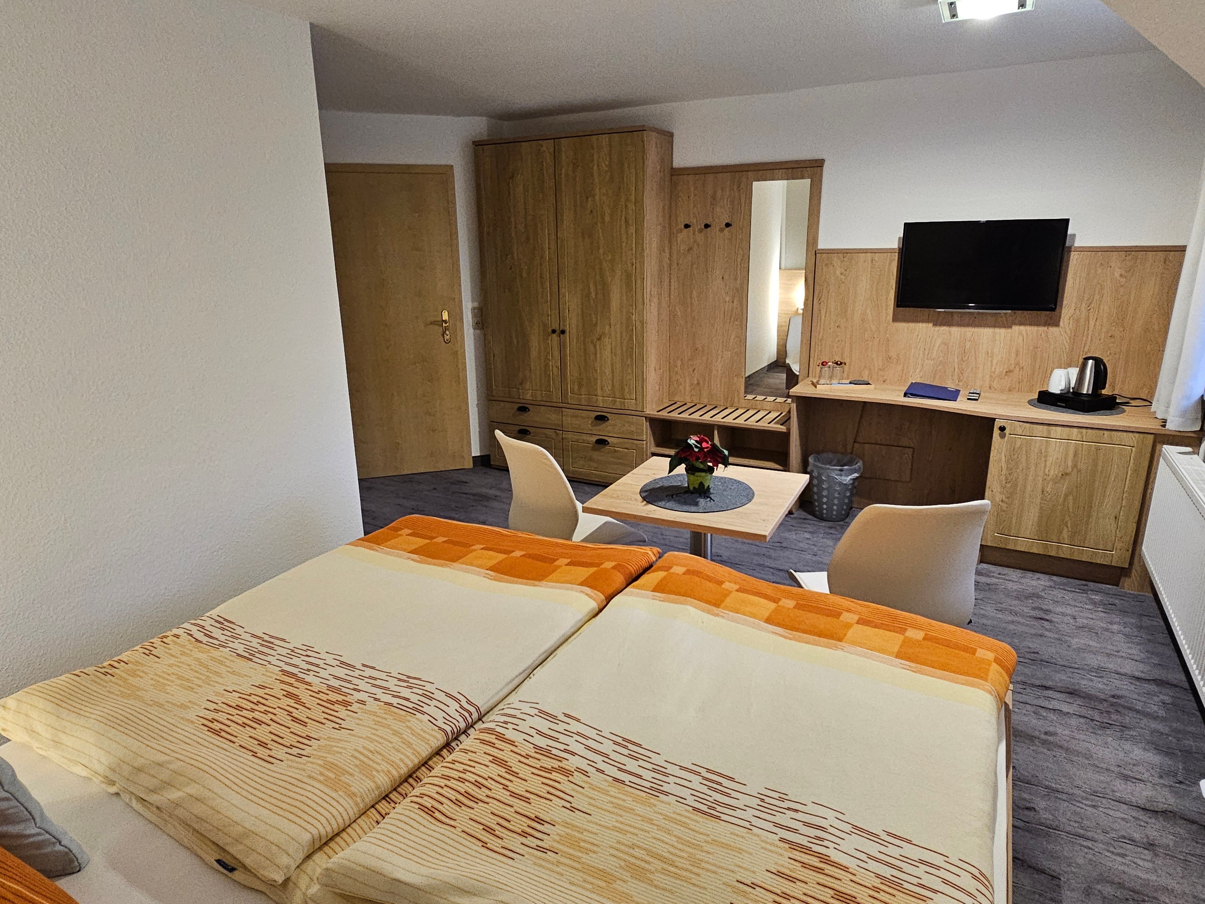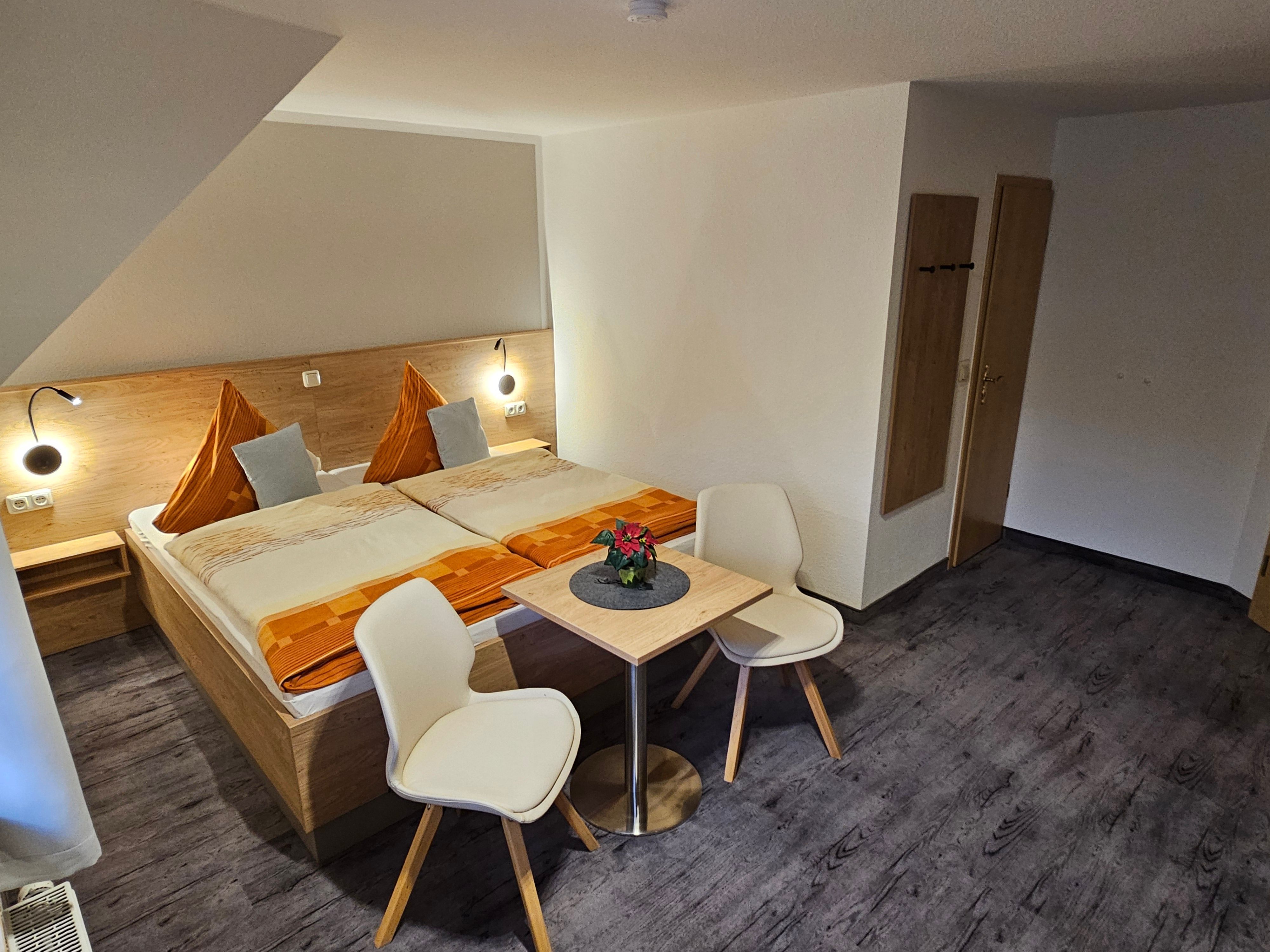 Heute erwarten Sie in unserer modernen Nichtraucher - Pension insgesamt acht sehr schön und komfortabel eingerichtete Doppelzimmer (21 qm), die auch als Einzelzimmer genutzt werden können. Alle Zimmer sind mit Dusche/WC, Flachbild-TV und Kühlschrank ausgestattet. Ab 2016 gibt es auch einen kostenlosen WLAN-Anschluss.