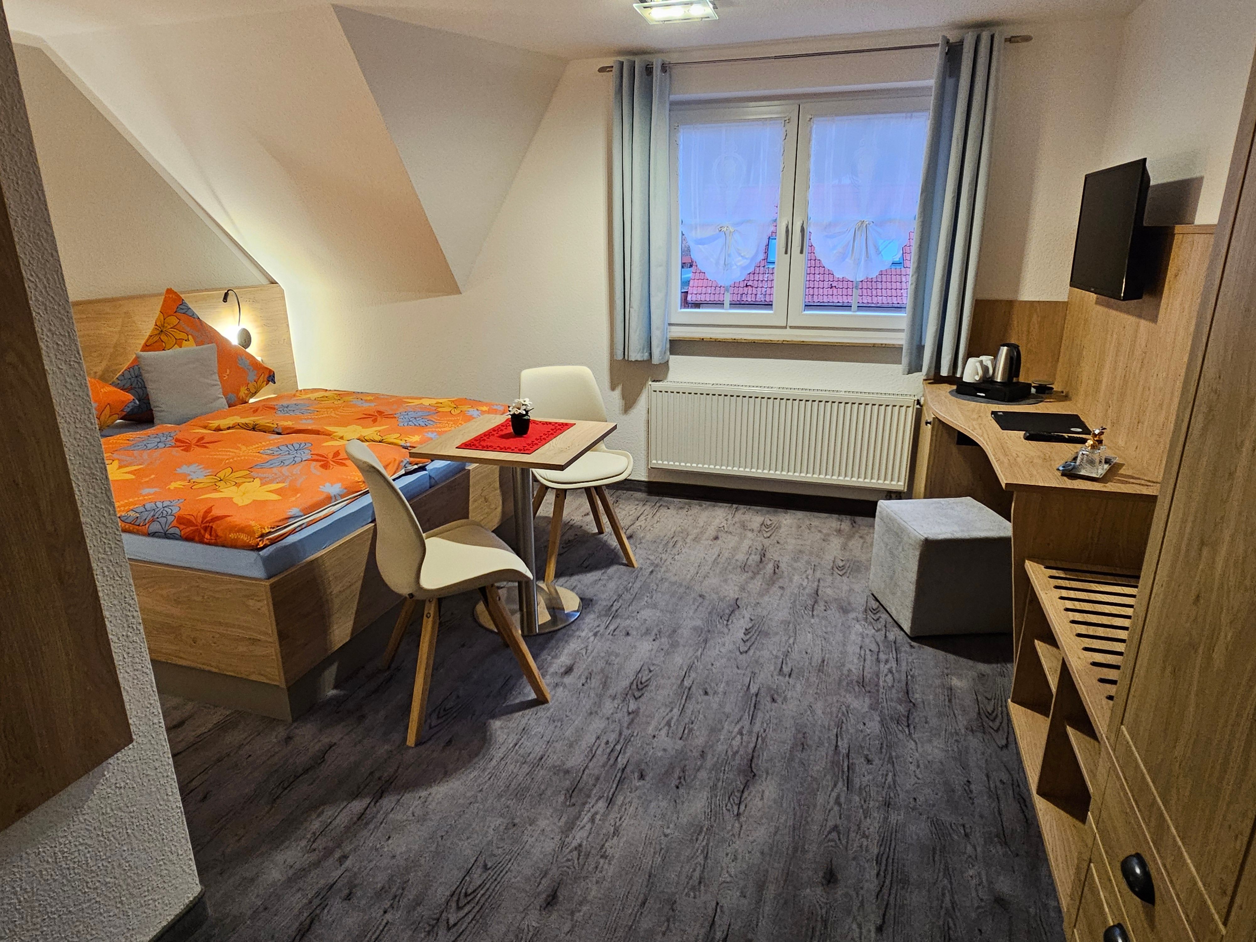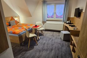 Heute erwarten Sie in unserer modernen Nichtraucher - Pension insgesamt acht sehr schön und komfortabel eingerichtete Doppelzimmer (21 qm), die auch als Einzelzimmer genutzt werden können. Alle Zimmer sind mit Dusche/WC, Flachbild-TV und Kühlschrank ausgestattet. Ab 2016 gibt es auch einen kostenlosen WLAN-Anschluss.