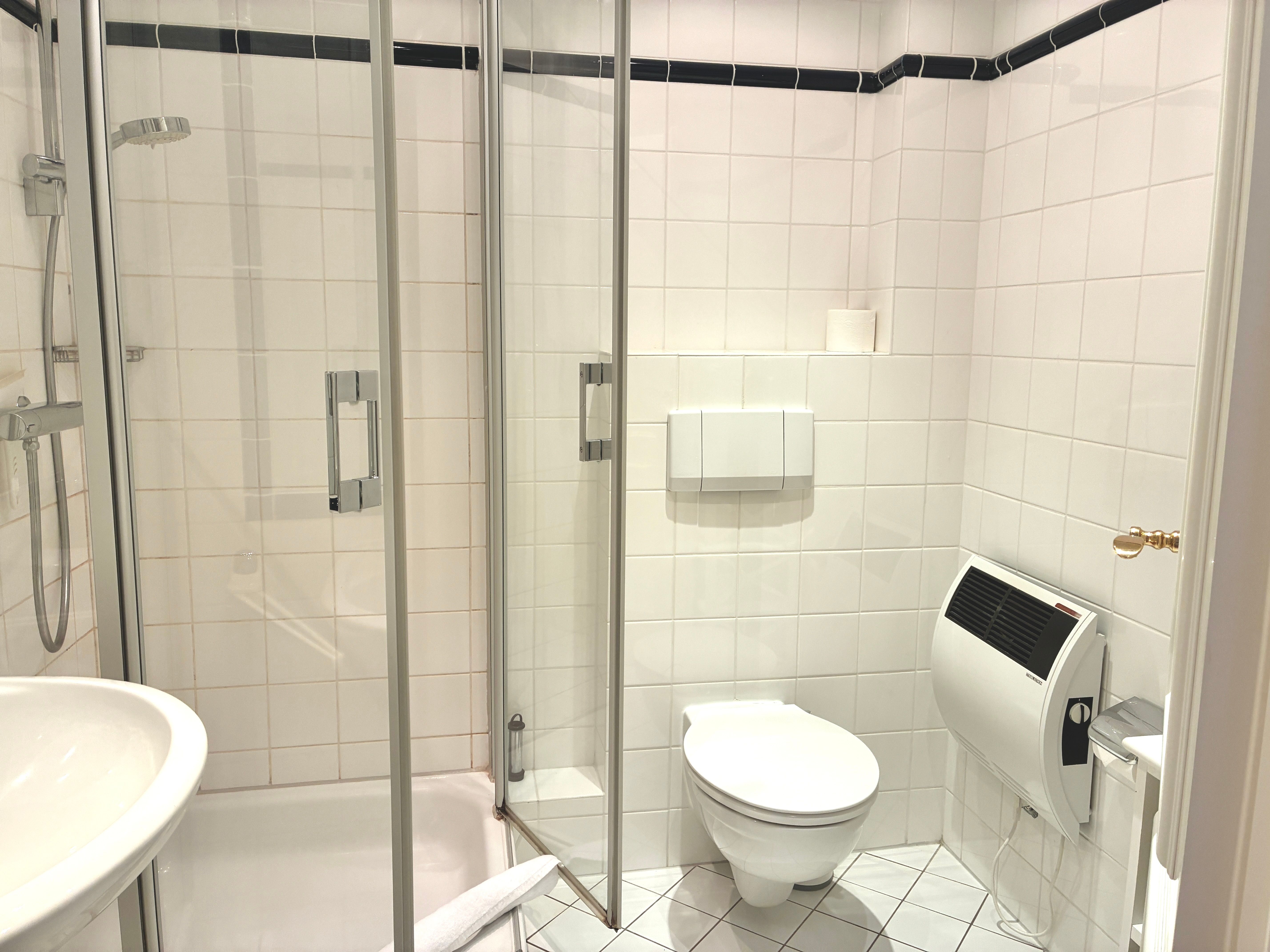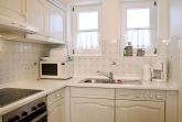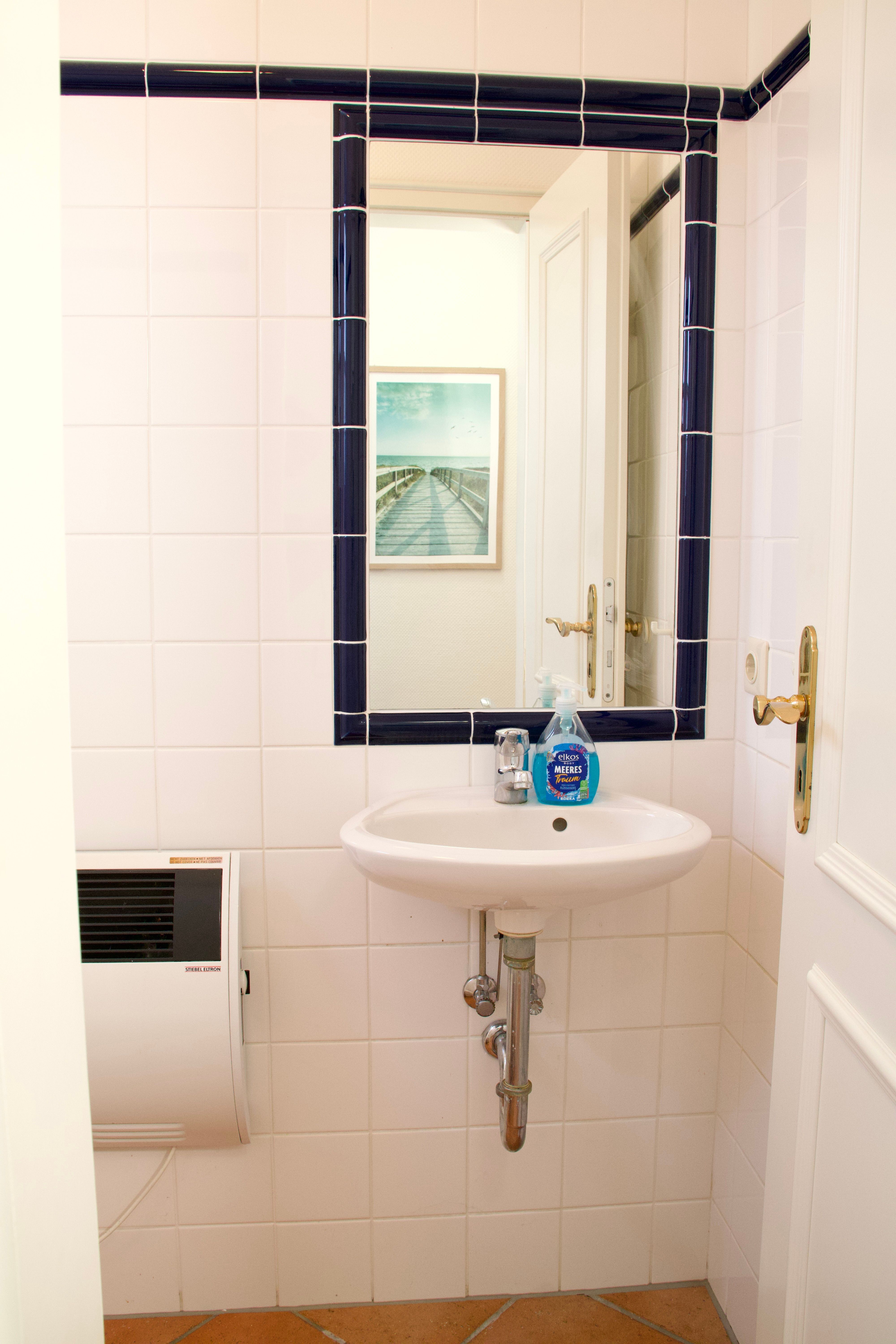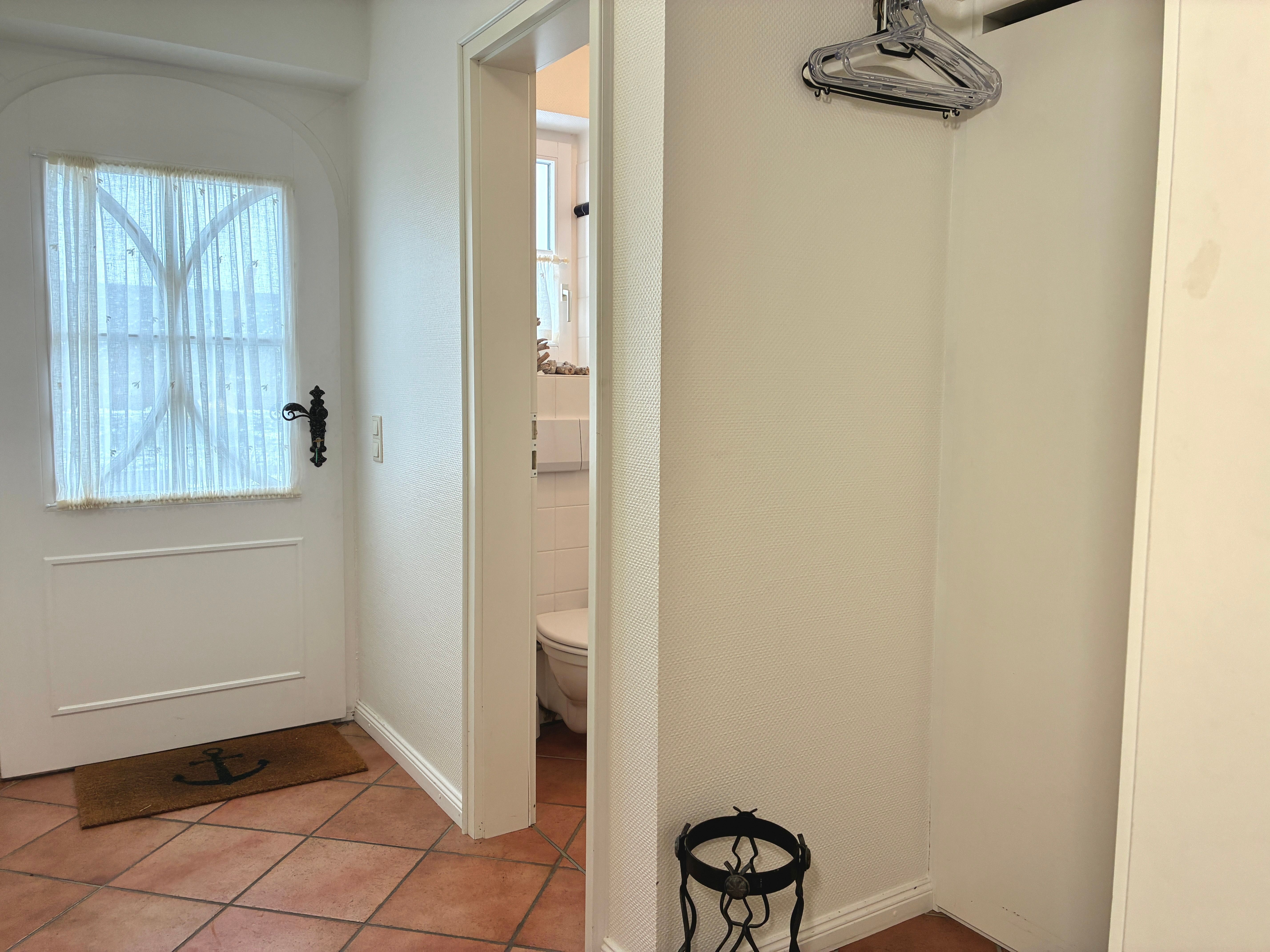 Ebenfalls im Erdgeschoss befindet sich die Küche, die keine Wünsche offenlässt und unter anderem mit Geschirrspüler, Kaffeemaschine und Gefriermöglichkeit ausgestattet ist. Ein Gäste-WC ist vom Flur aus erreichbar und ergänzt den Wohnkomfort sinnvoll.