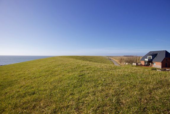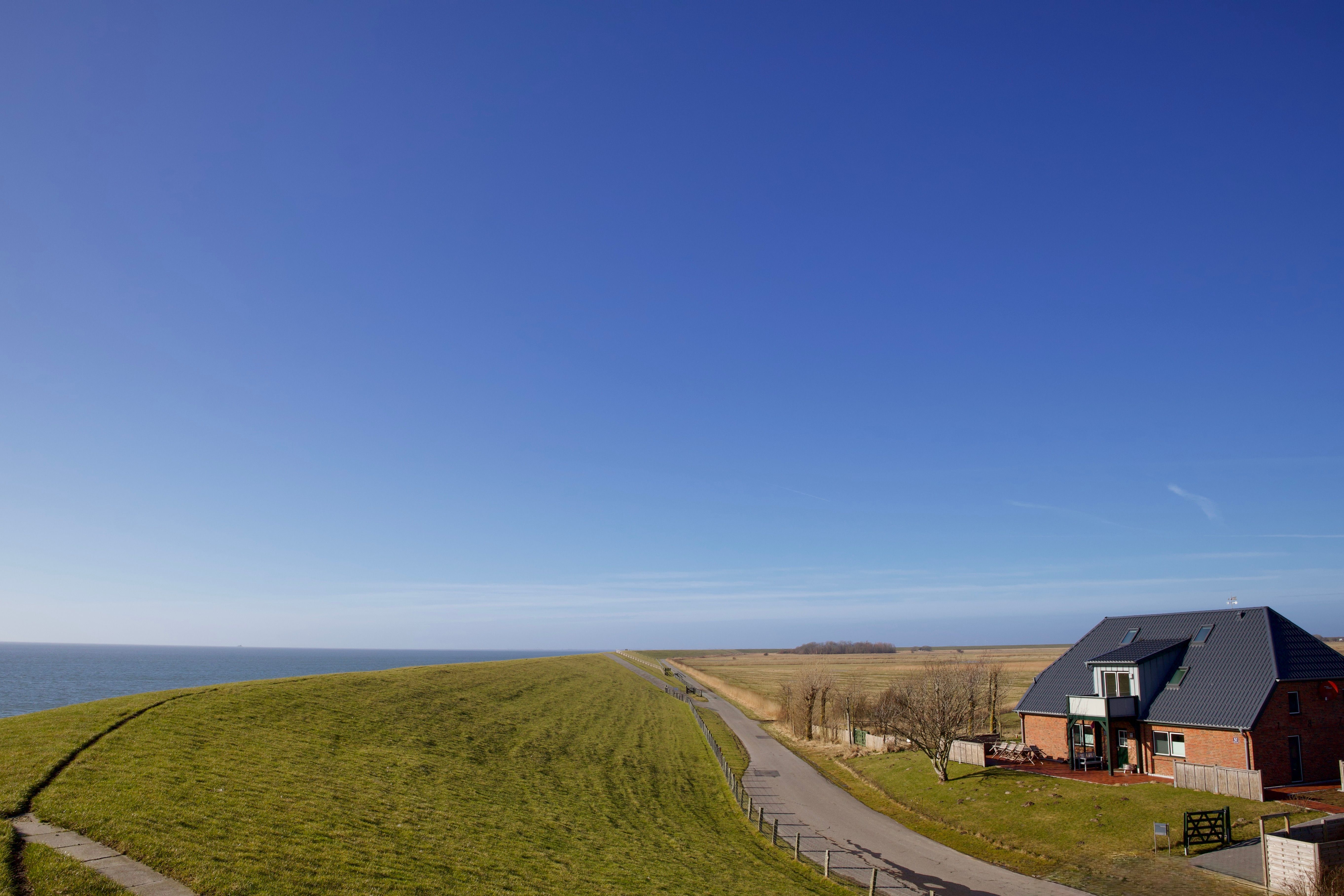 Die Ferienwohnung Austernfischer befindet sich auf der Ockenswarft in absoluter Alleinlage, direkt am Nordstrander Außendeich. Das Anwesen wurde in den Jahren 2024 und 2025 aufwendig und umfassend saniert und liegt eingebettet in die offene Landschaft der Trendermarsch. Hinter dem Haus erstrecken sich Wiesen und Felder, vor dem Deich liegt die Nordsee.